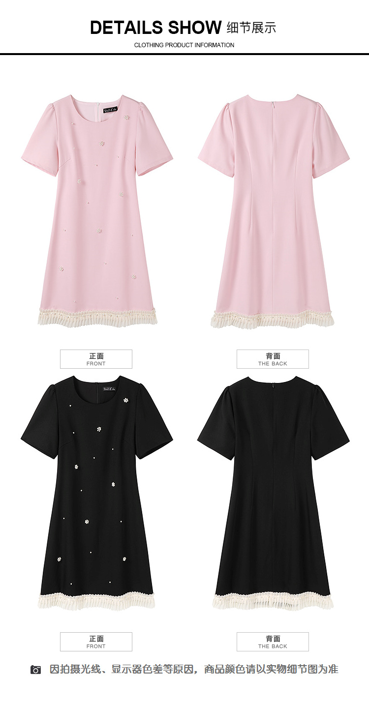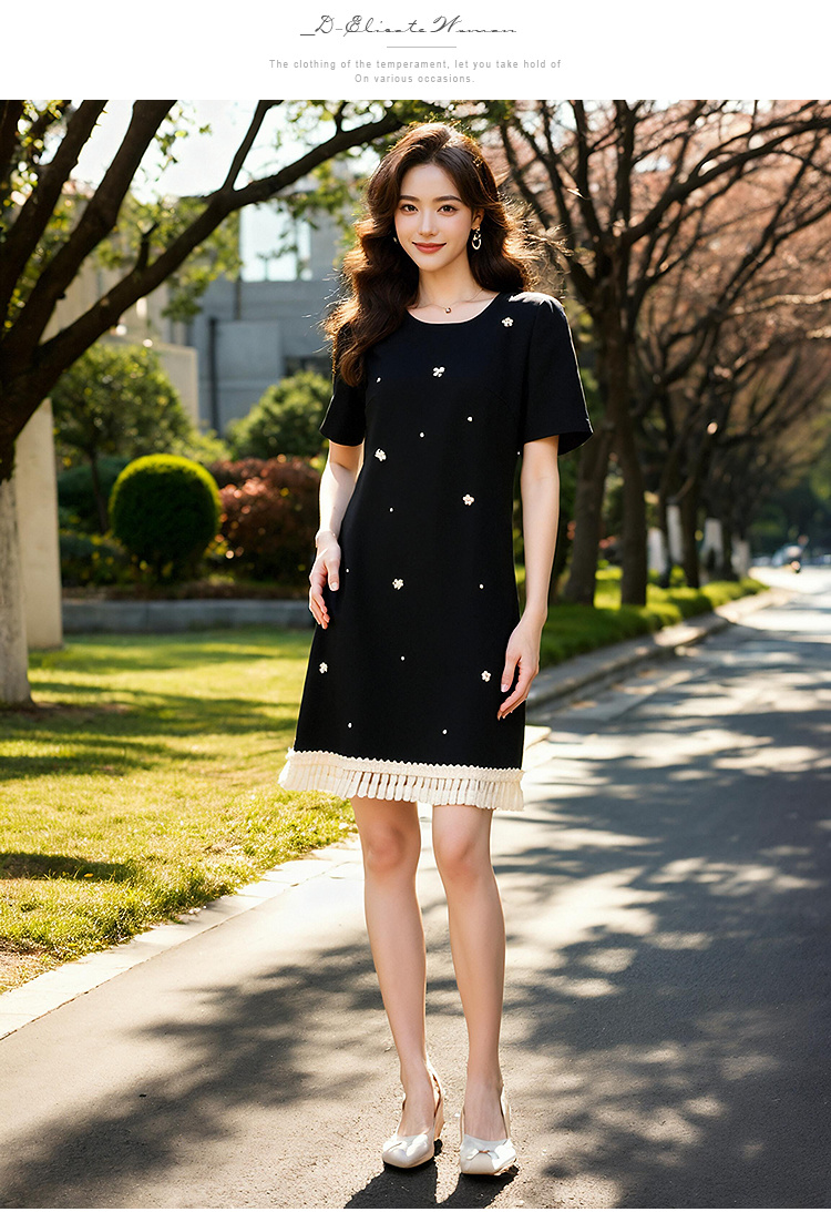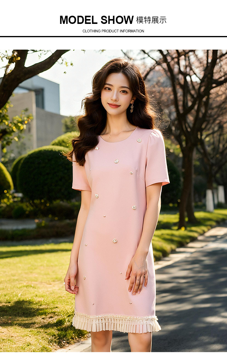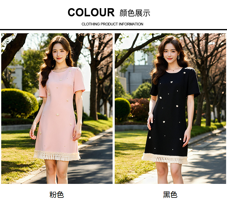 奢姿大码女装2025夏季钉珠减龄花边拼接时尚连衣裙胖妹妹简约裙子9952890413