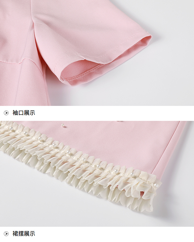 奢姿大码女装2026夏季木耳边拼接翻领连衣裙胖妹妹时尚千金风裙子9962872182