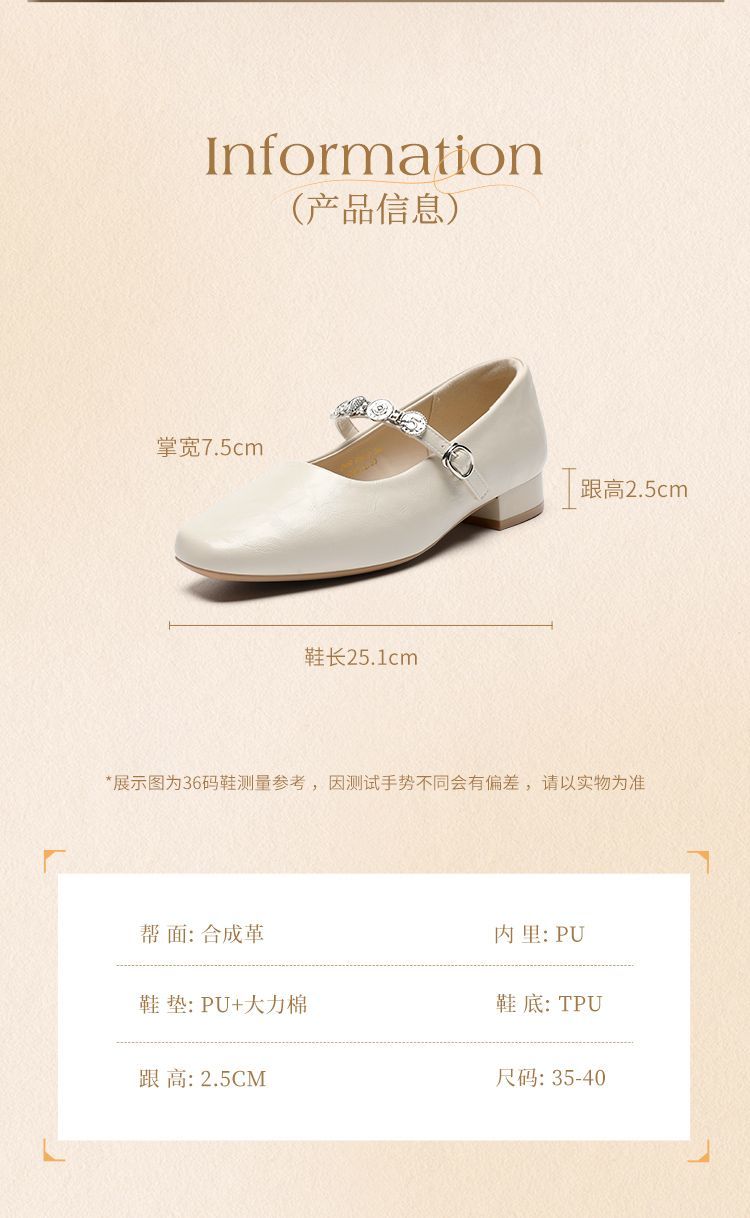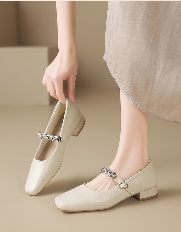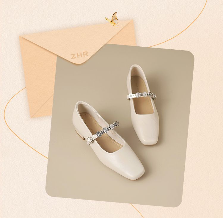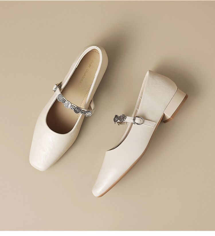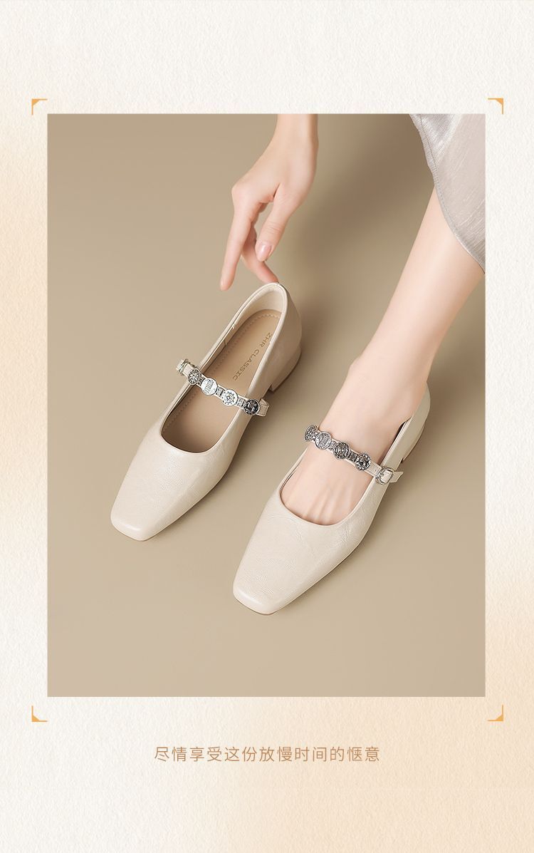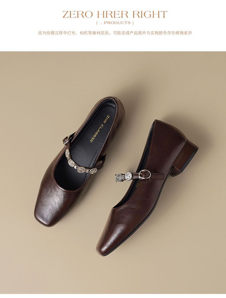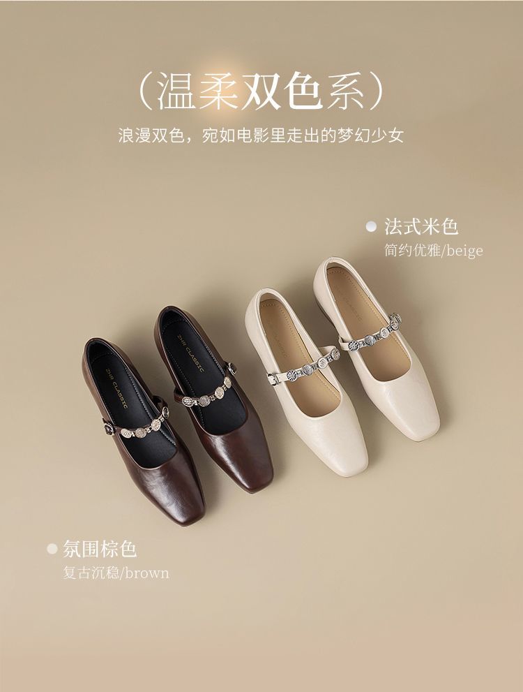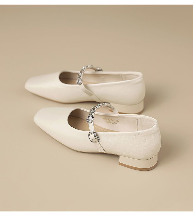 ZHR方头水钻浅口单鞋复古玛丽珍鞋2025新款春季法式平底气质皮鞋