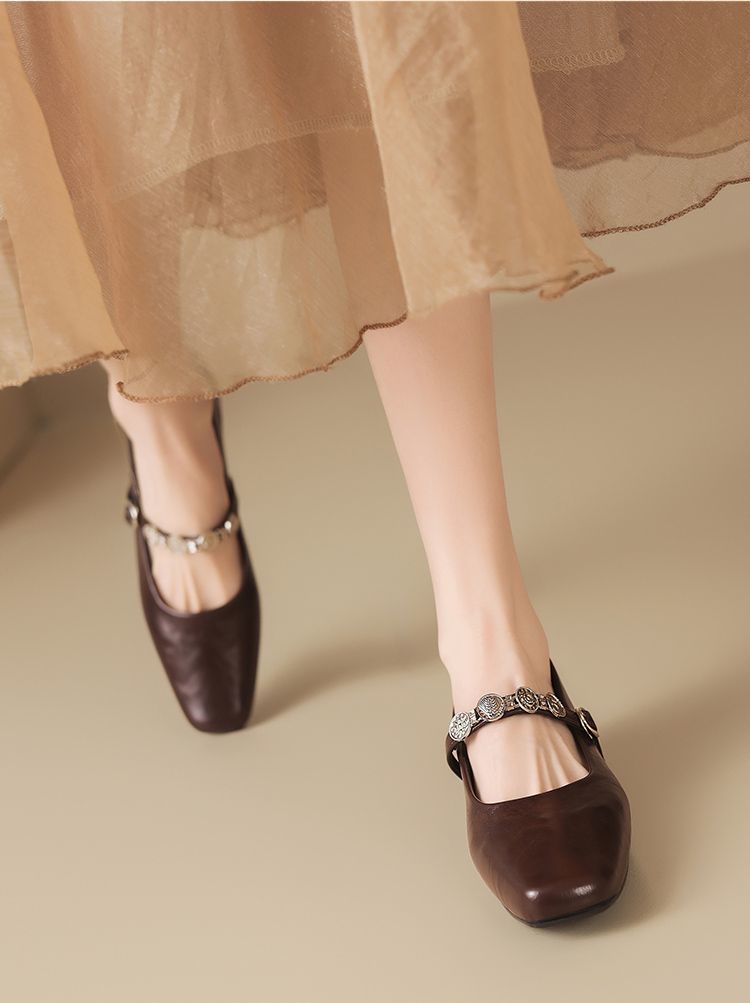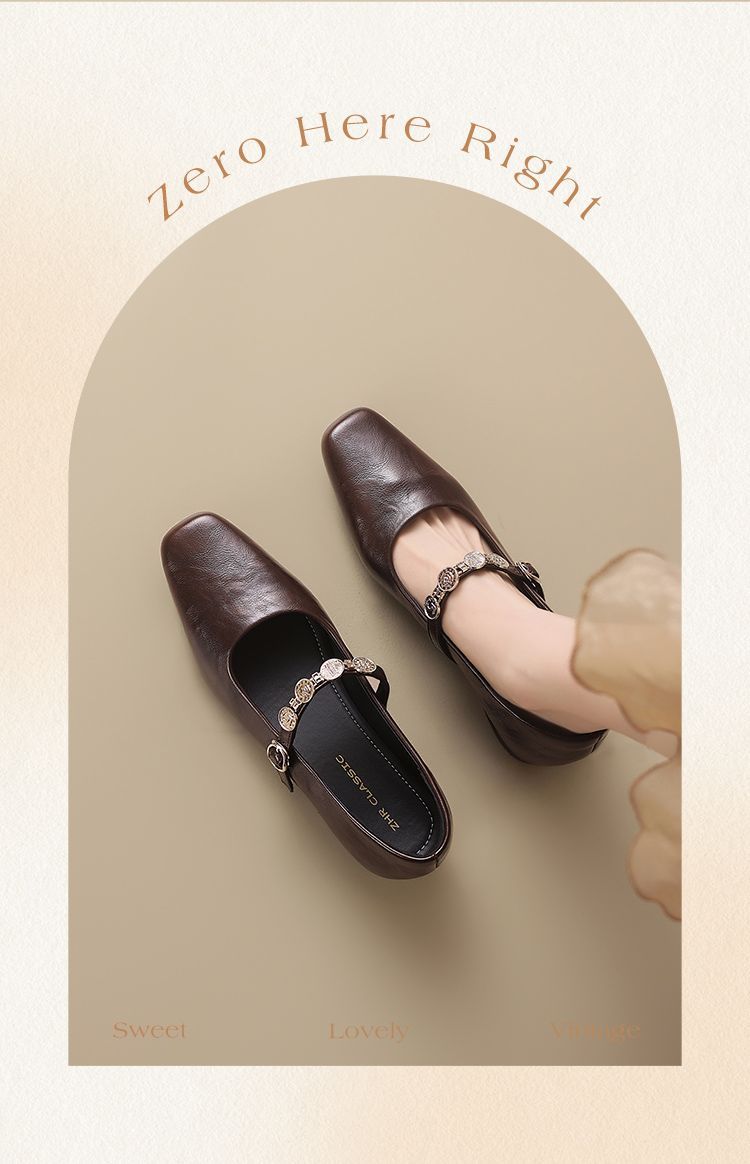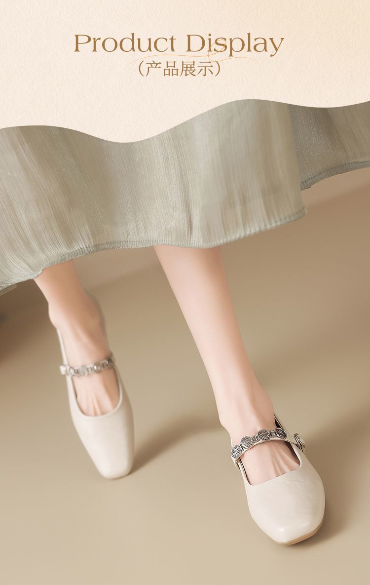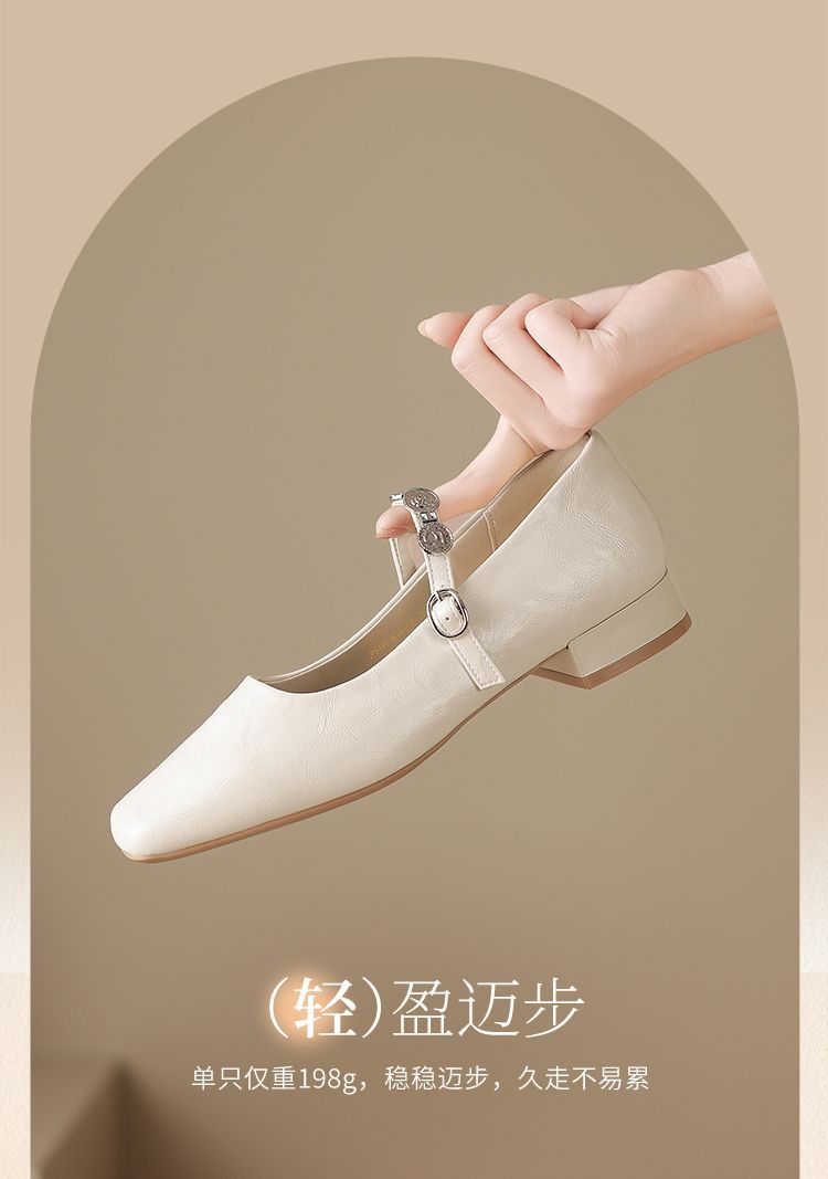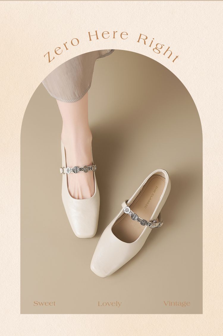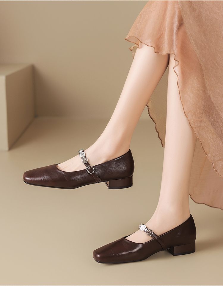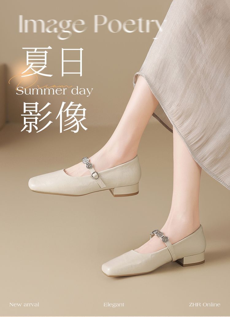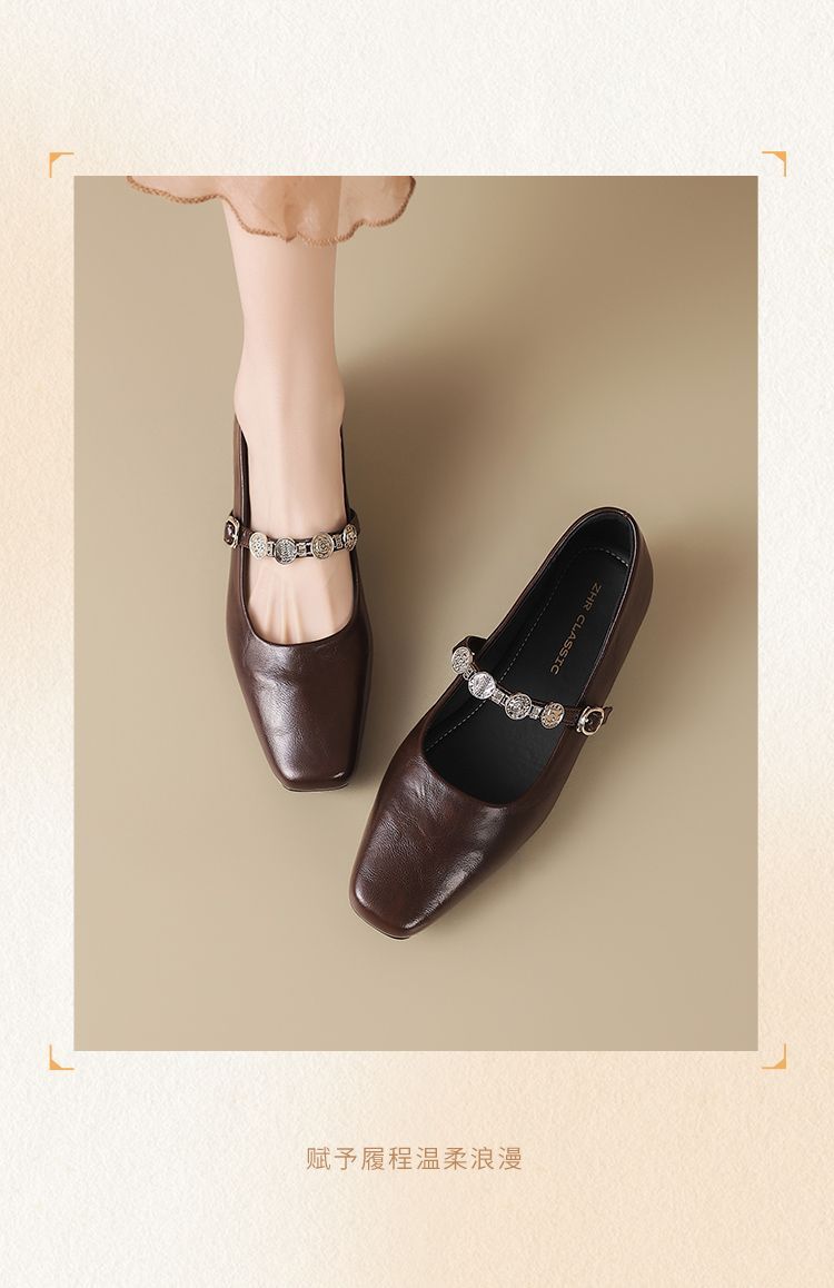 ZHR方头水钻浅口单鞋复古玛丽珍鞋2025新款春季法式平底气质皮鞋