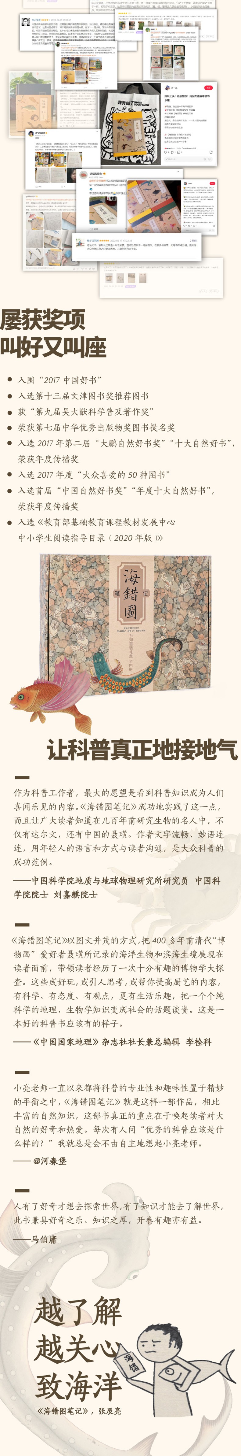 小亮老师一直以来都将科普的专业性和趣味性置于精妙的平衡之中,《海错图笔记》就是这样一部作品,相比丰富的自然知识,这部书真正的重点在于唤起读者对大自然的好奇和热爱。每次有人问“优秀的科普应该是什么样的?”我就总是会不由自主地想起小亮老师。