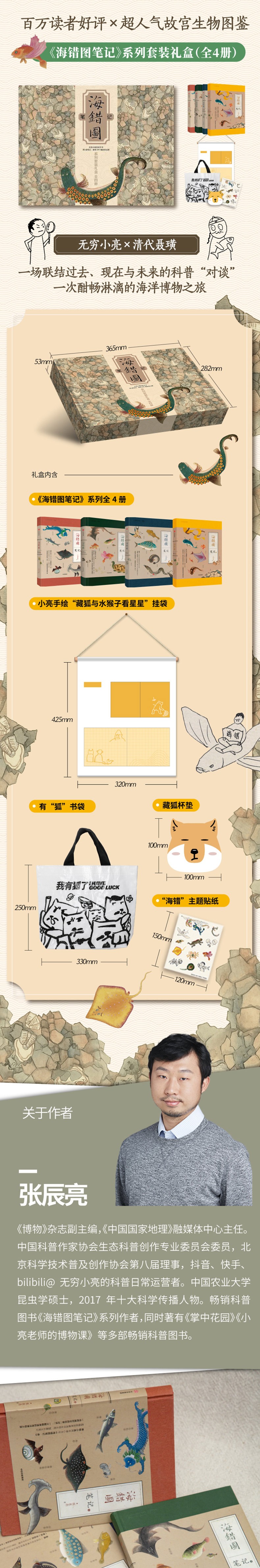 张辰亮科普代表作《海错图笔记》系列套装礼盒,内含小亮手绘周边