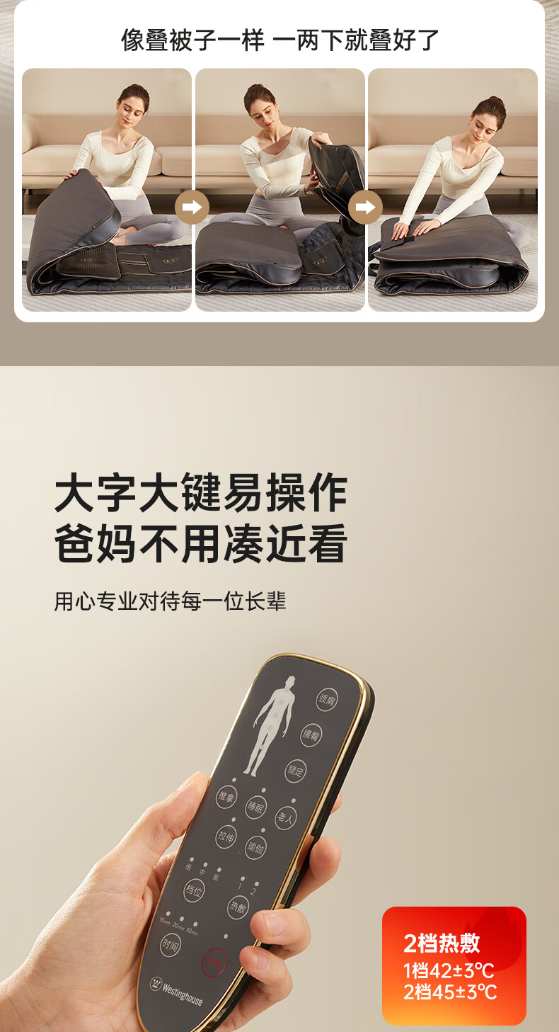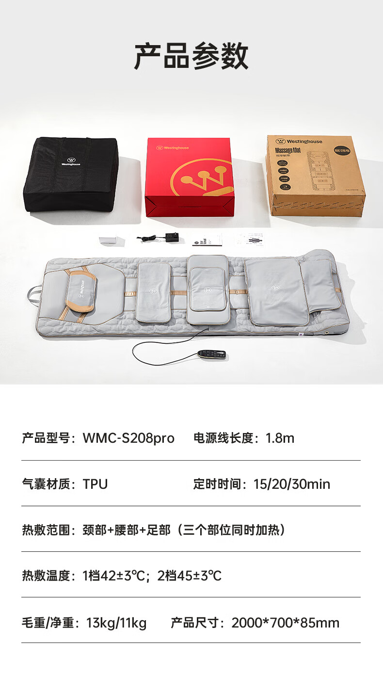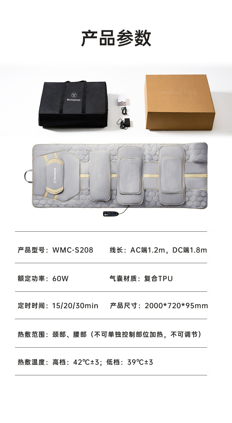 西屋(Westinghouse)颈椎腰部背部按摩仪_S208【腰腿气囊可调,高矮胖瘦都能用】