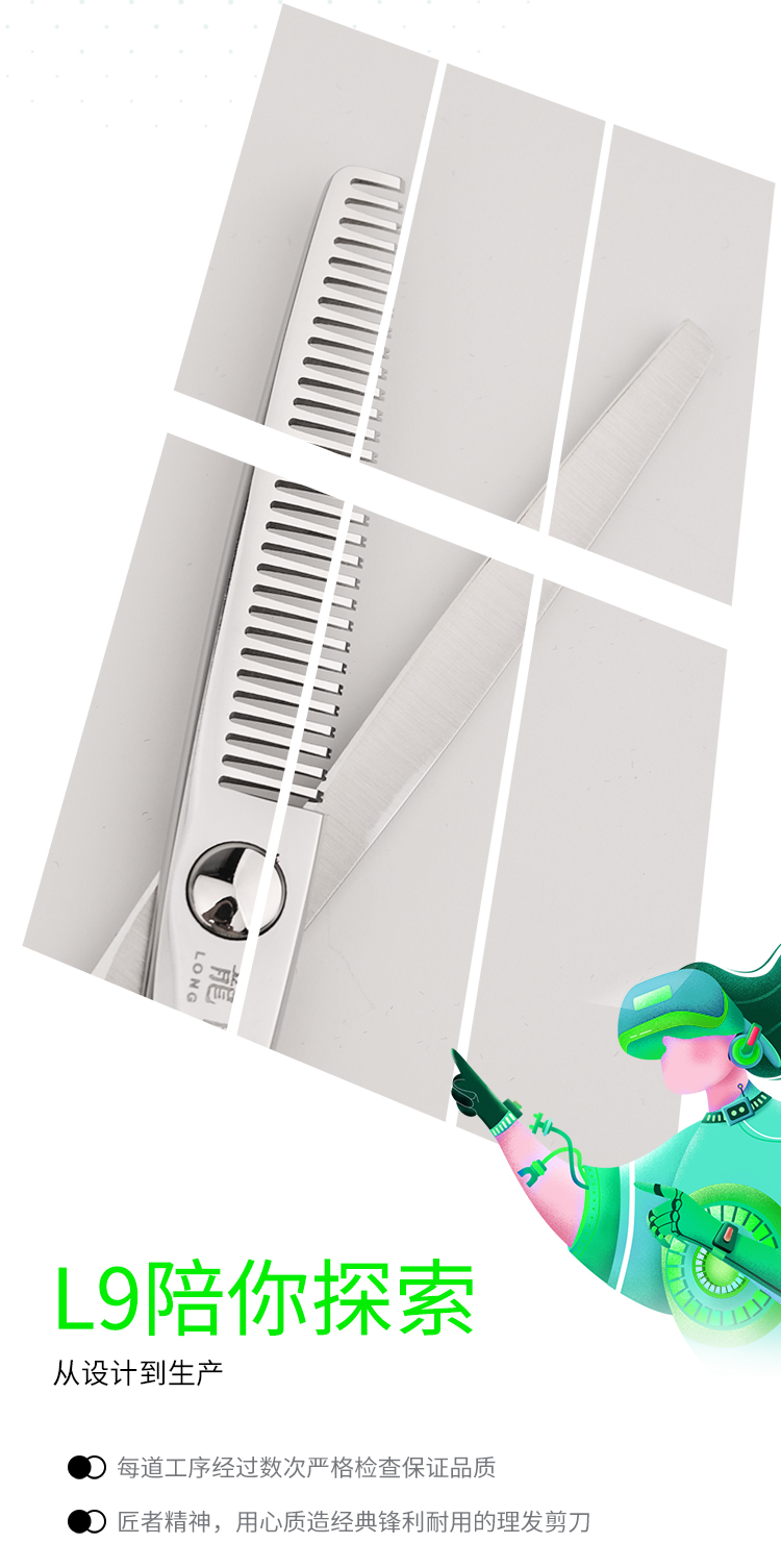 龙印理发剪刀L9美发剪刀综合牙剪20%-25%发打薄牙剪专业家用剪刀