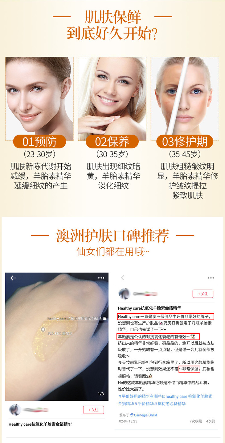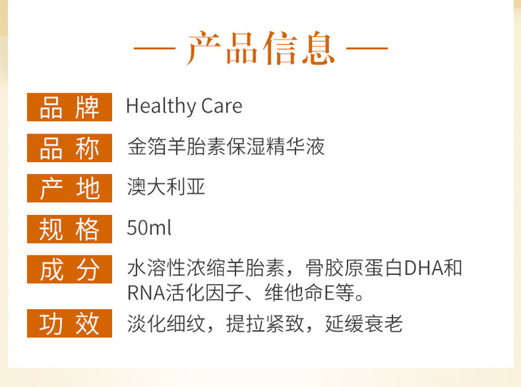 【现货】Healthy Care澳洲金箔羊胎素精华液 50ml