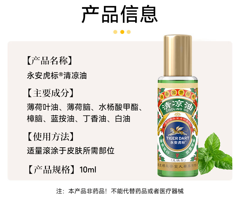 永安虎标清凉油液体滚珠10ml/118085 凉感薄荷舒缓红痒植物萃取