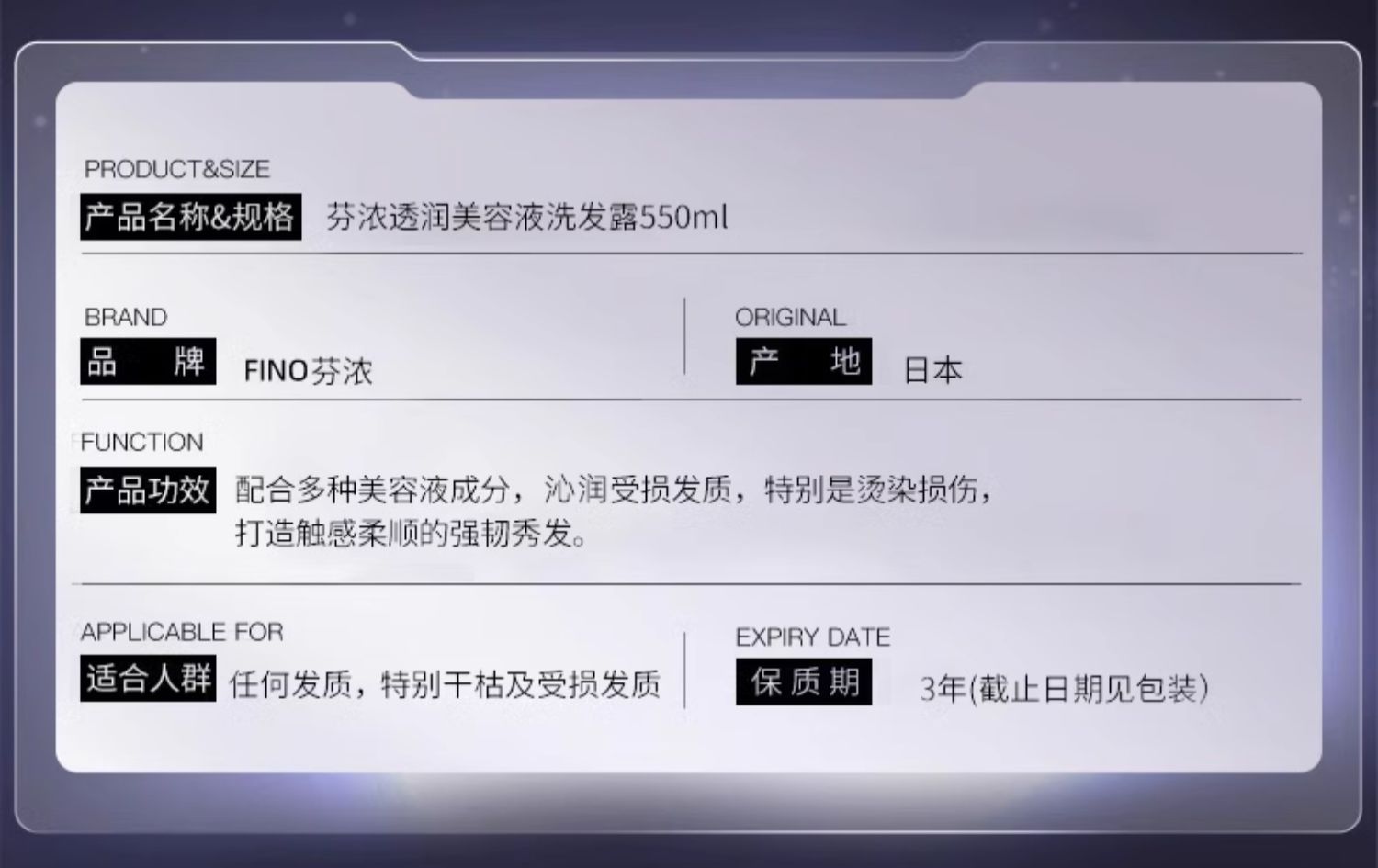 日本芬浓透润美容液洗发露/护发素550ml 修护受损发质柔顺亮泽 110732/117826