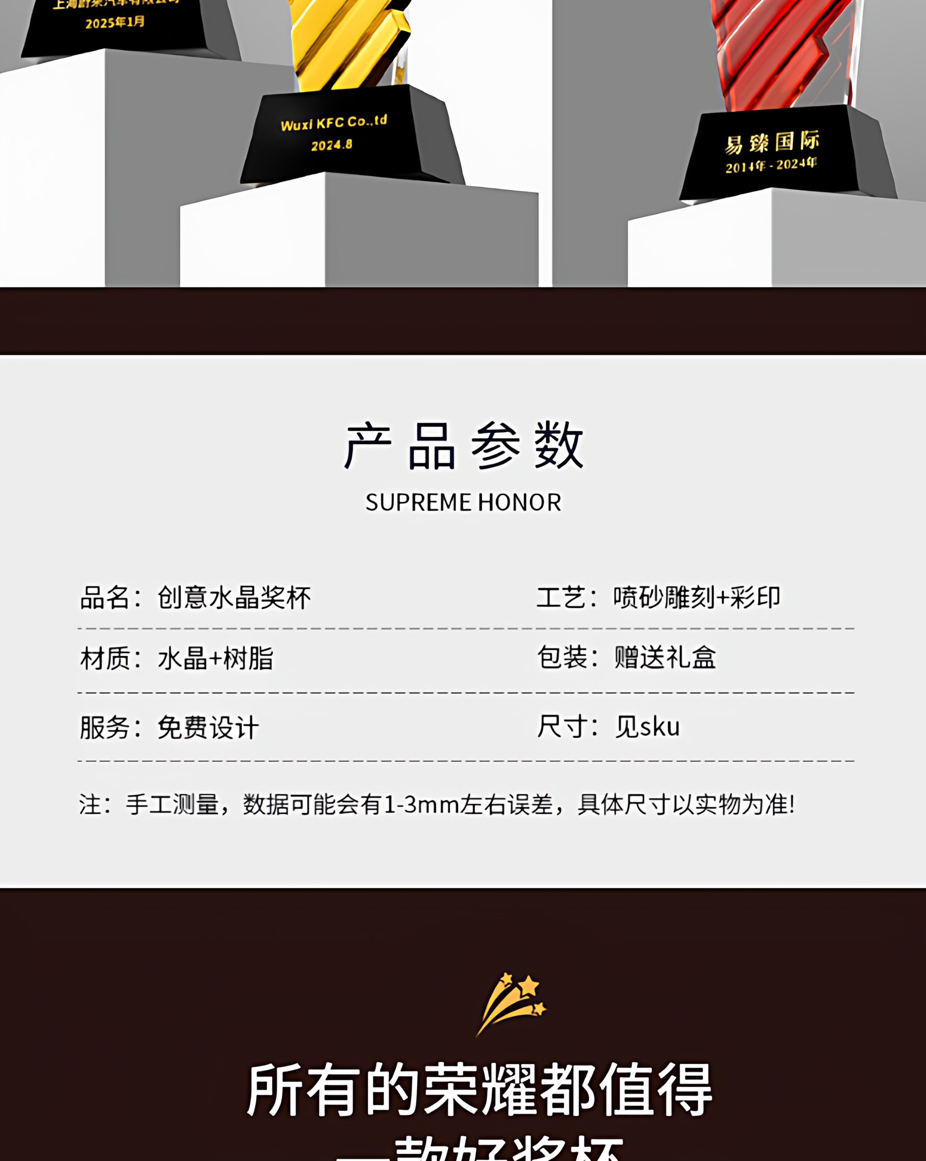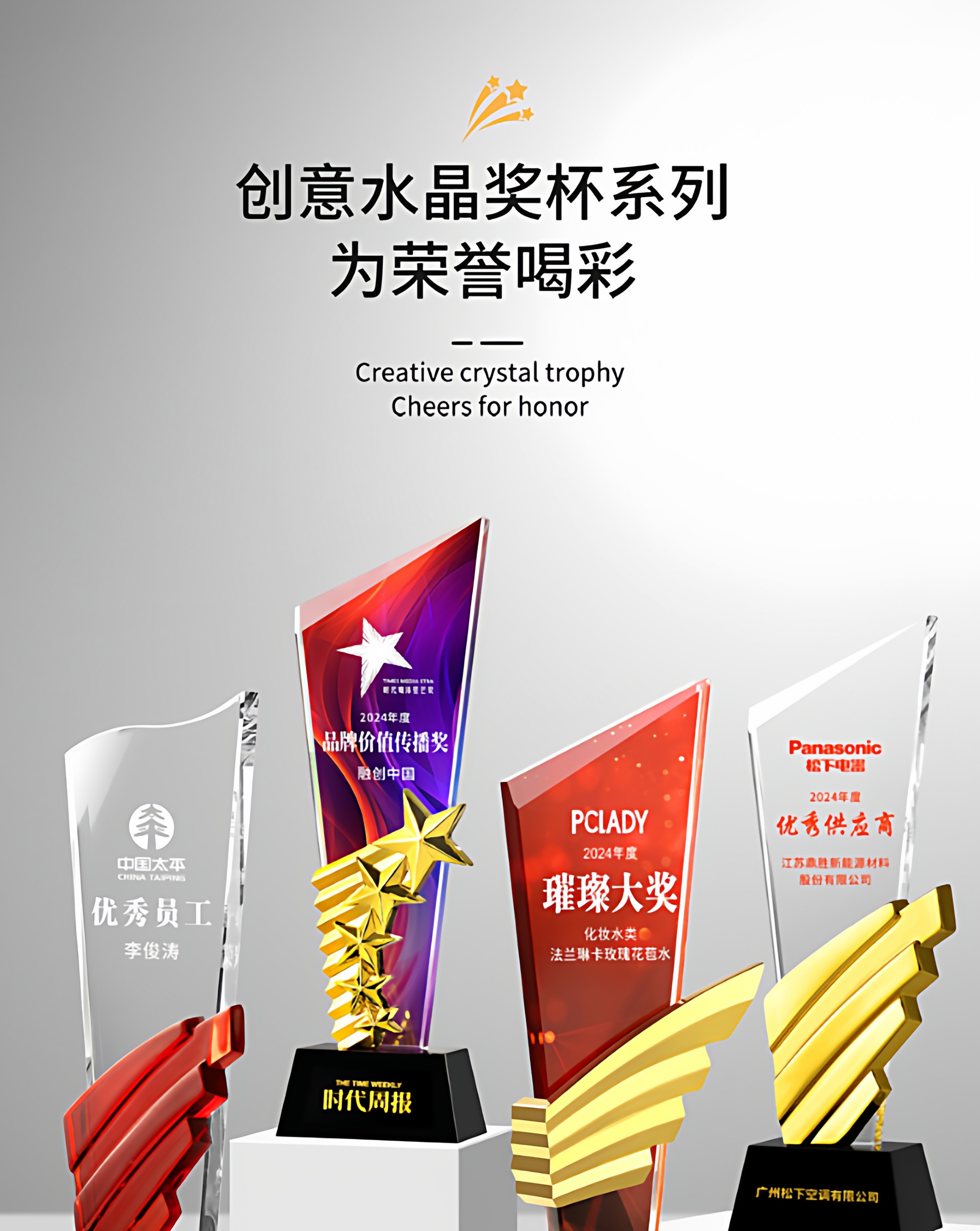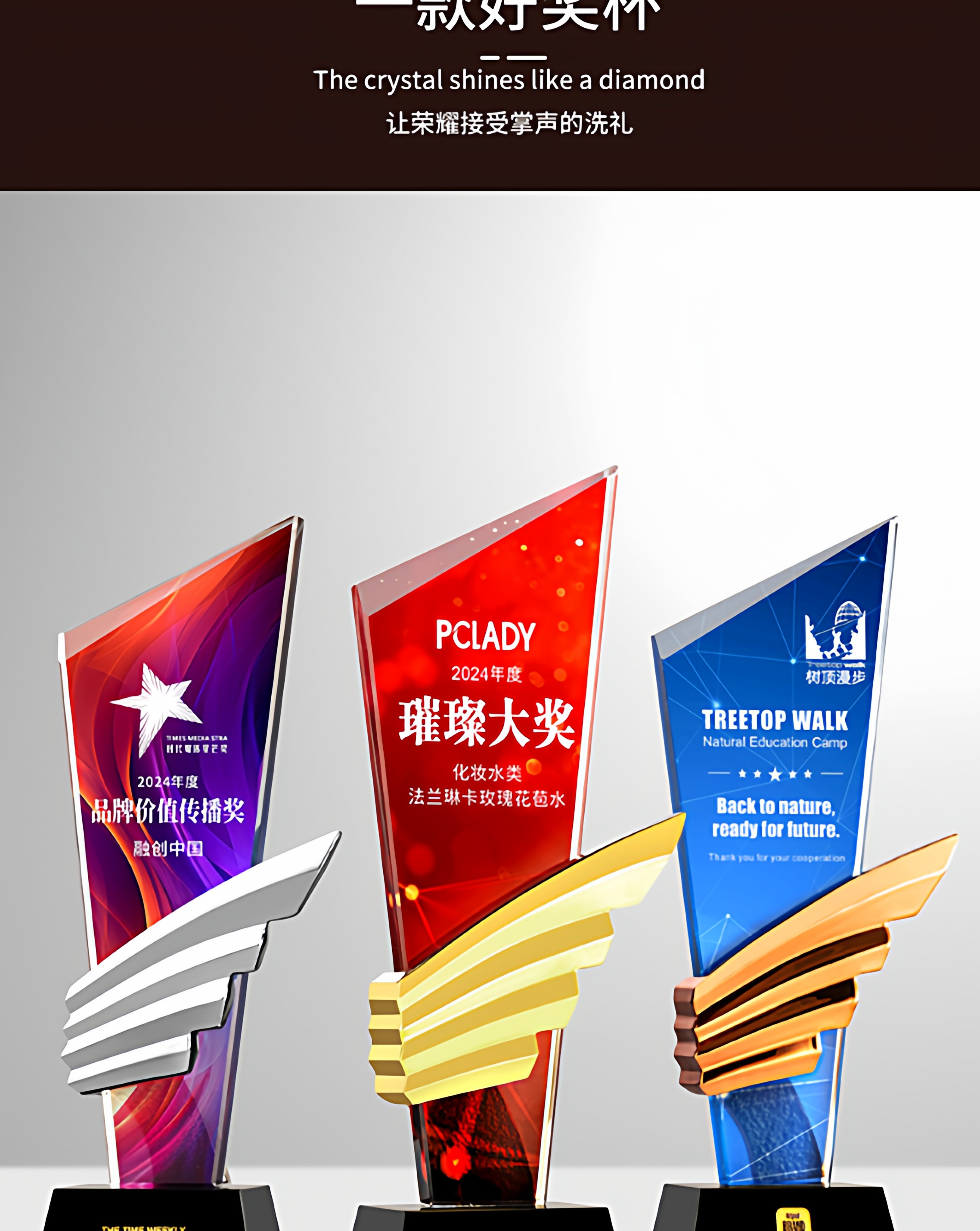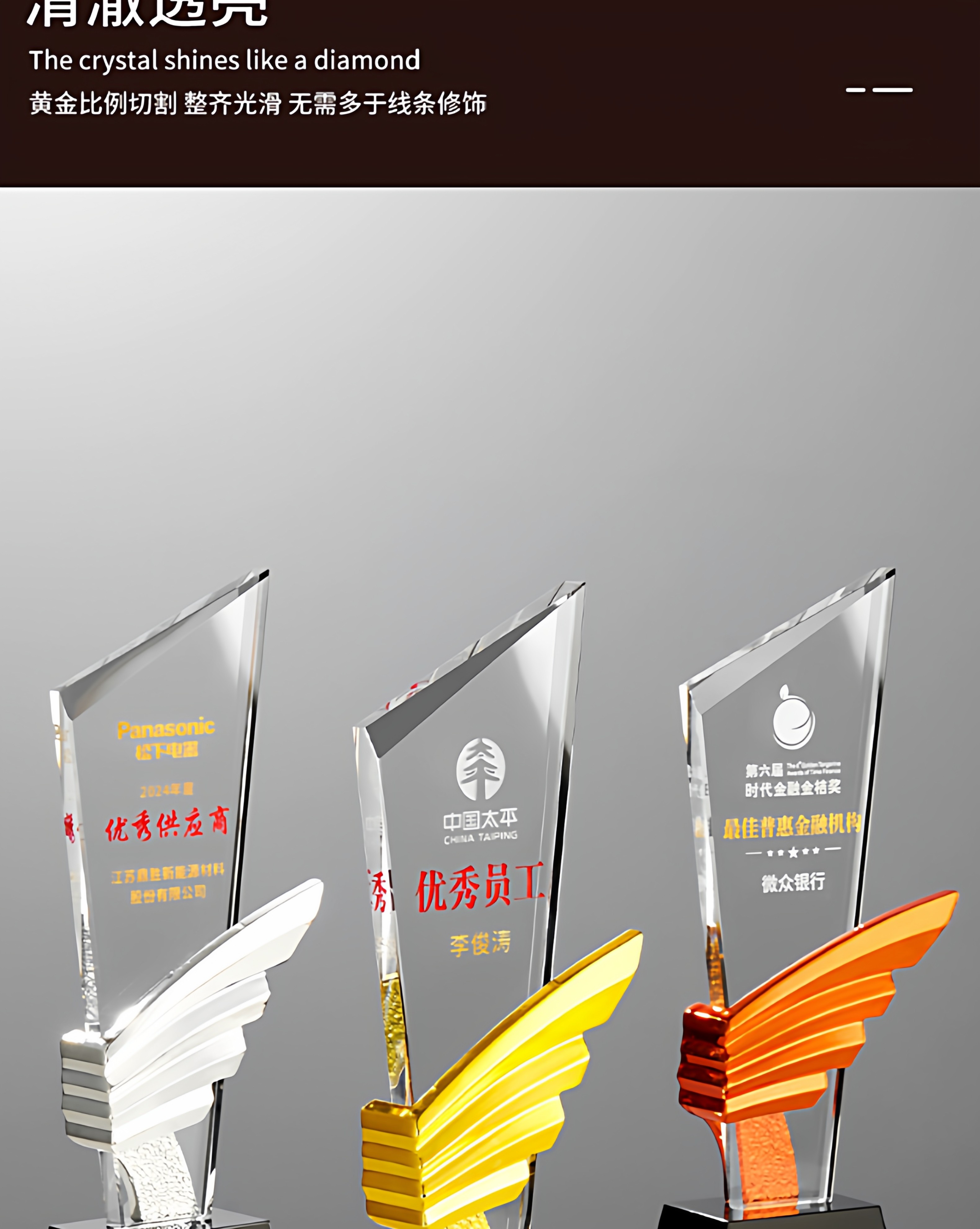 水晶奖杯定制创意翅膀造型企业颁奖奖牌表彰奖品琉璃树脂高档奖杯