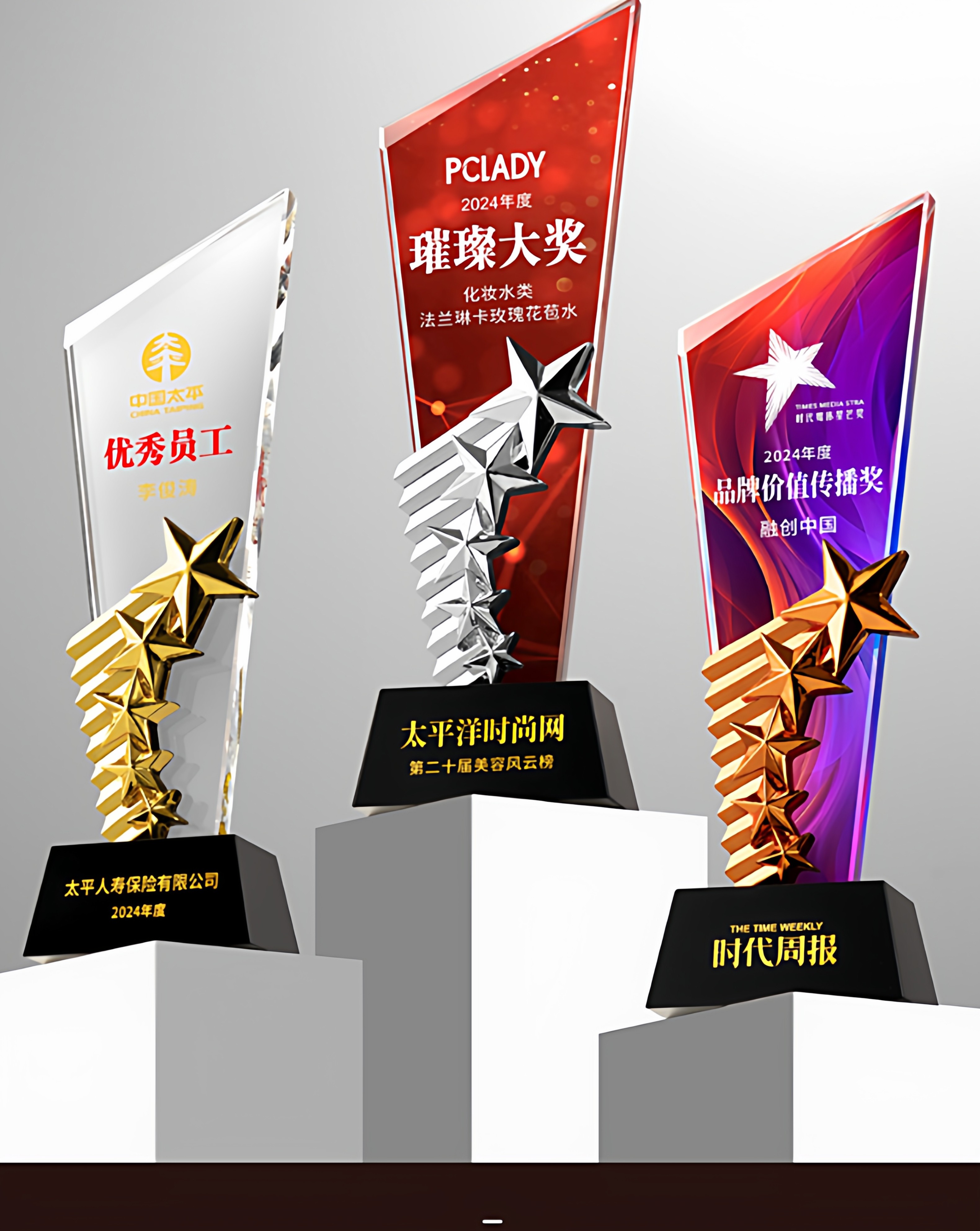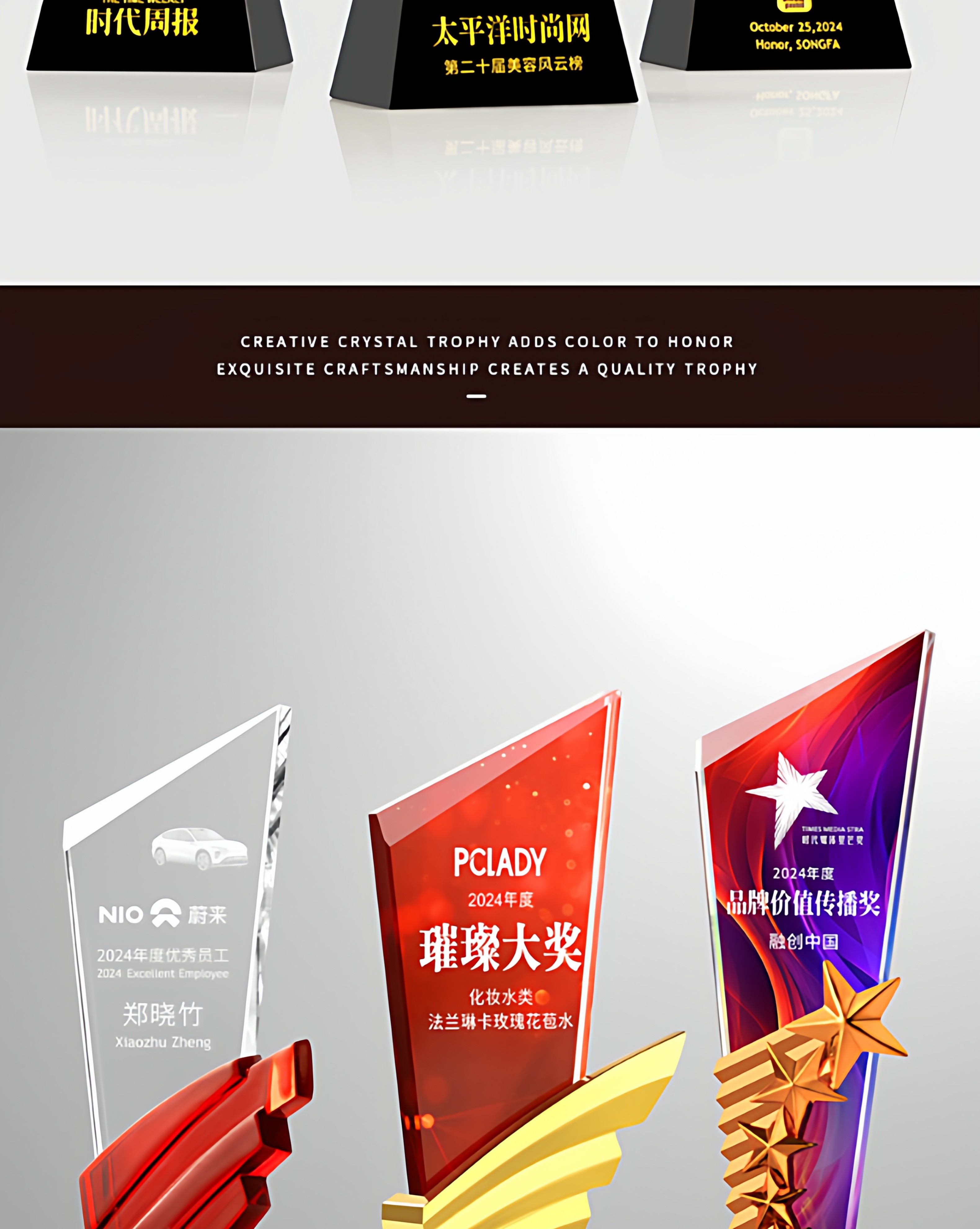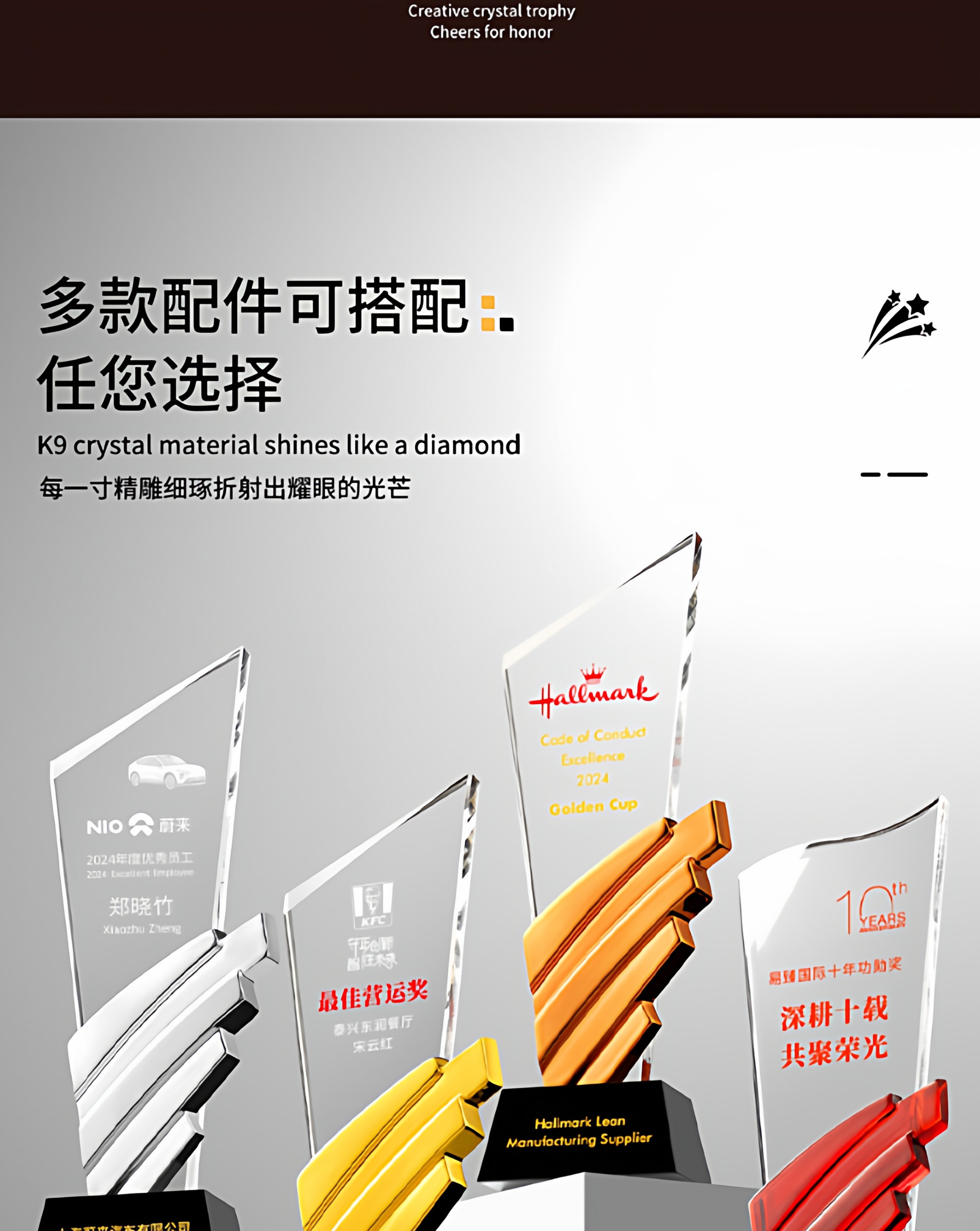 水晶奖杯定制创意翅膀造型企业颁奖奖牌表彰奖品琉璃树脂高档奖杯