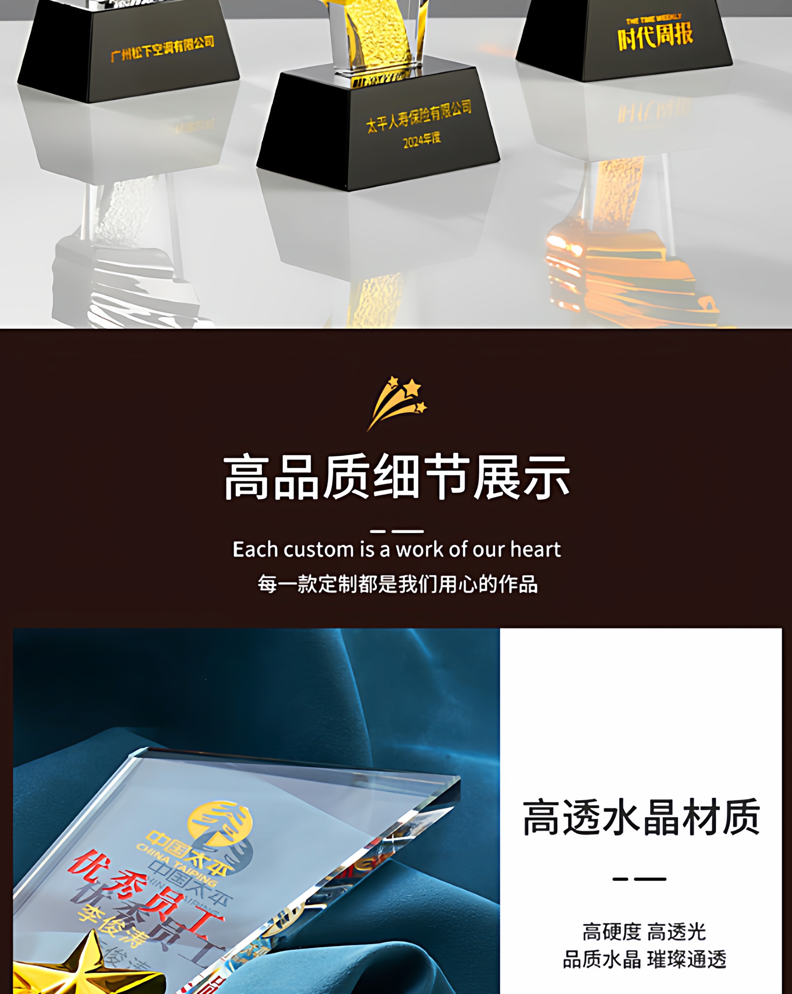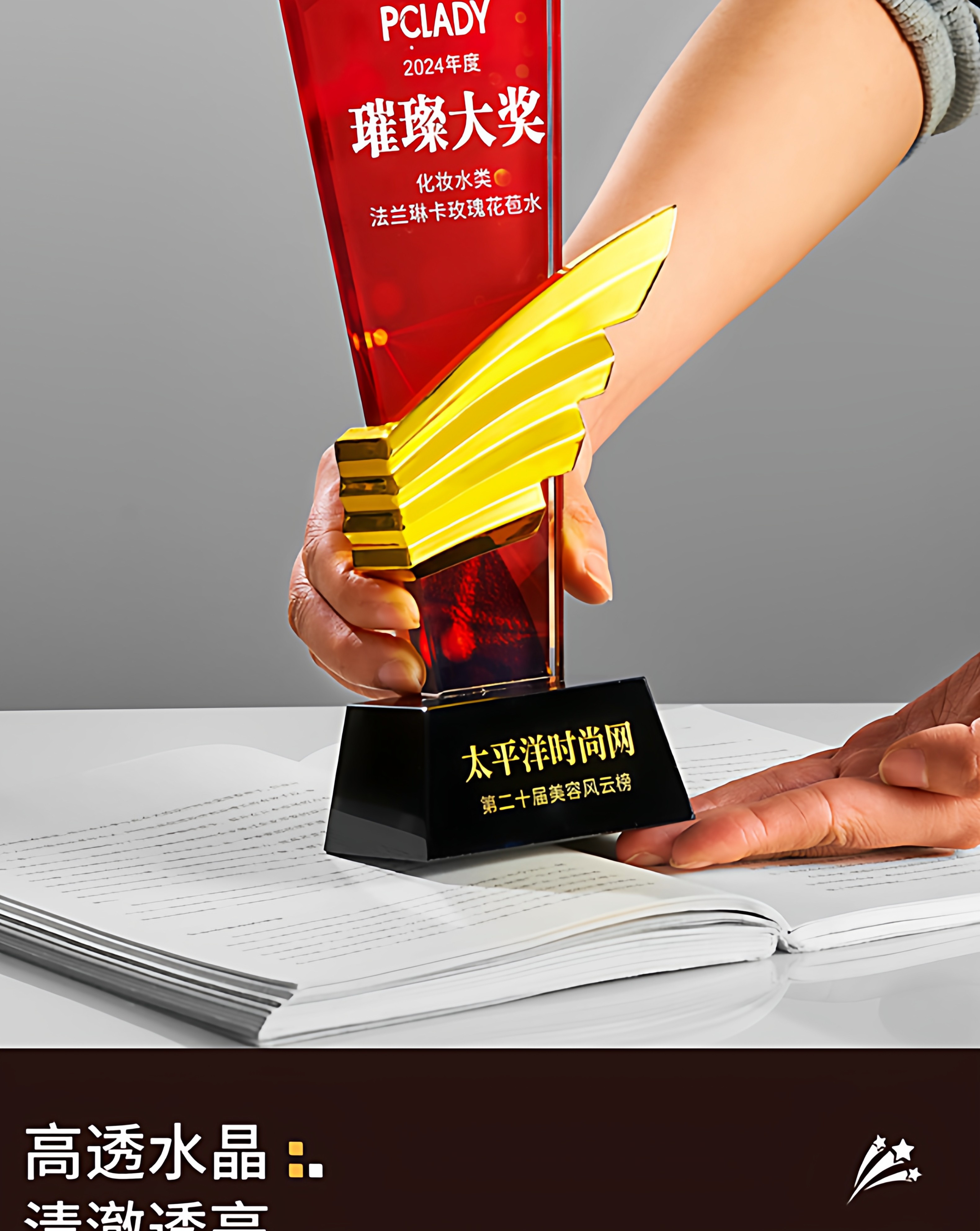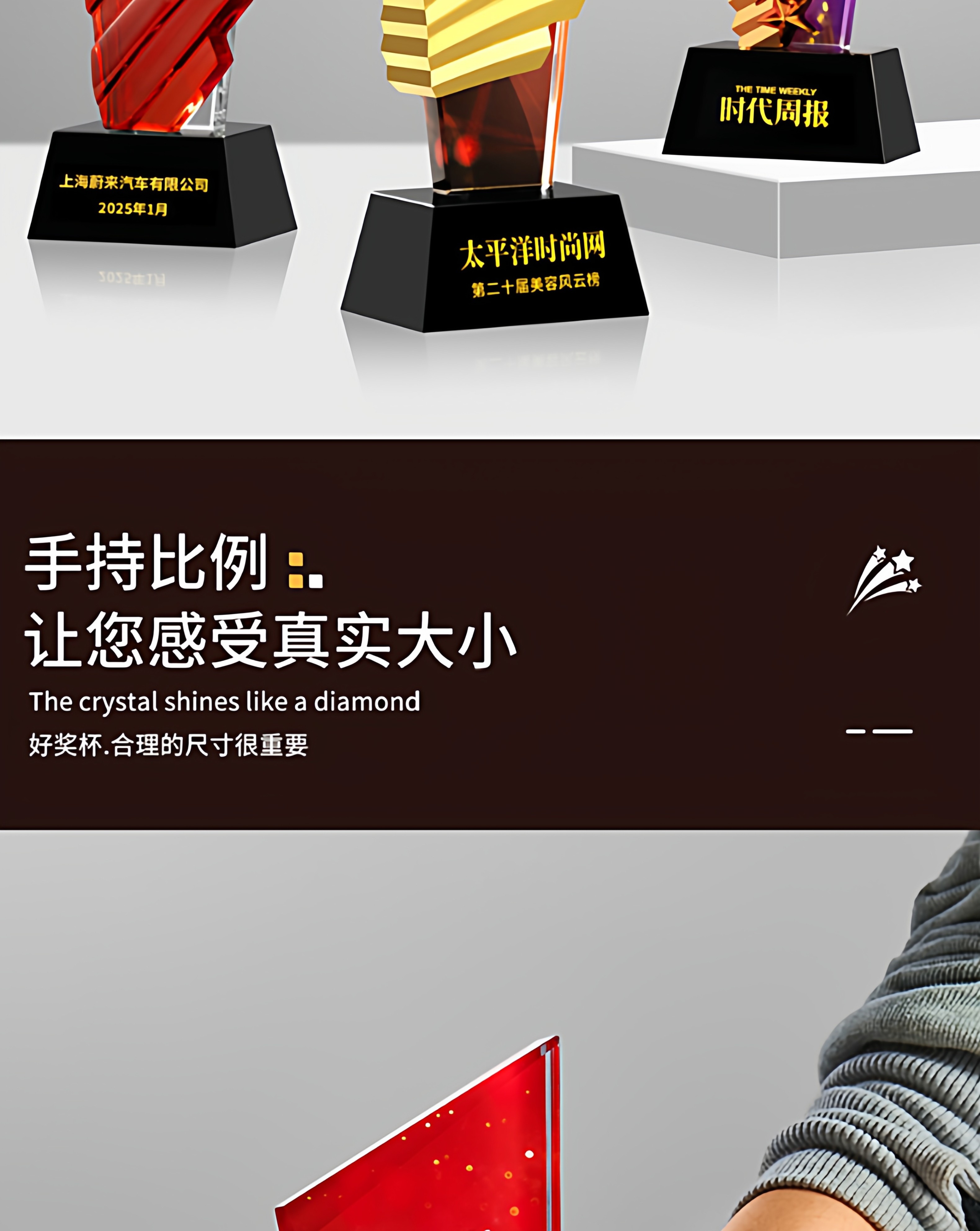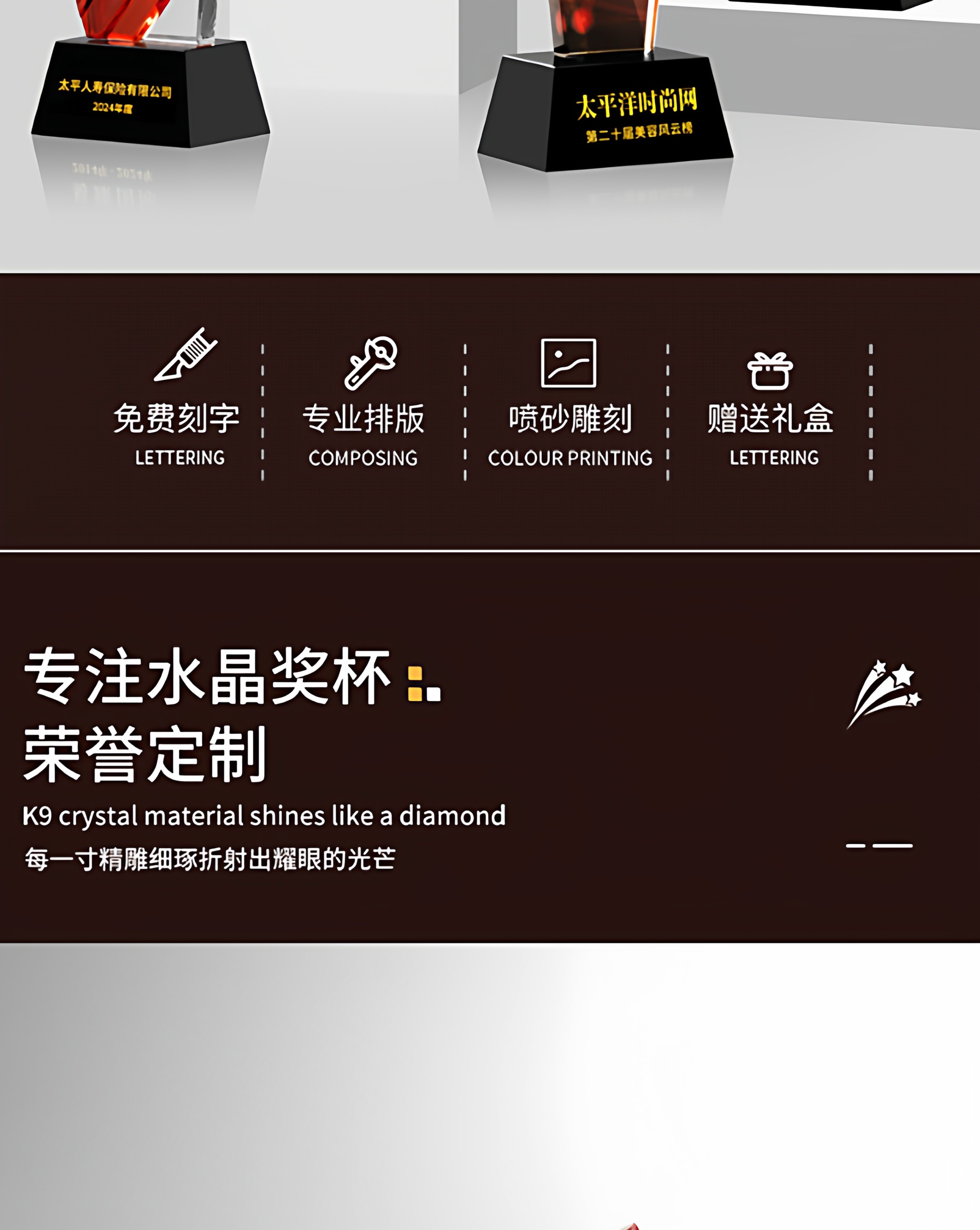 水晶奖杯定制创意翅膀造型企业颁奖奖牌表彰奖品琉璃树脂高档奖杯