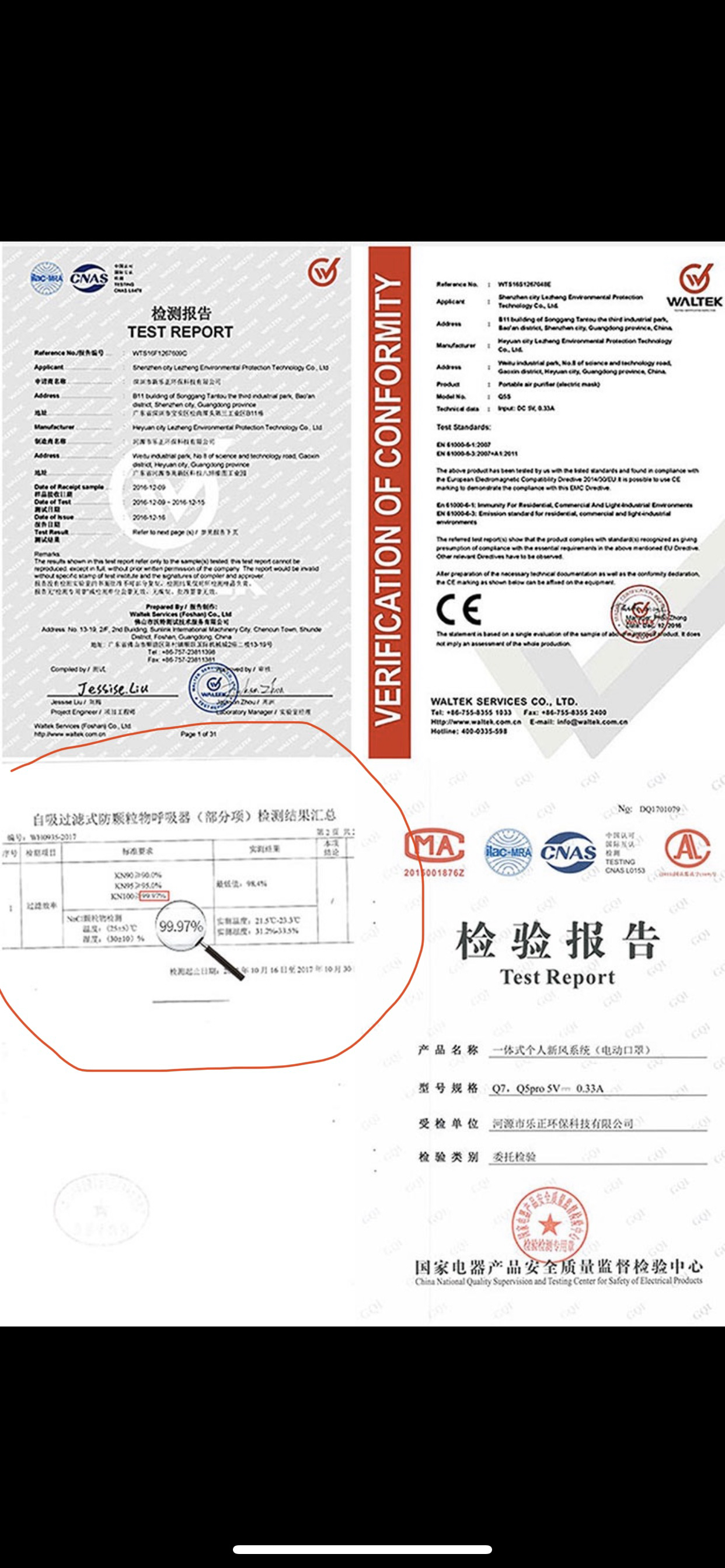 说明:kn95级别,实际过滤效率99.97%,高于kn95,达到kn100标准。