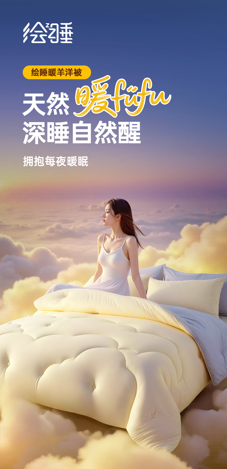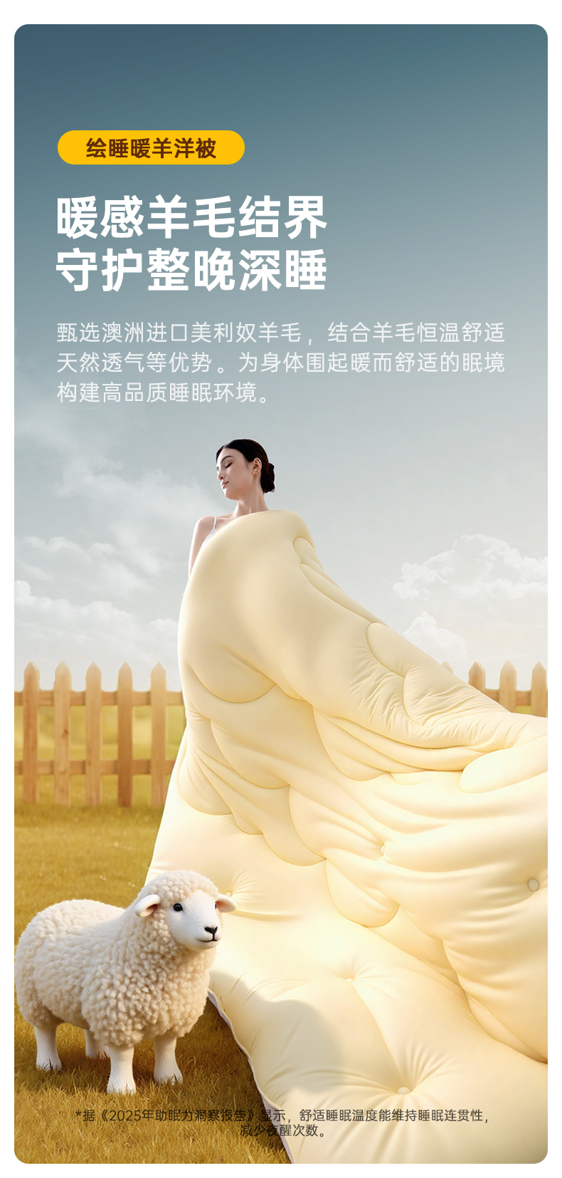 绘睡 美利奴羊毛被 裸睡级暖绒体验 美丽奴羊毛+面料仿生绒毛工艺,锁温强透气好暖暖糯糯