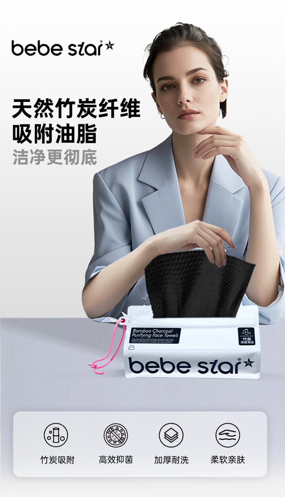 产品名称:BEBESTAR竹炭净颜洗脸巾棉柔巾