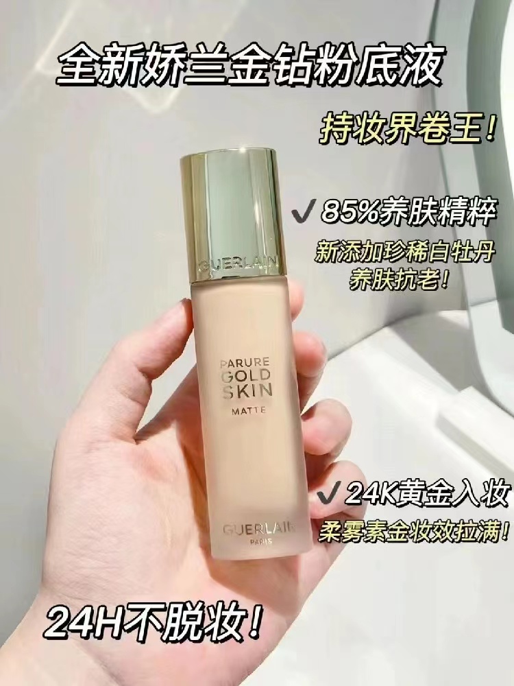 娇兰金钻修颜粉底液,持妆光泽柔雾防晒,冬日上妆新选择。轻薄贴合,打造自然哑光肌,同时抵御日常紫外线,让肌肤全天保持细腻柔亮。