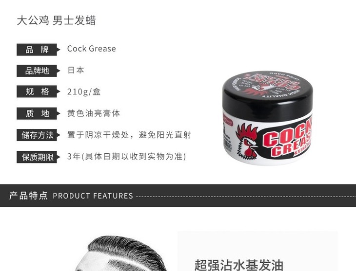【保税仓】COCK GREASE 大公鸡发蜡 210G