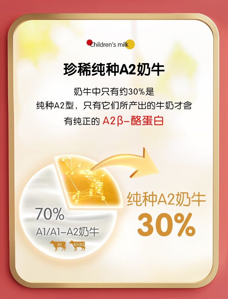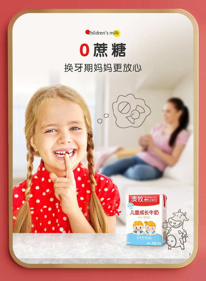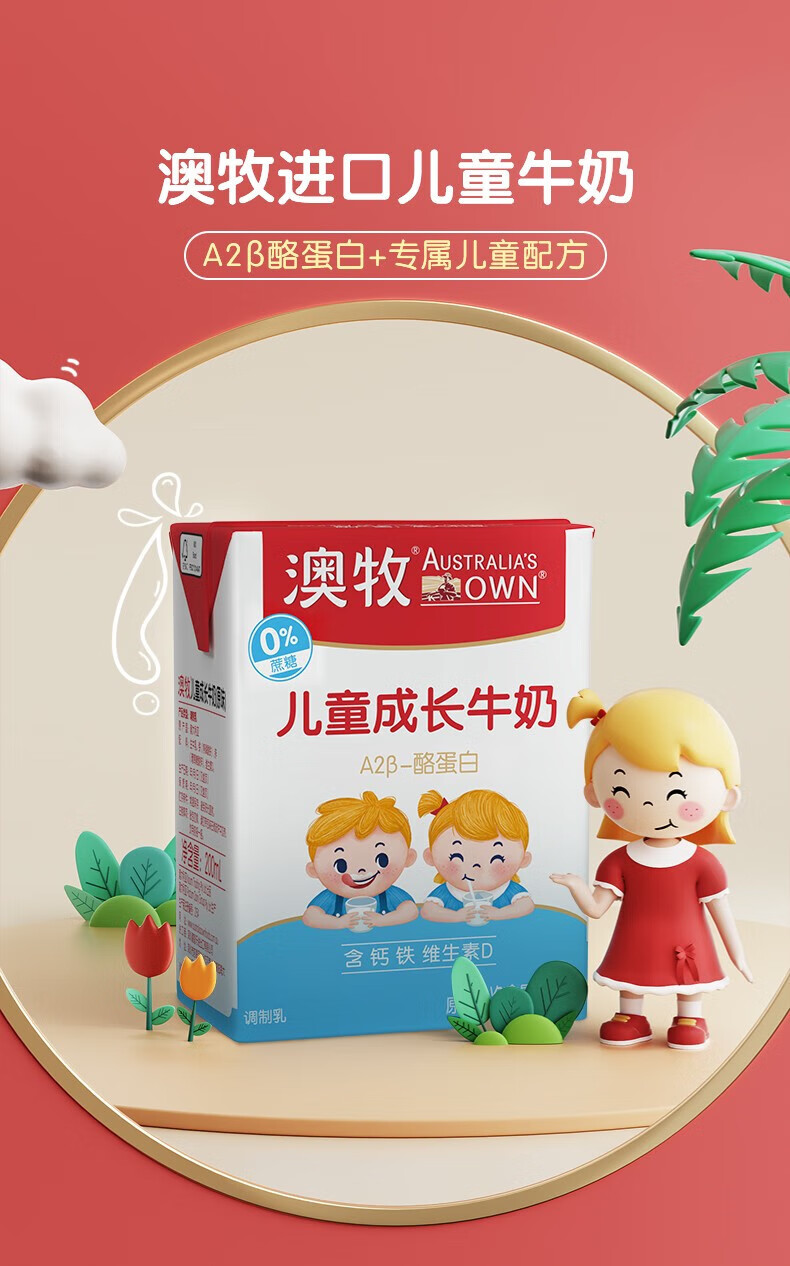 澳牧儿童成长牛奶原味无糖礼盒200ml*12/025351 A2β-酪蛋白一盒满足每日30%钙需要