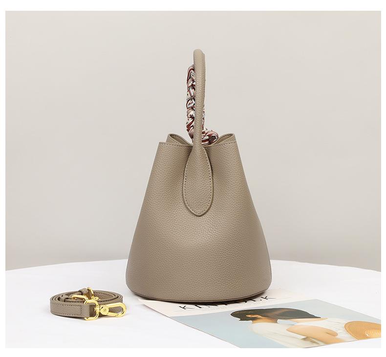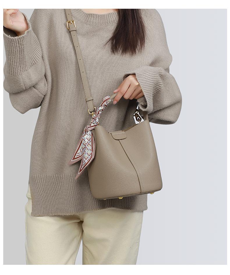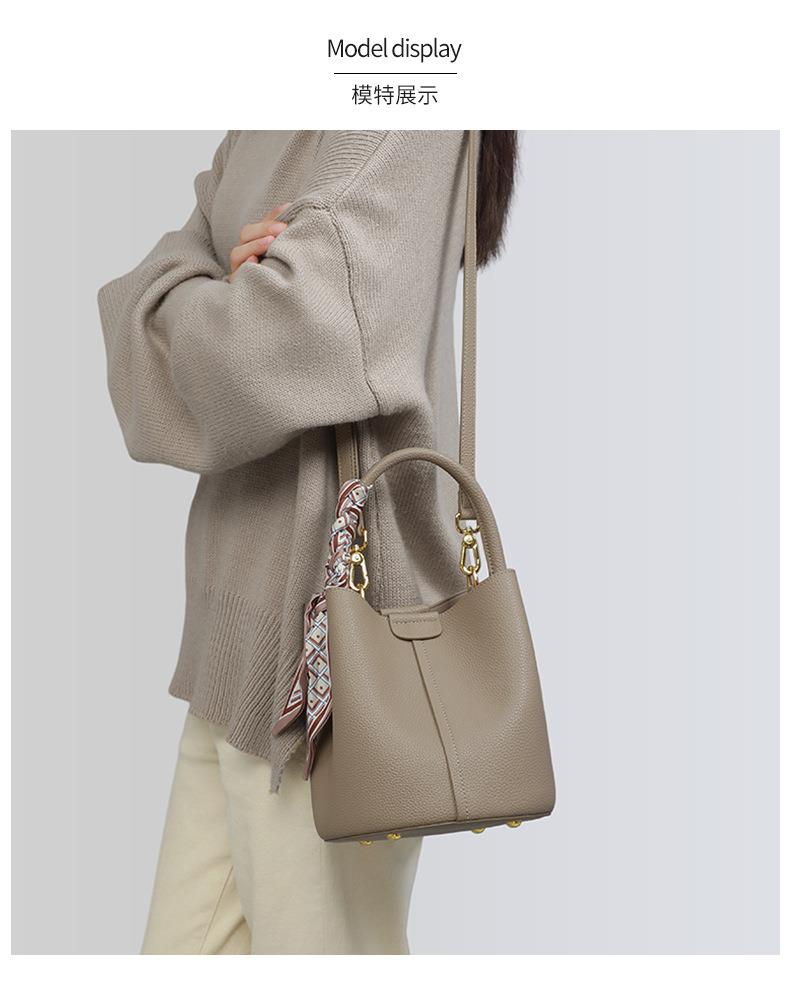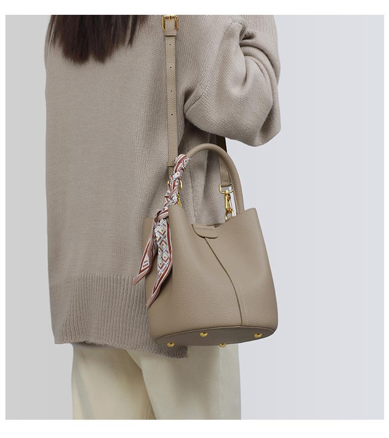 Viney包包百搭新款包包女包斜挎包2023轻奢高级感真皮手提水桶包