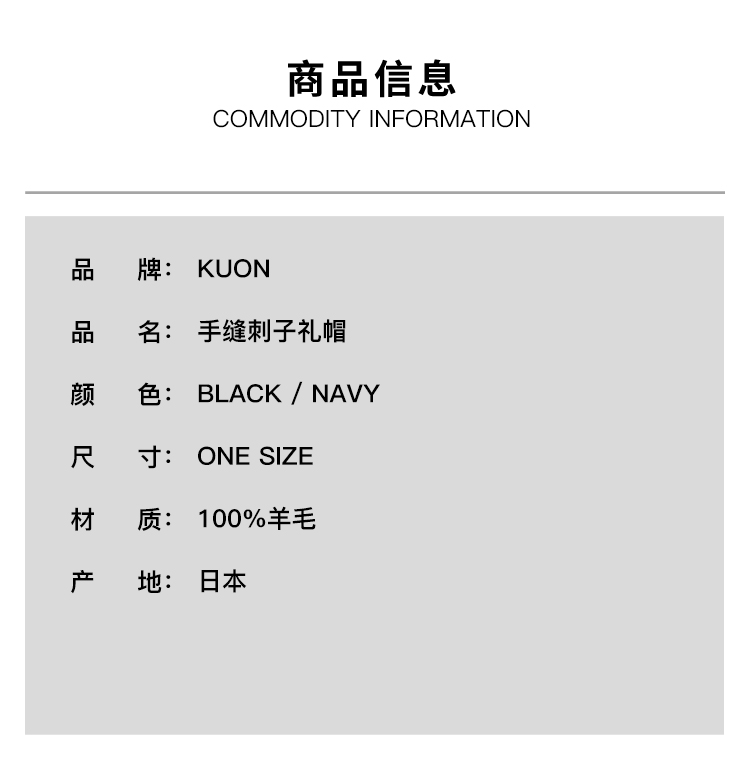 KUON Sashiko Fedora Hat 日本手缝刺子礼帽