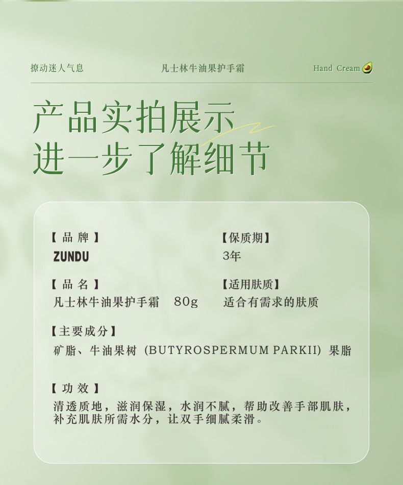 【四季温柔手护!牛油果凡士林护手霜】滋润保湿防干裂秋冬季不油腻,轻柔奶油质感润而不粘 清爽生香。ry
