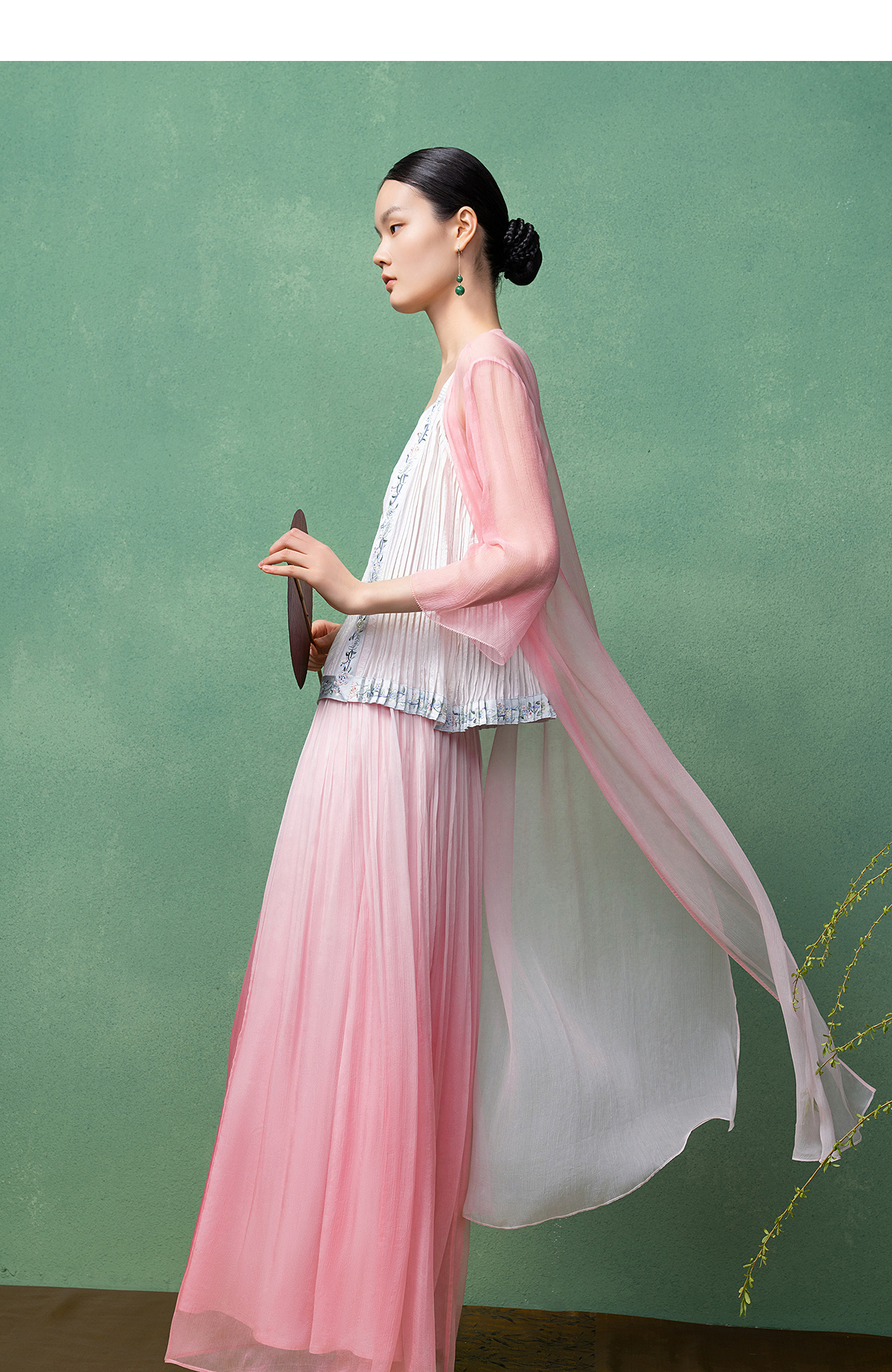 【林栖设计小店】【现货】桑蚕丝马面裙粉色渐变复古国风2025春夏新品半身裙女1922385B