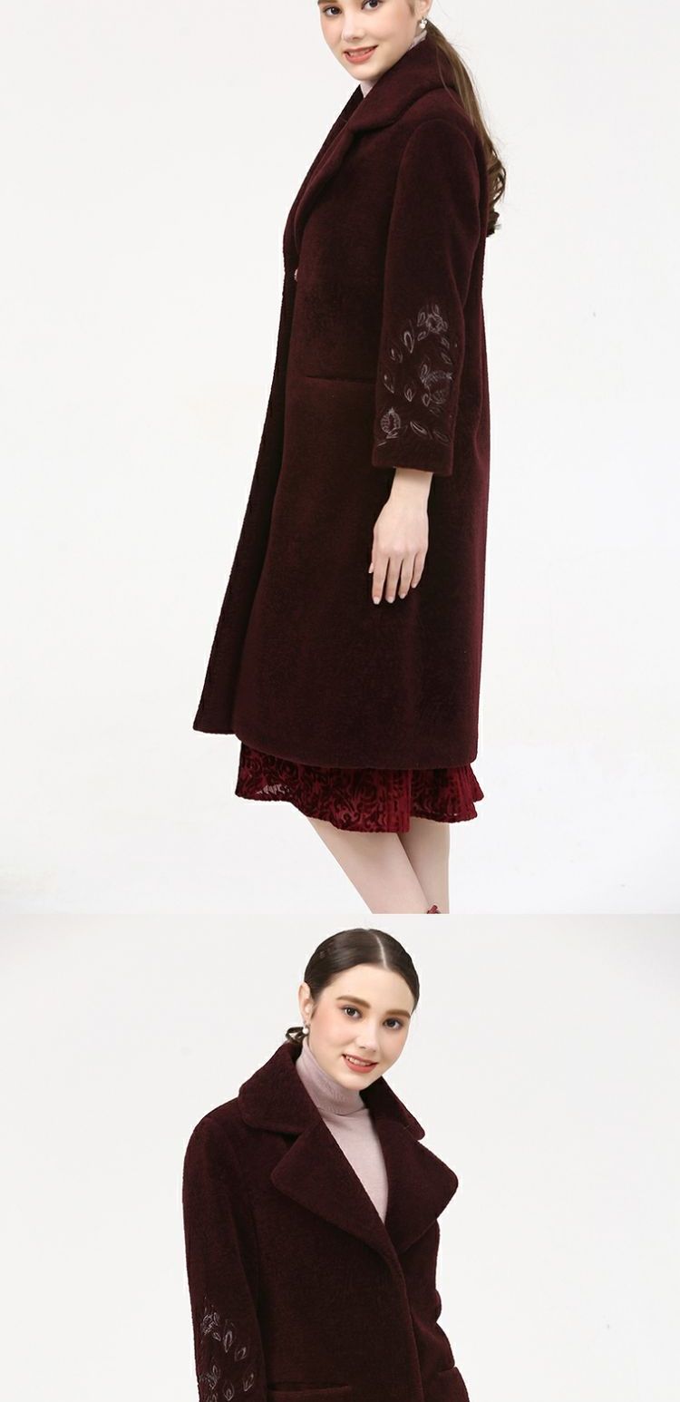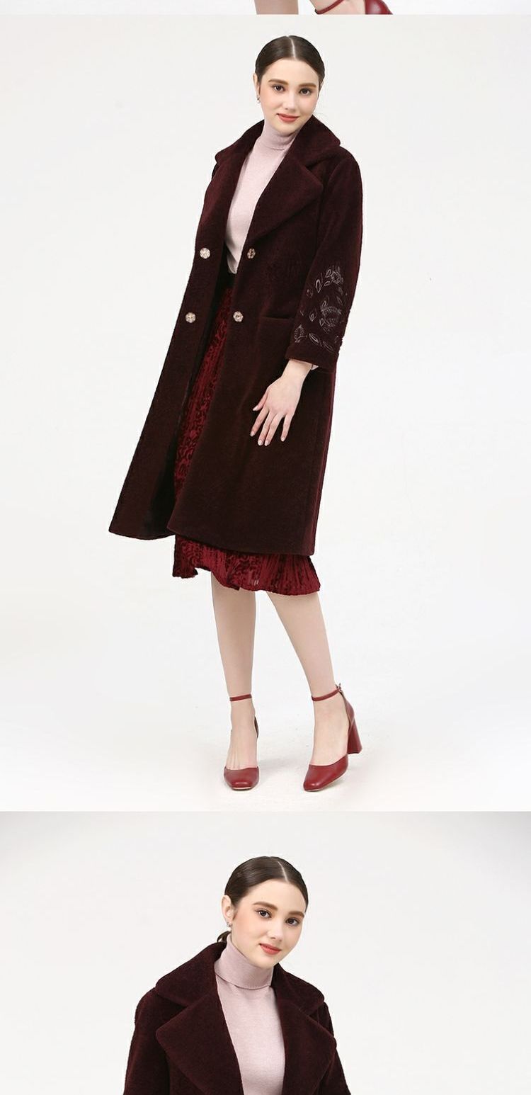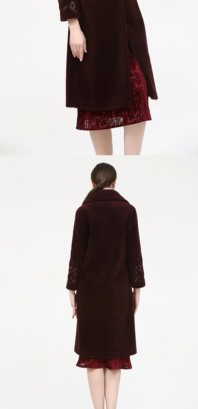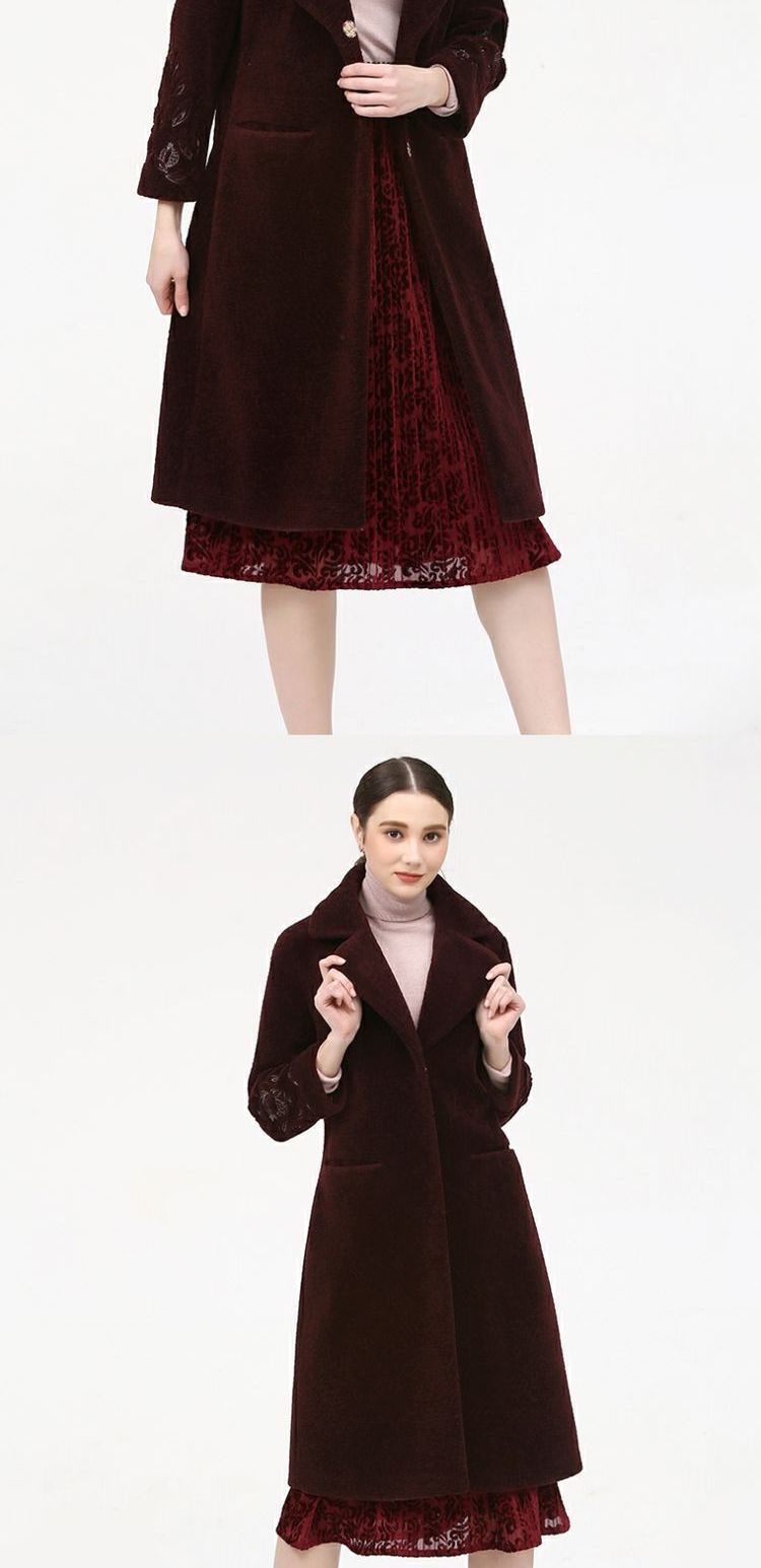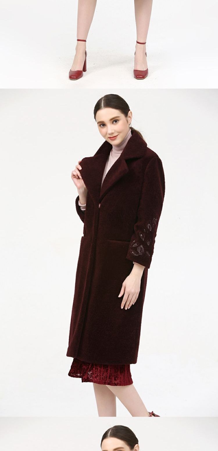 佐尔美新品冬季女装纯色百搭修身显瘦羊剪绒羊毛大衣外套E74YJ41