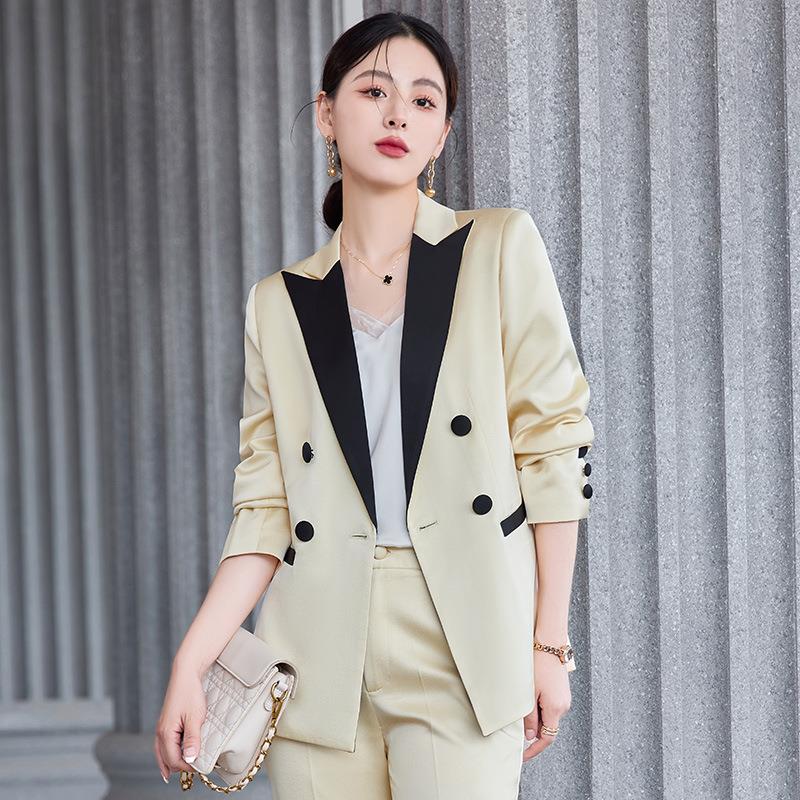 娜璐多 气质通勤西装外套女2023年秋季新款时尚个性商务拼接西装领套装女