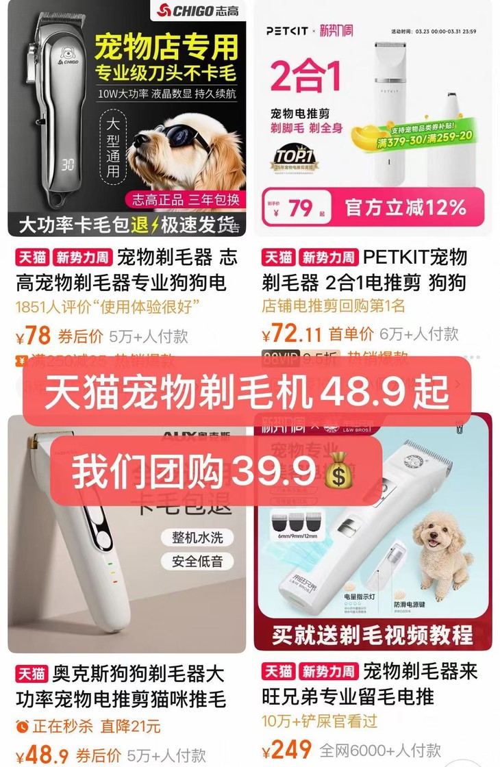 有宠物的家庭越来越多,线下宠物店消费要大几百 天猫宠物推剪也要48-200+💰 我们开团只要39.9💰到手出口美国的品质