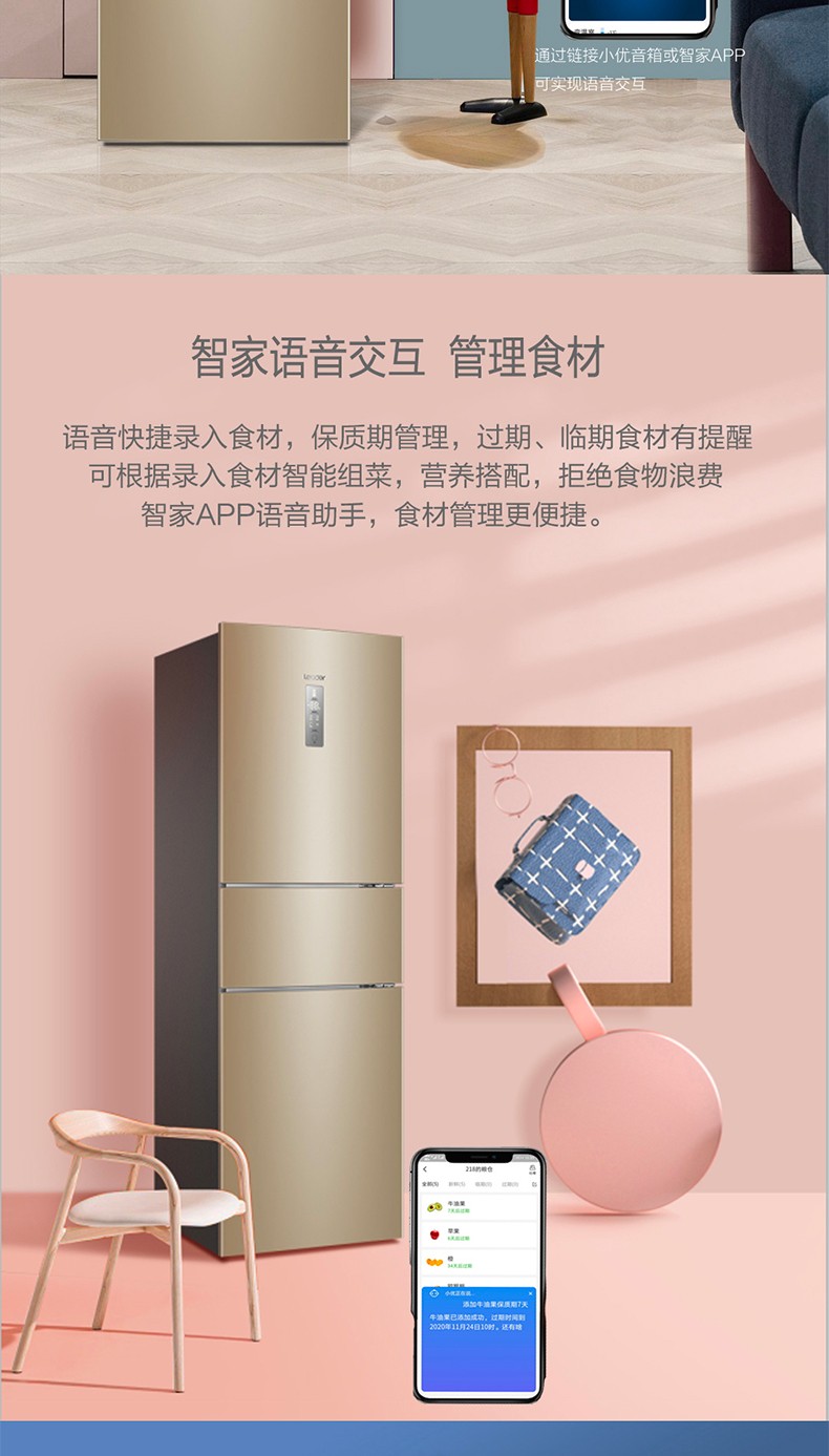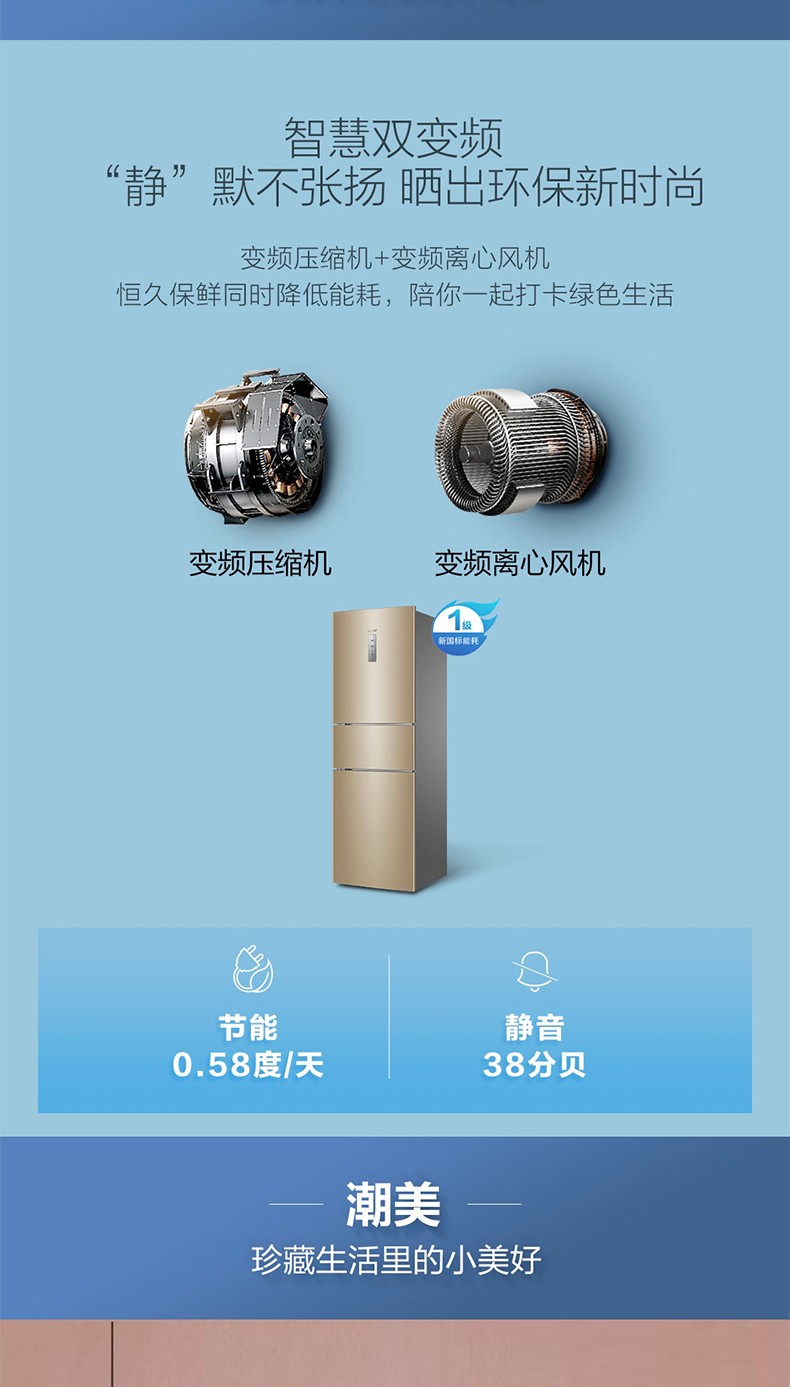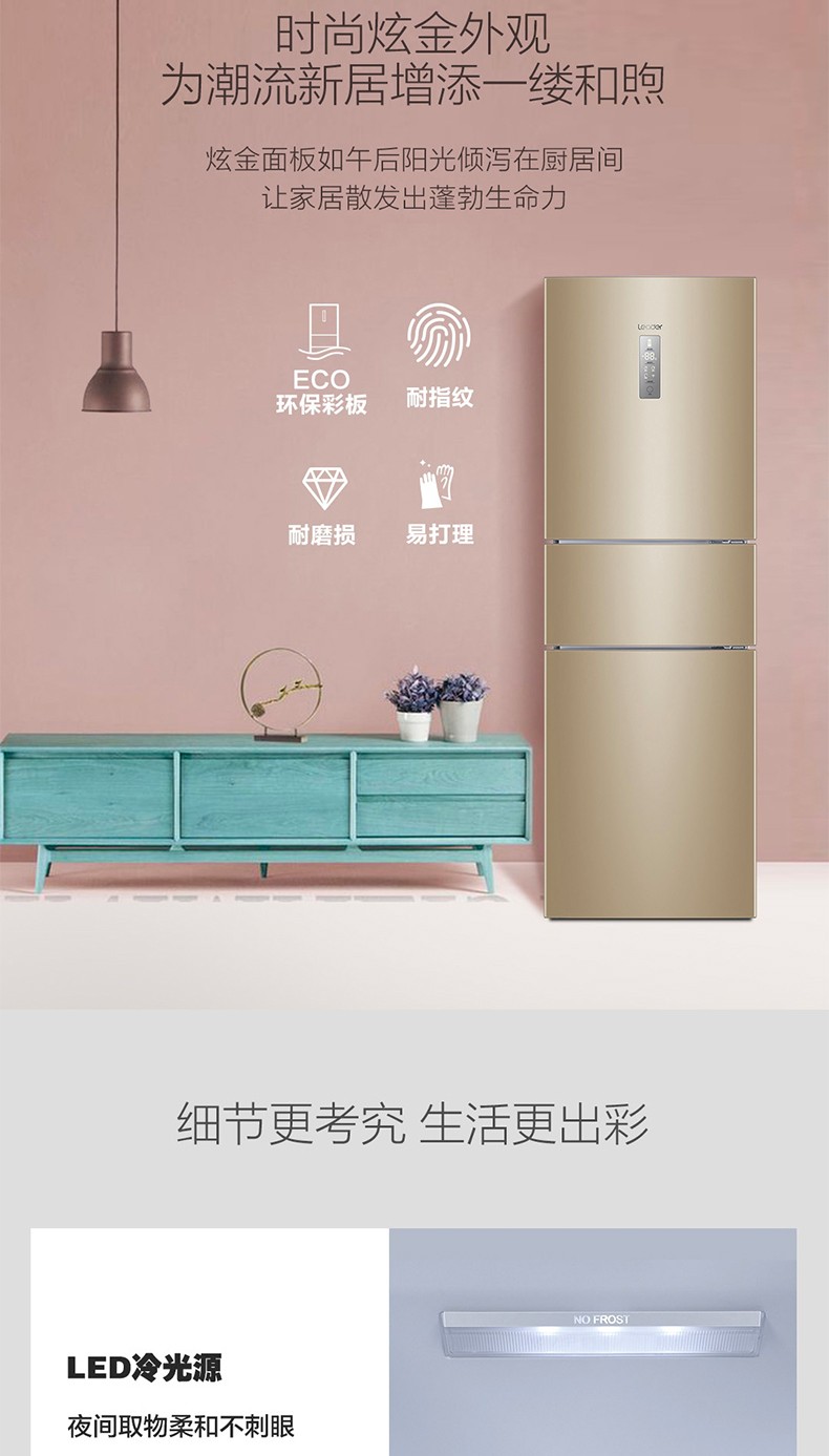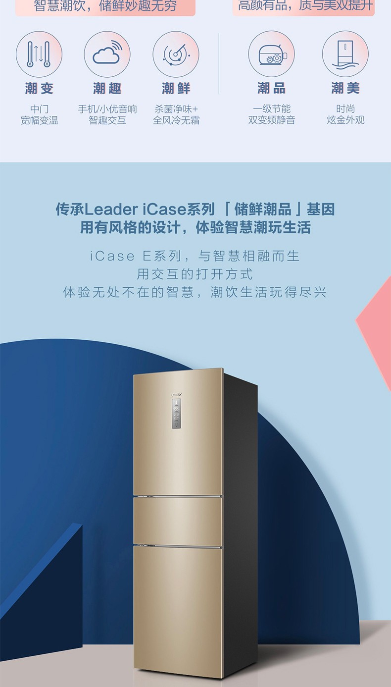 统帅(Leader)海尔出品218L三门冰箱 风冷无霜 家用电冰箱 一级变频节能BCD-218WLDPPU1