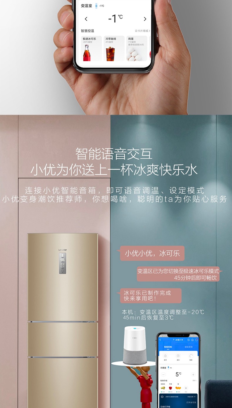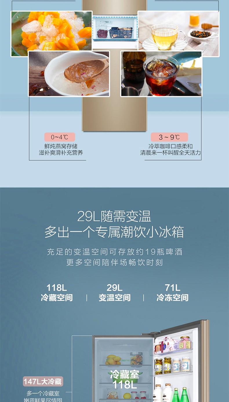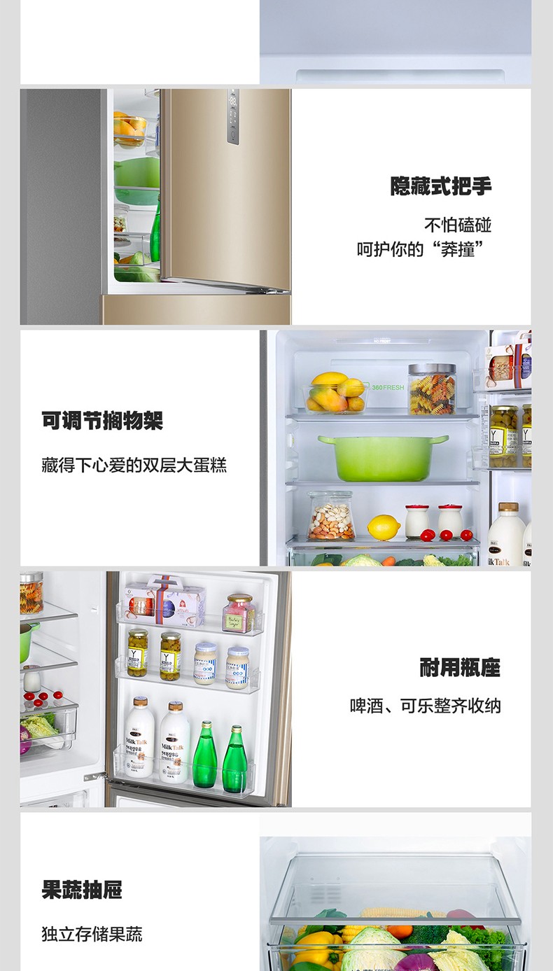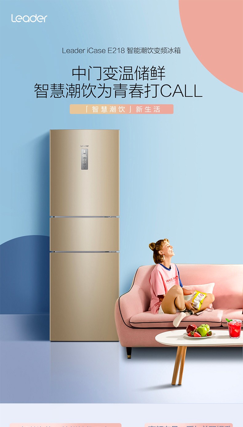 统帅(Leader)海尔出品218L三门冰箱 风冷无霜 家用电冰箱 一级变频节能BCD-218WLDPPU1