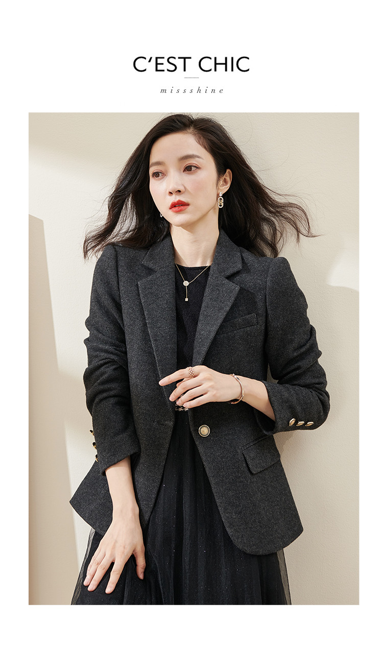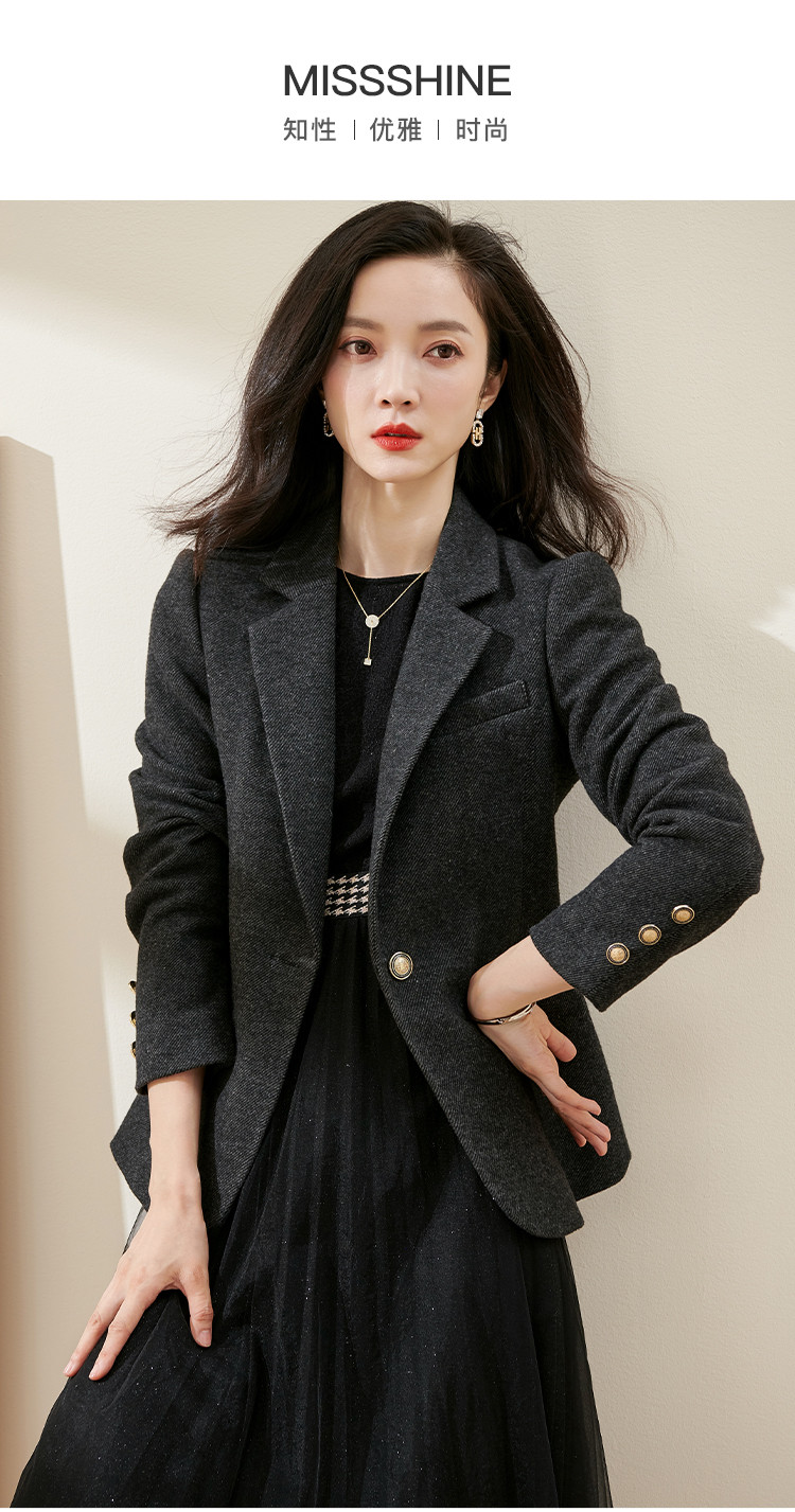 【通勤羊毛西装】米思阳2026春季气质职业简约修身女式西服外套4459