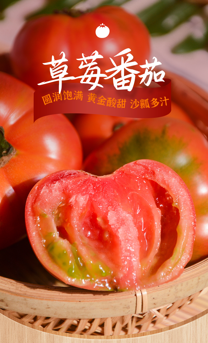 5.6-8分熟的时候皮脆酸甜多汁爽口,能吃酸的朋友一定要尝尝!8分熟以上的草莓番茄比普通番茄味道浓郁