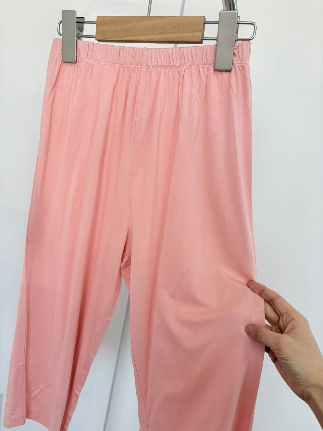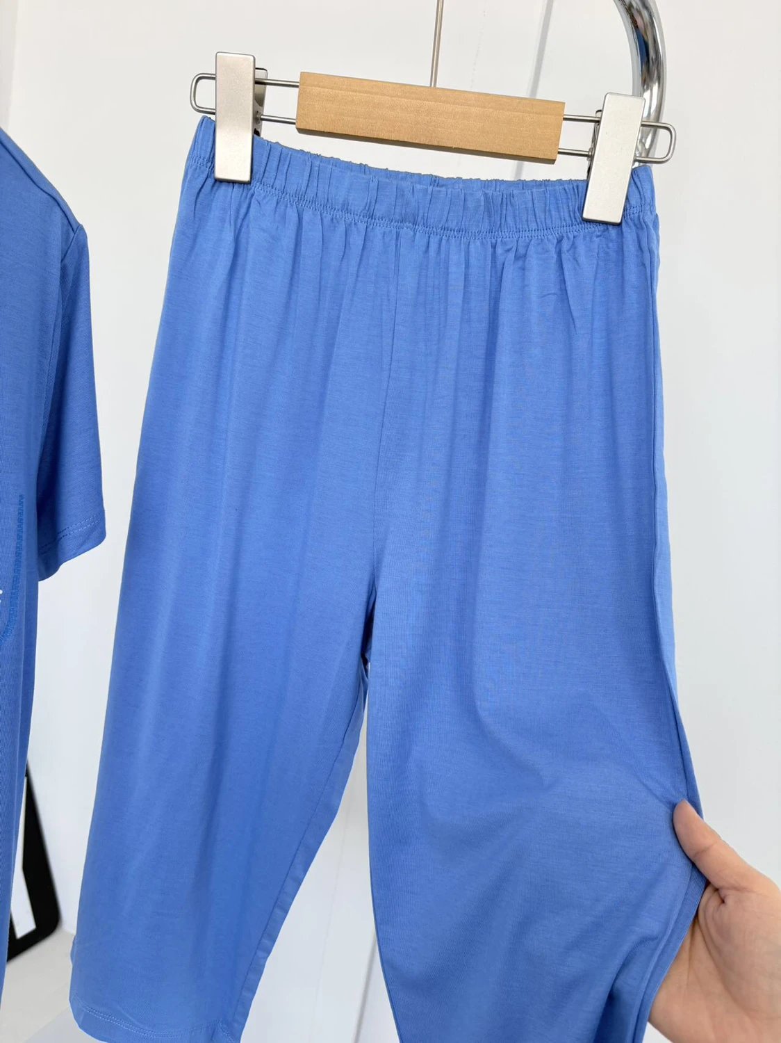 面料手感巨棒,丝丝滑滑,最贴心的是七分裤,宝宝夏天开空调不怕冻到膝盖。凉快又贴心