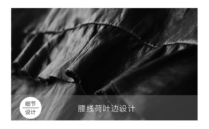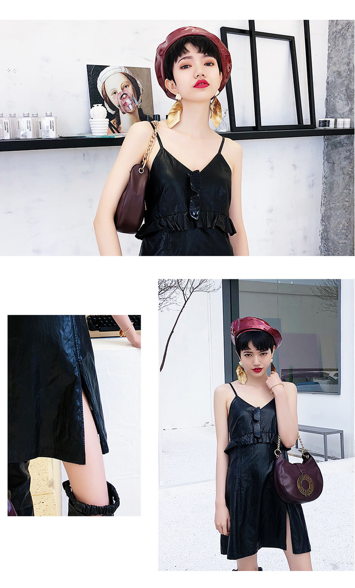 ESE·Y/逸阳夏冷淡风连衣裙女黑色PU吊带抹胸性感开叉时尚荷叶边3036