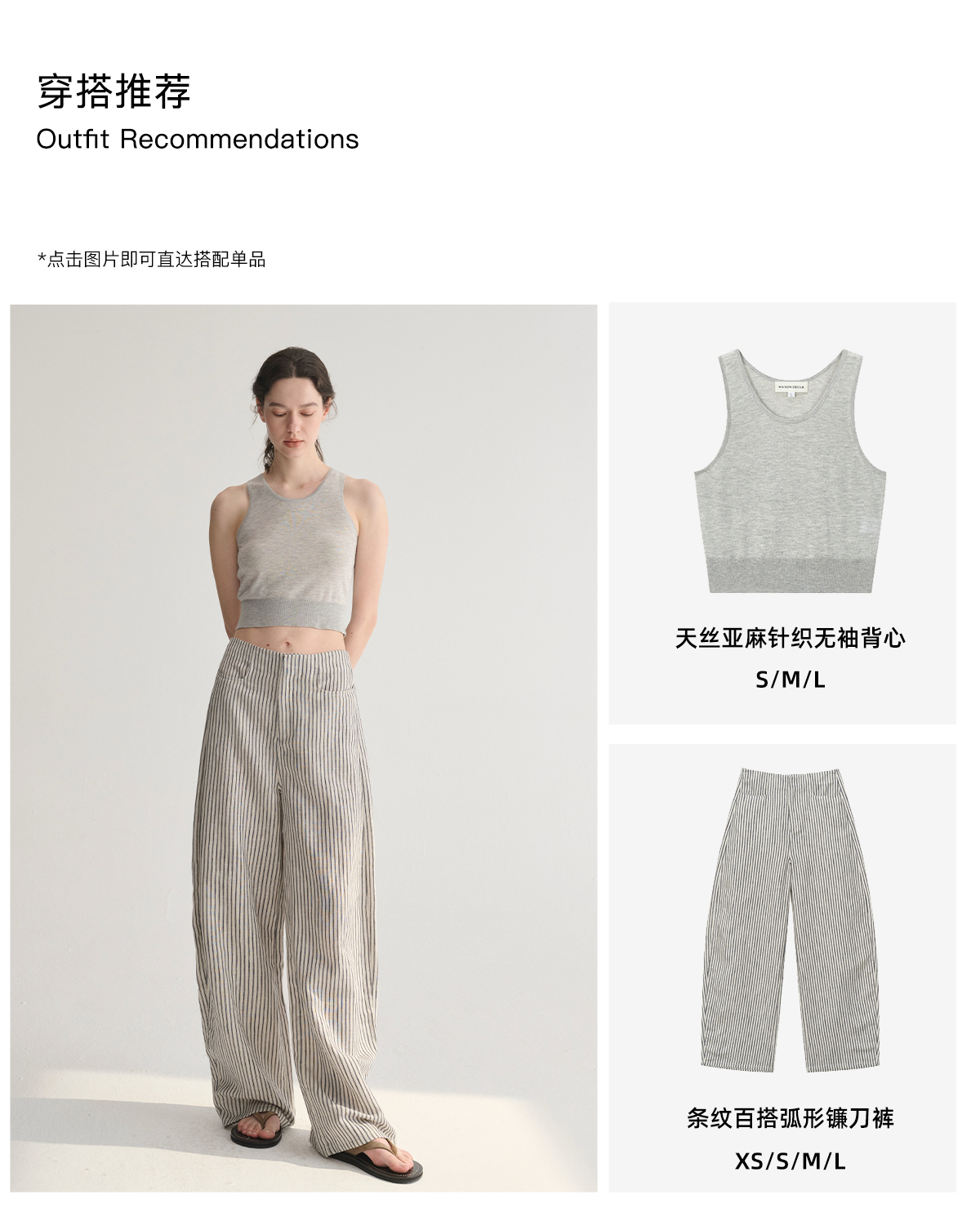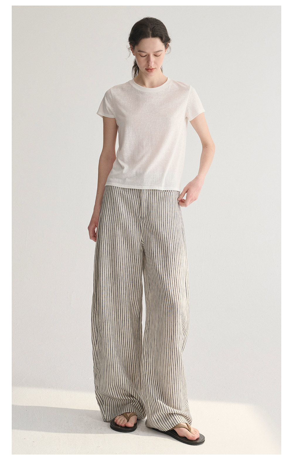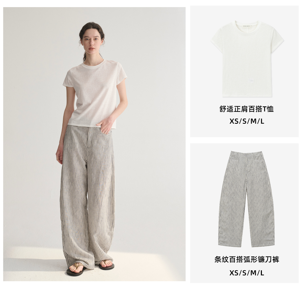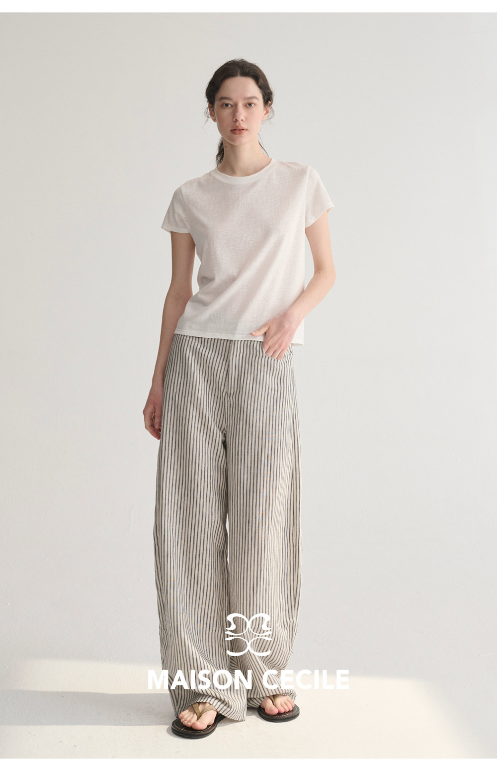 MC 莱赛尔亚麻舒适垂感条纹经典百搭休闲弧形镰刀裤MAISON CECILE