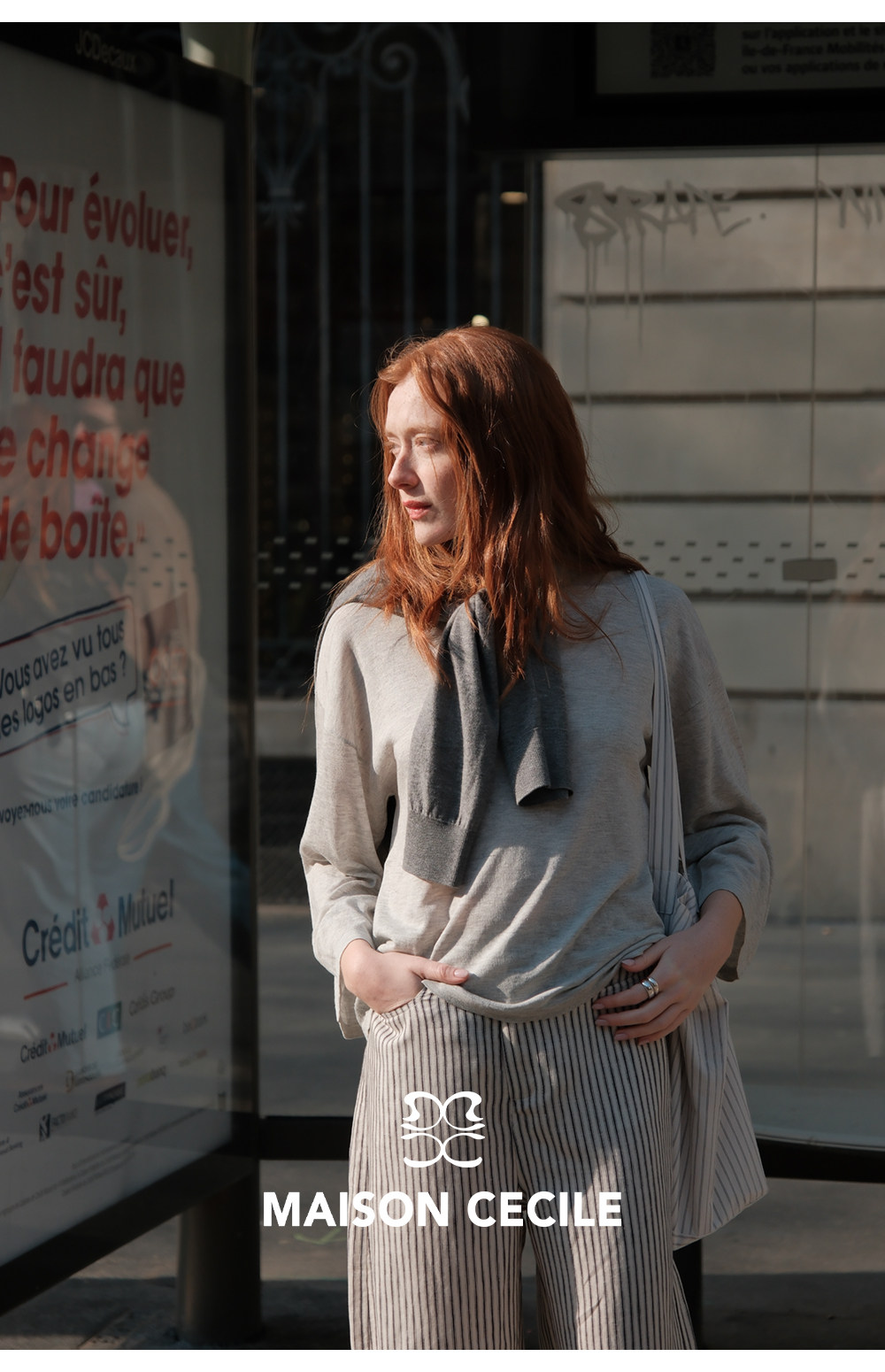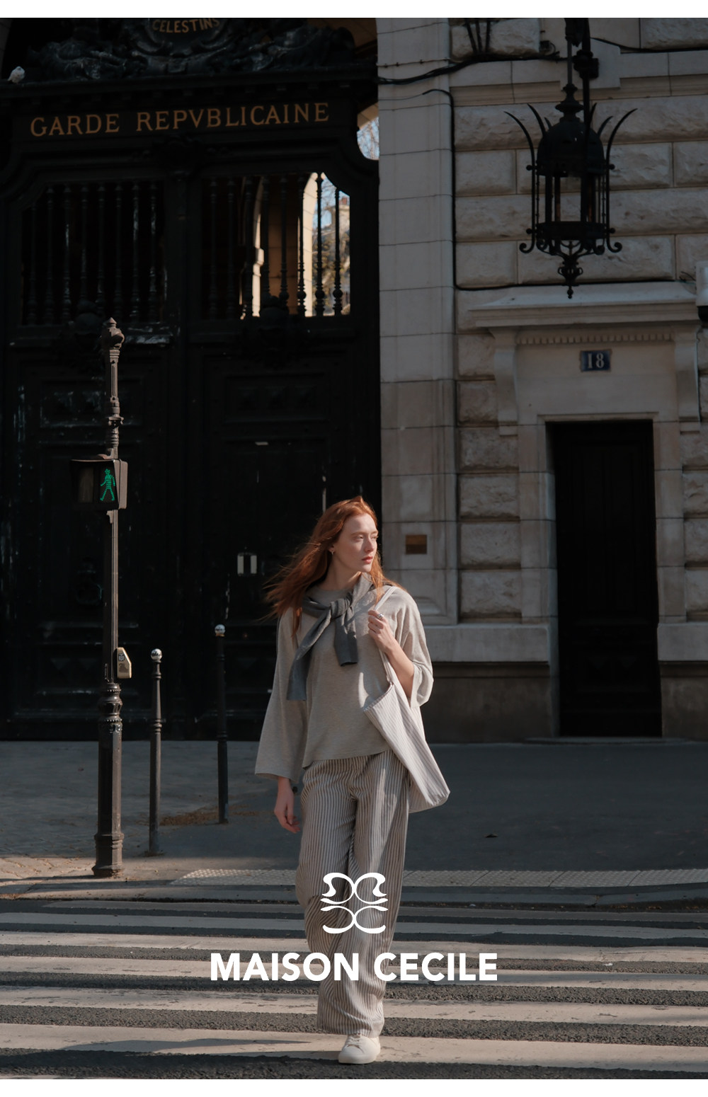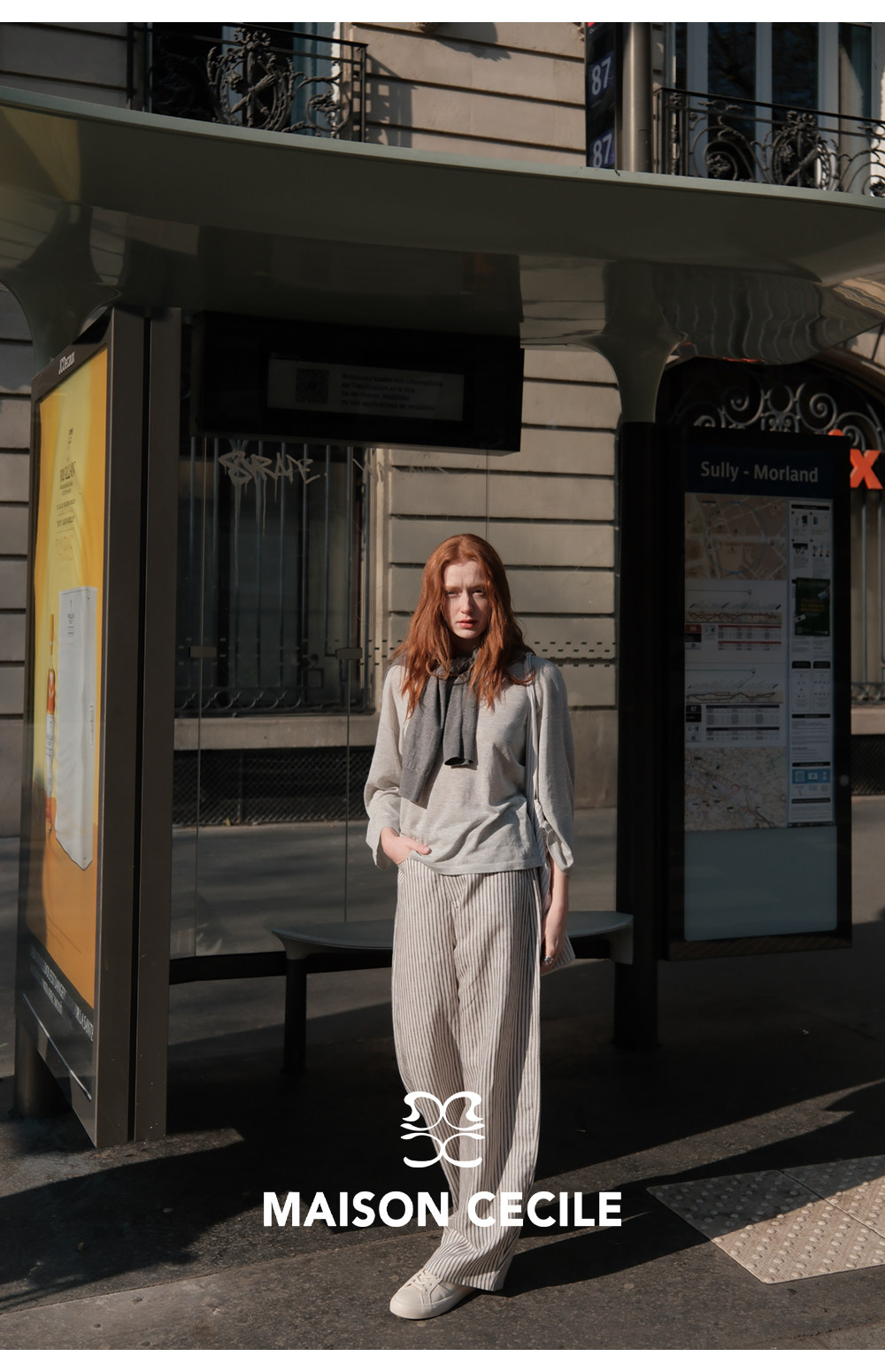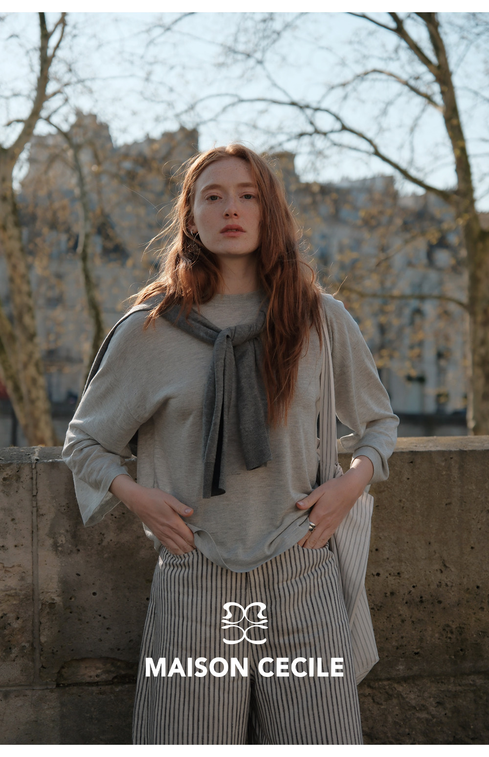 MC 莱赛尔亚麻舒适垂感条纹经典百搭休闲弧形镰刀裤MAISON CECILE