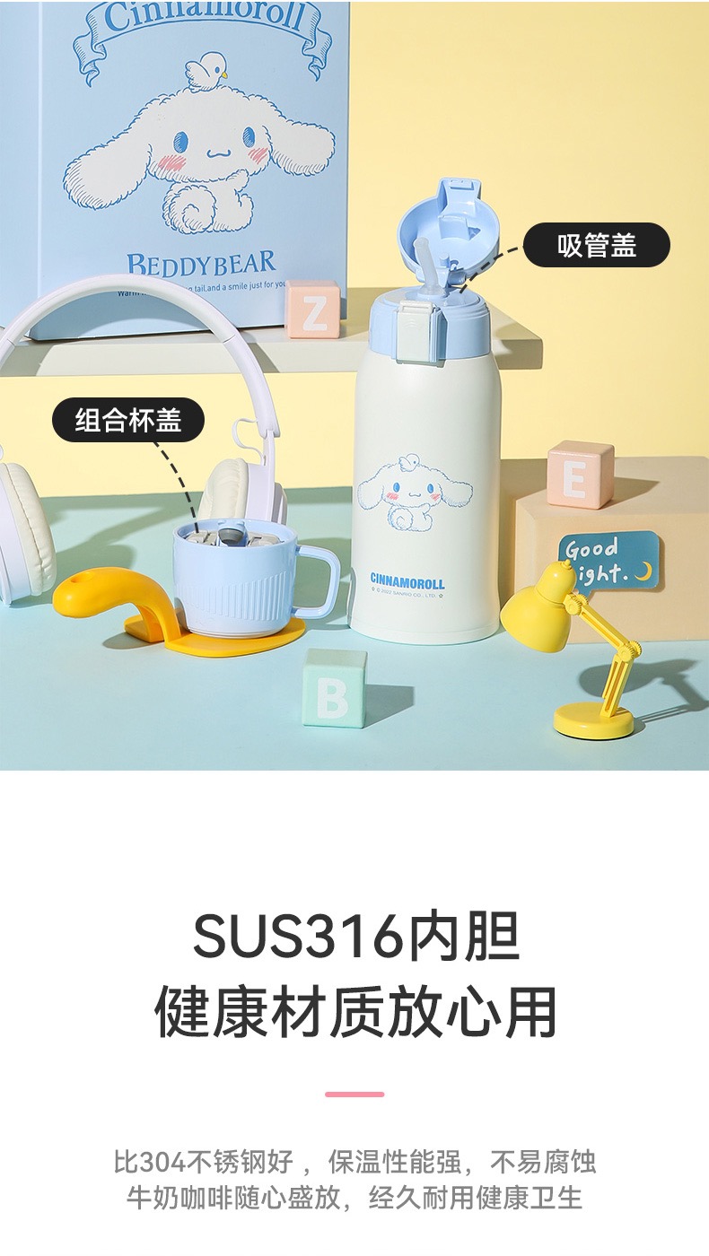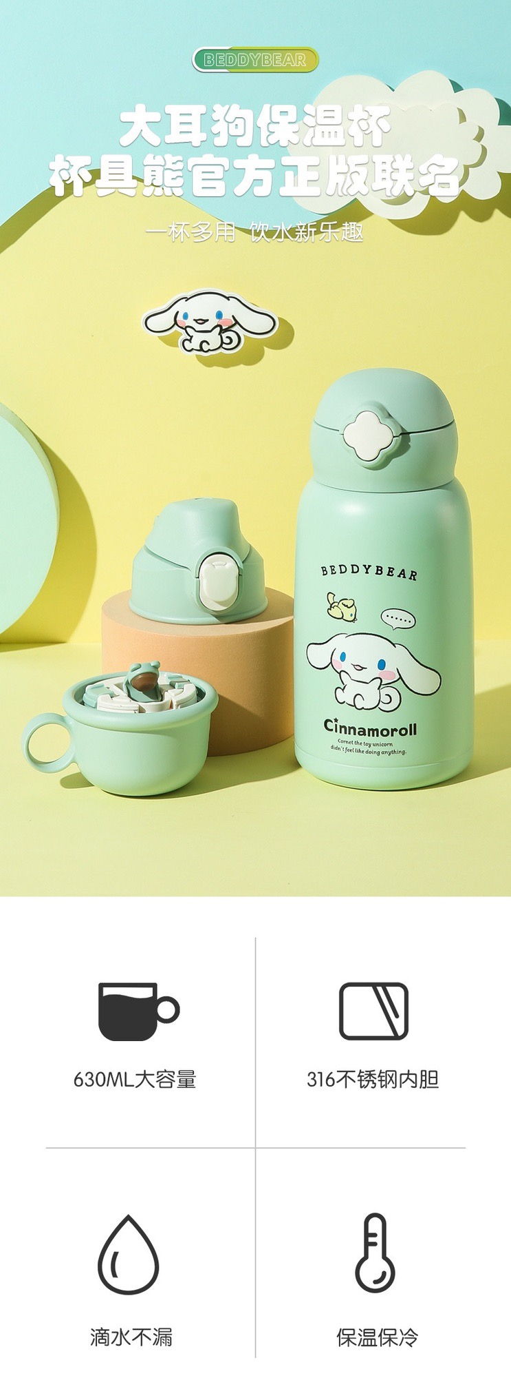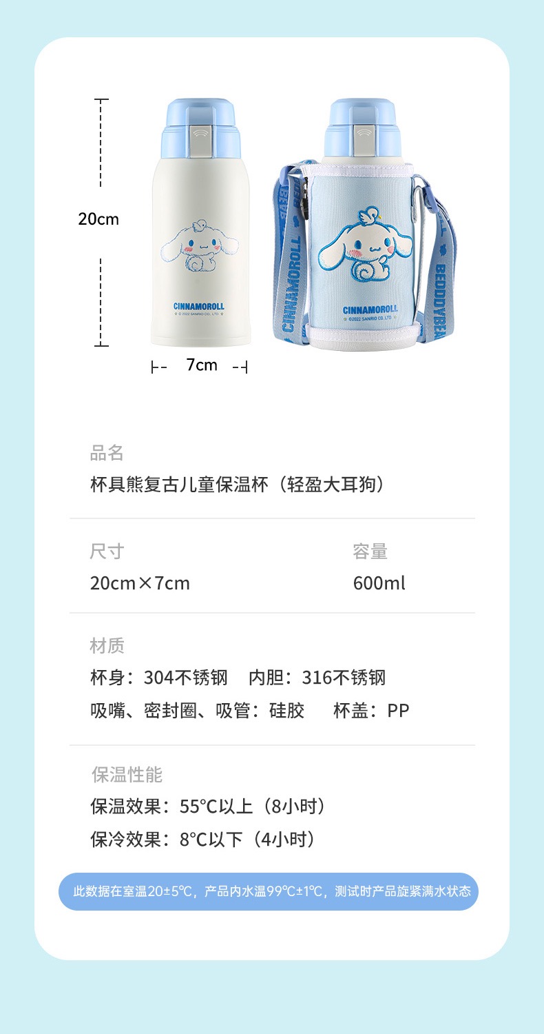 【品牌直发】【杯具熊三丽鸥玉桂狗联名系列】儿童杯复古保温水壶保温嘟嘟桶大肚杯 顽皮大耳狗/轻盈大耳狗/云朵大耳狗/运动水杯大耳狗316不锈钢