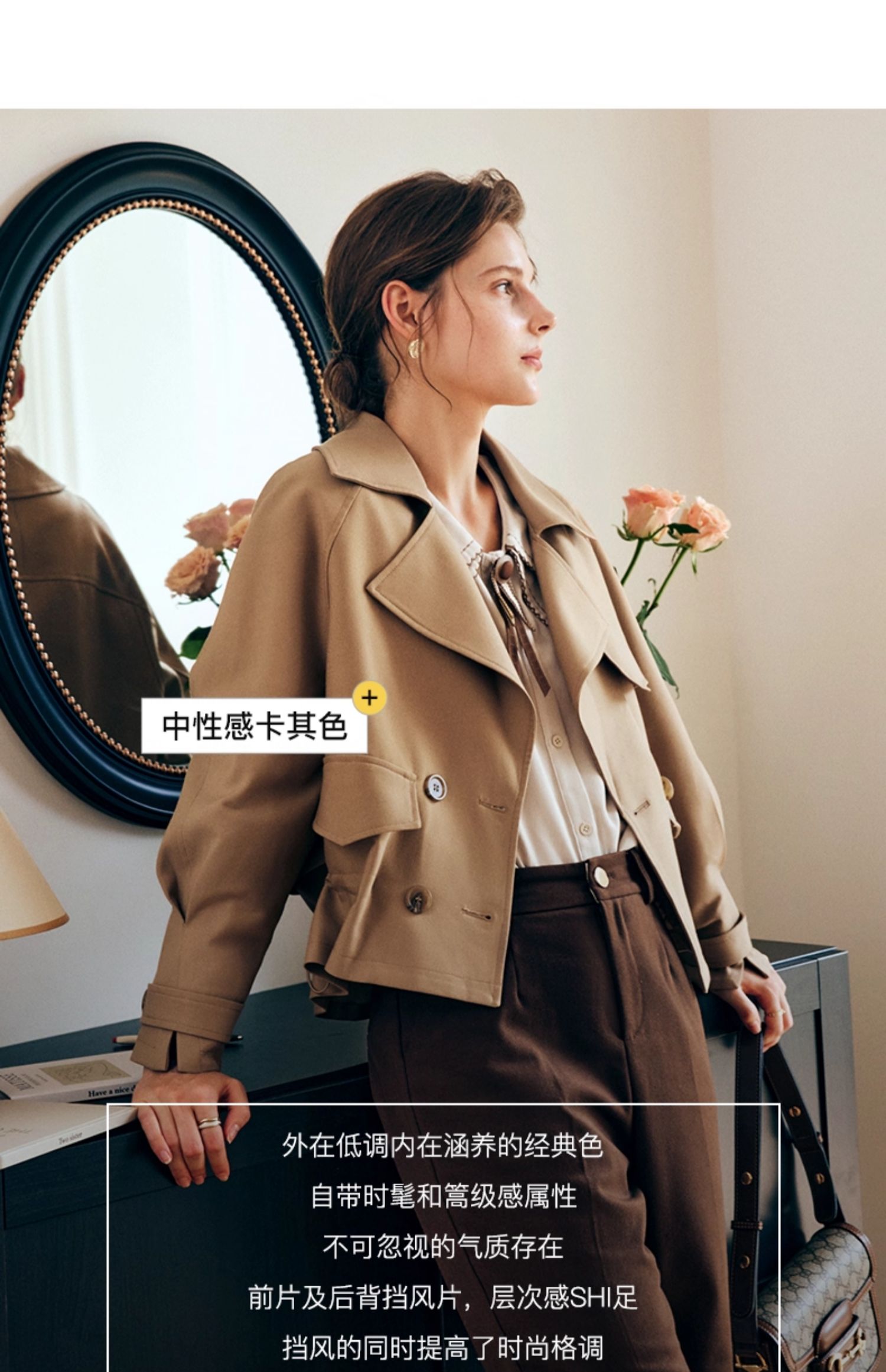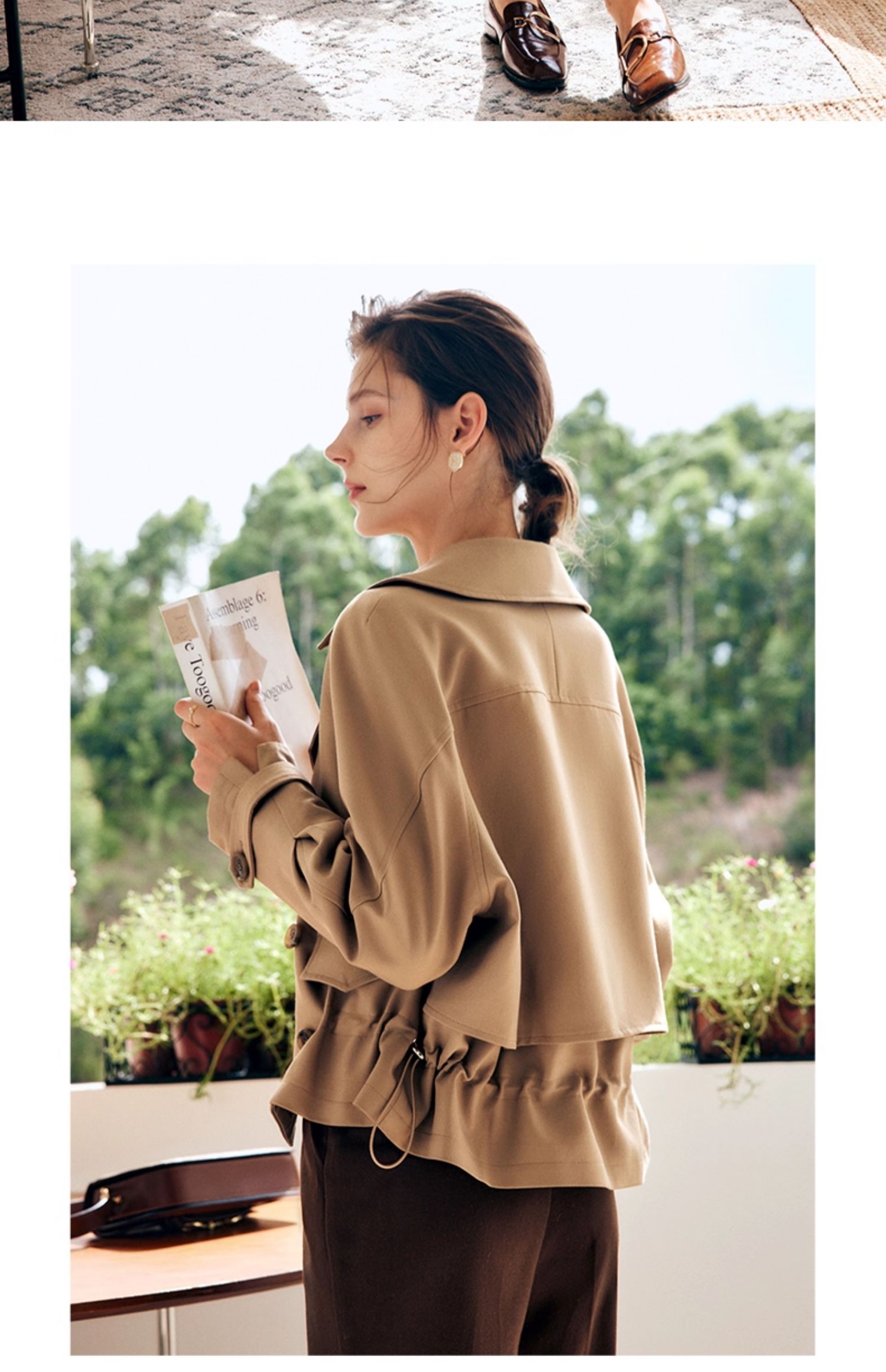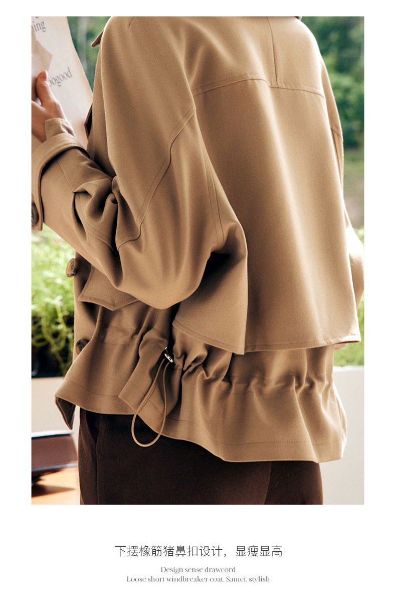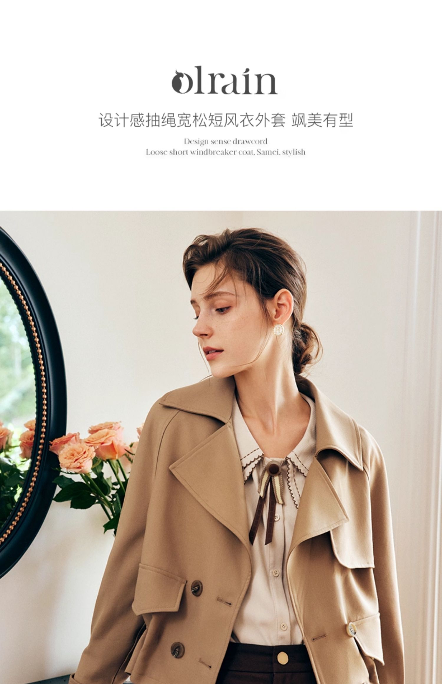 OLrain欧芮儿法式短款风衣外套翻驳领女秋季2025新款抽绳气质薄款