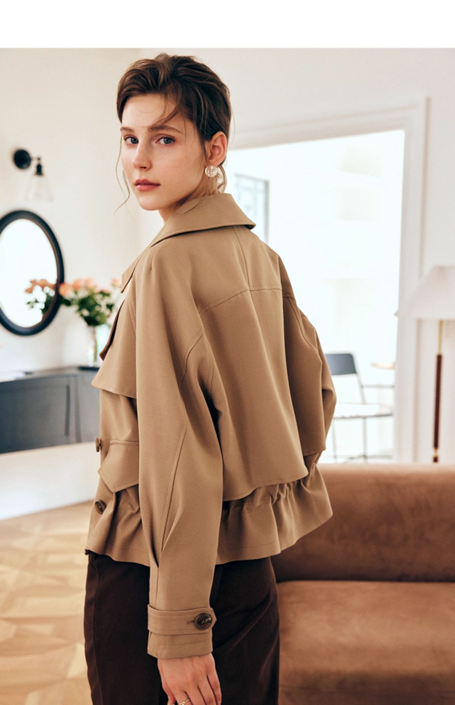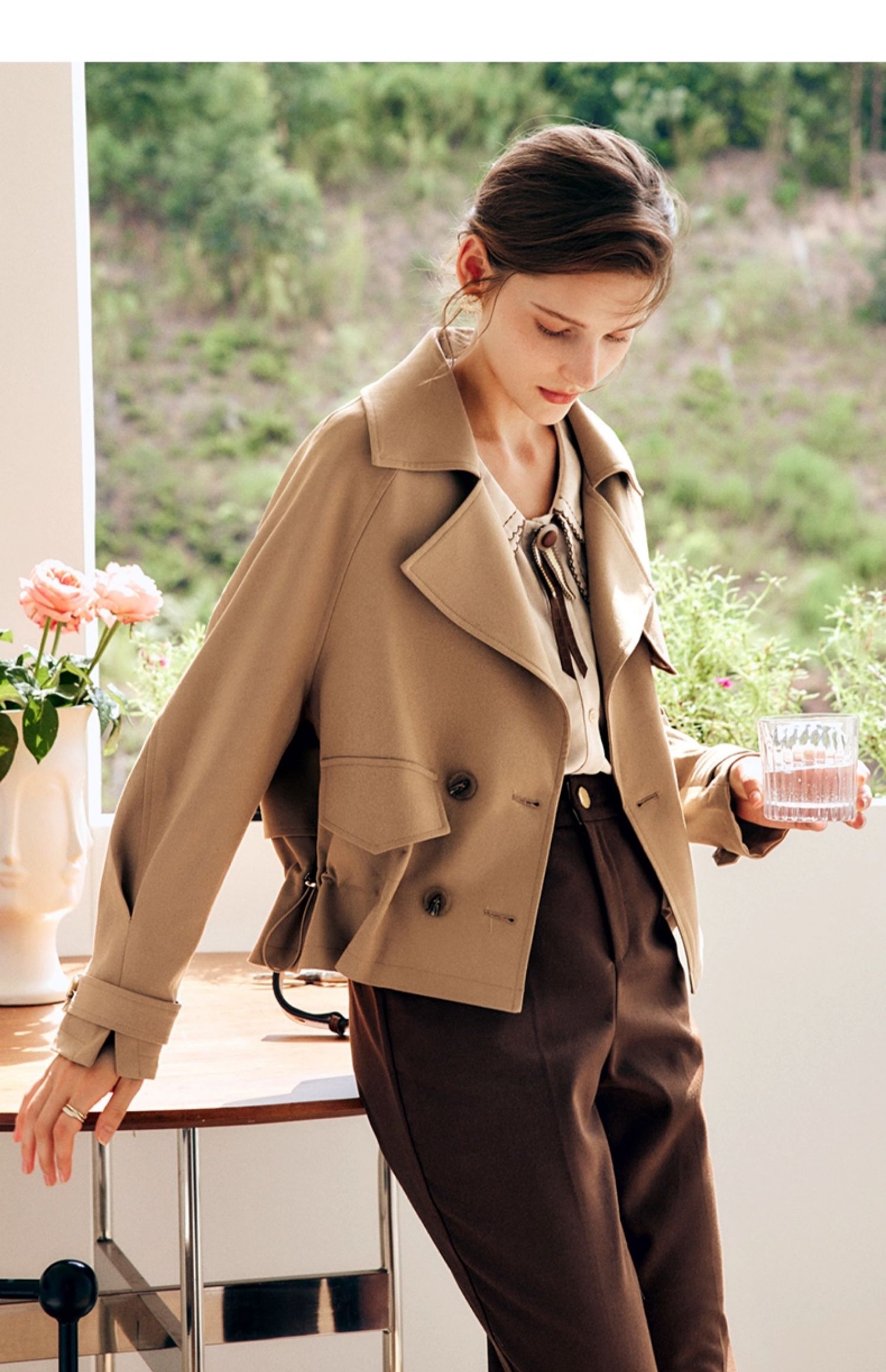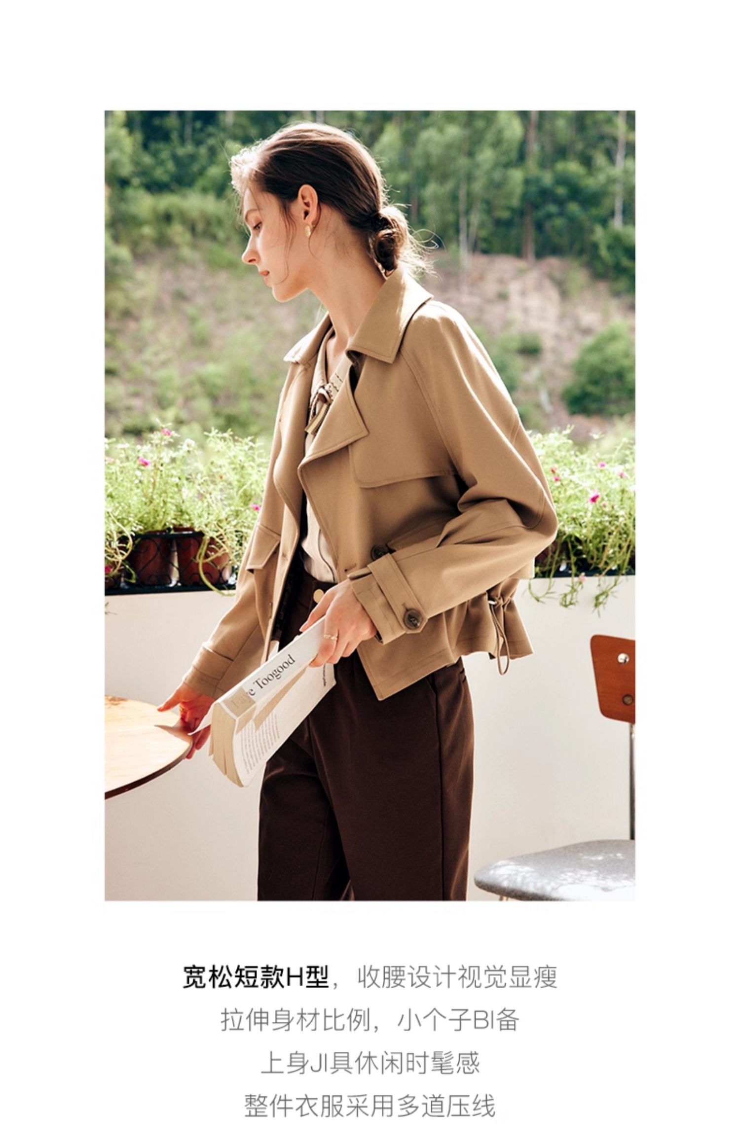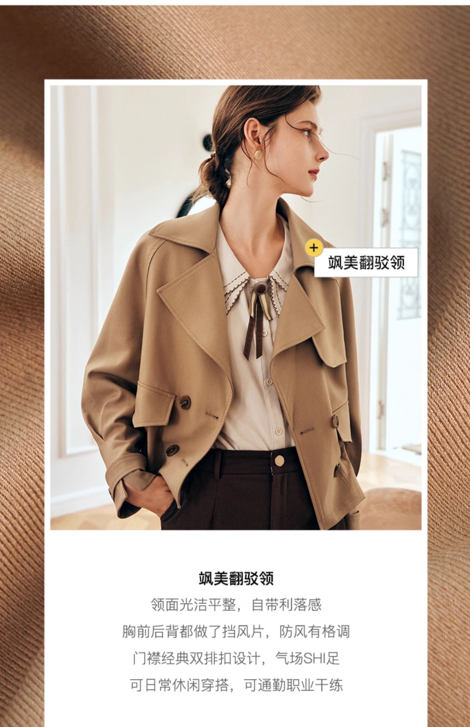 OLrain欧芮儿法式短款风衣外套翻驳领女秋季2025新款抽绳气质薄款