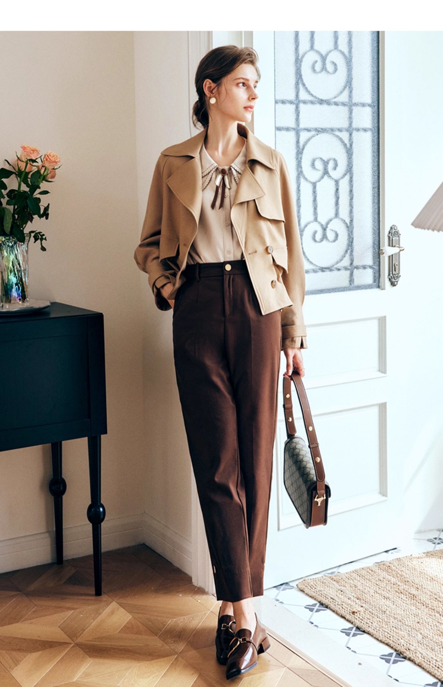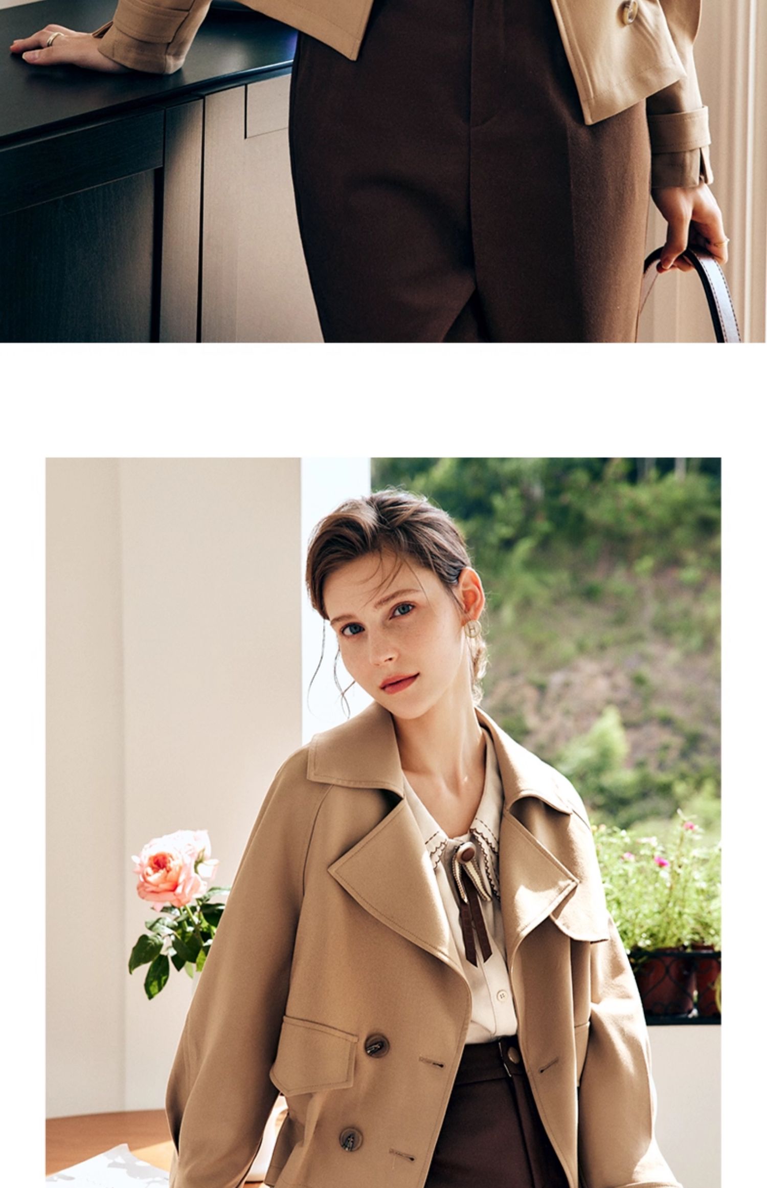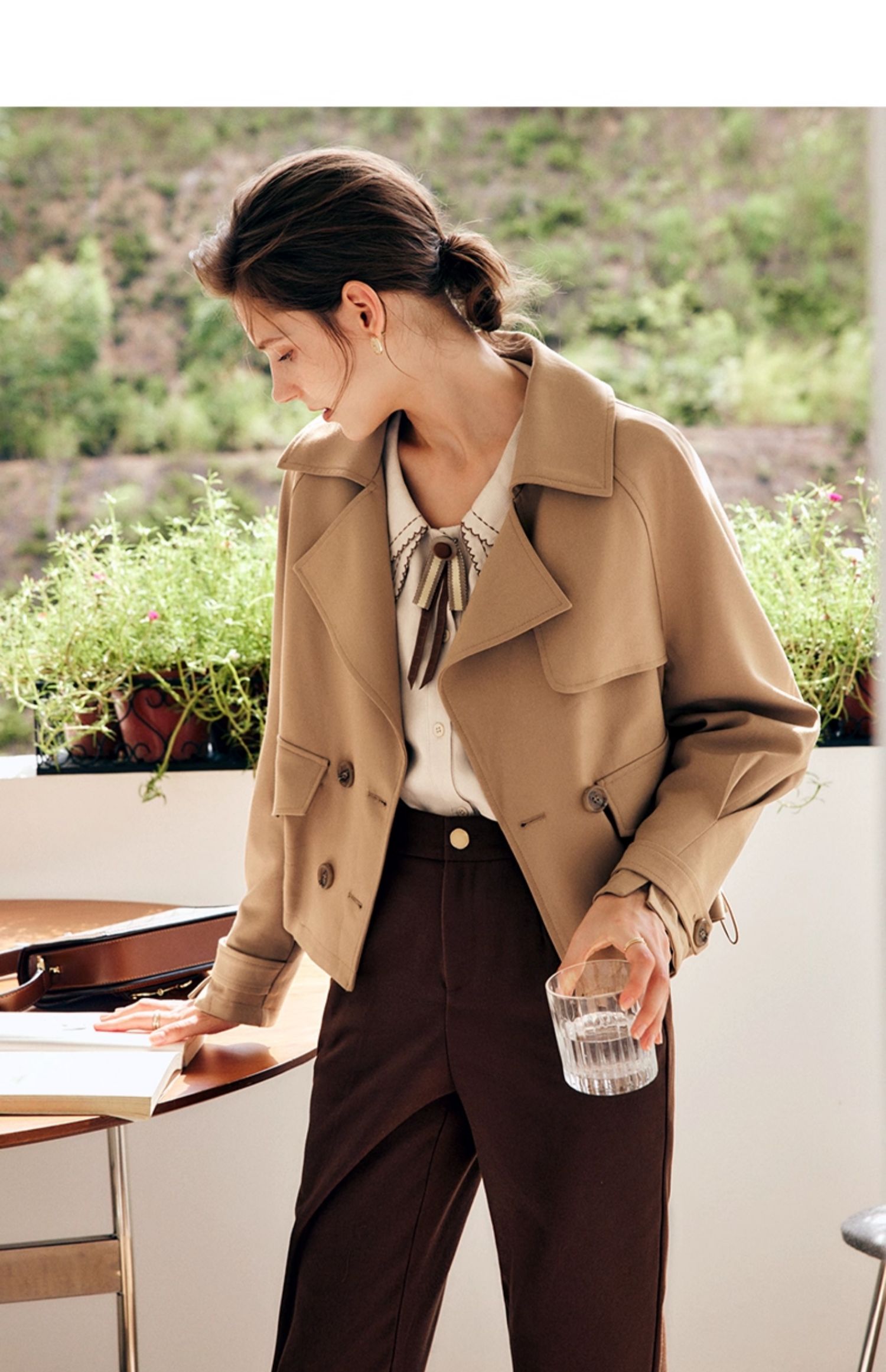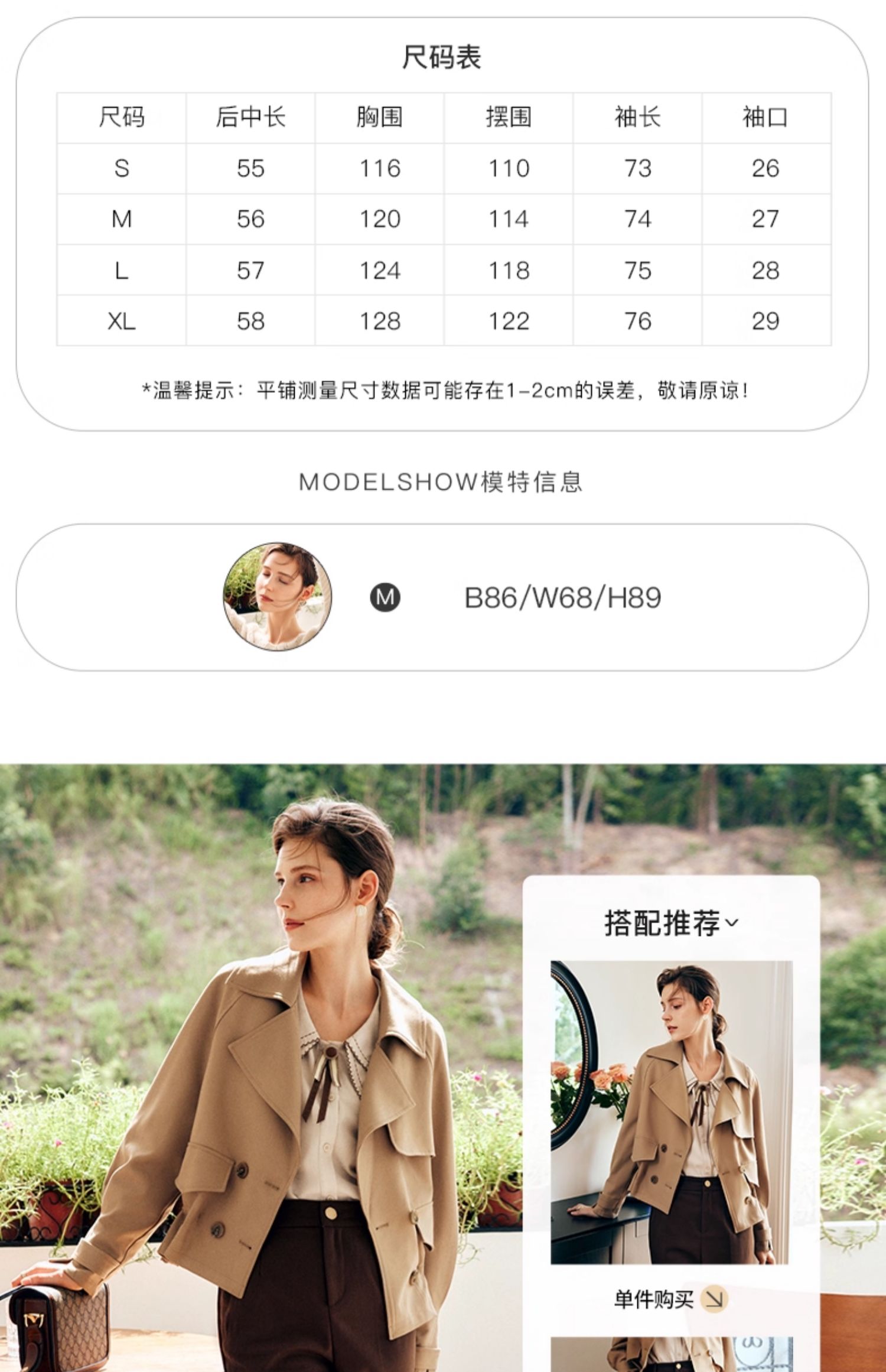 OLrain欧芮儿法式短款风衣外套翻驳领女秋季2025新款抽绳气质薄款