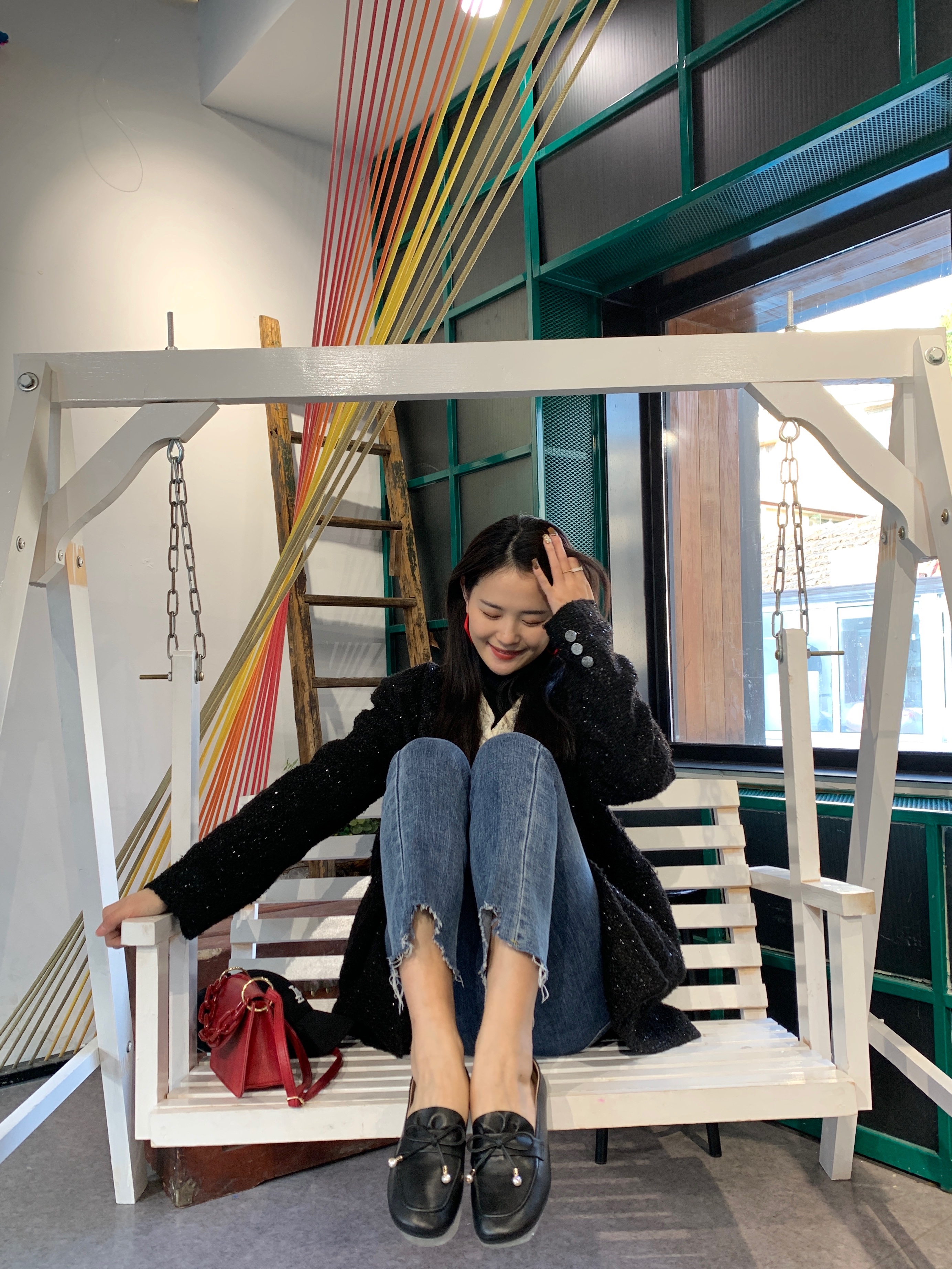 西村名物2021秋季新款真皮英伦风乐福鞋套脚平底软底单鞋女T21CM34071