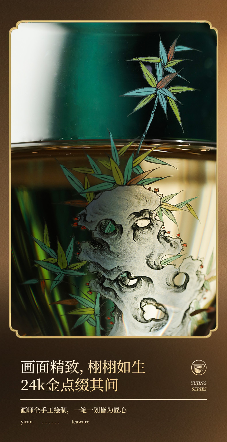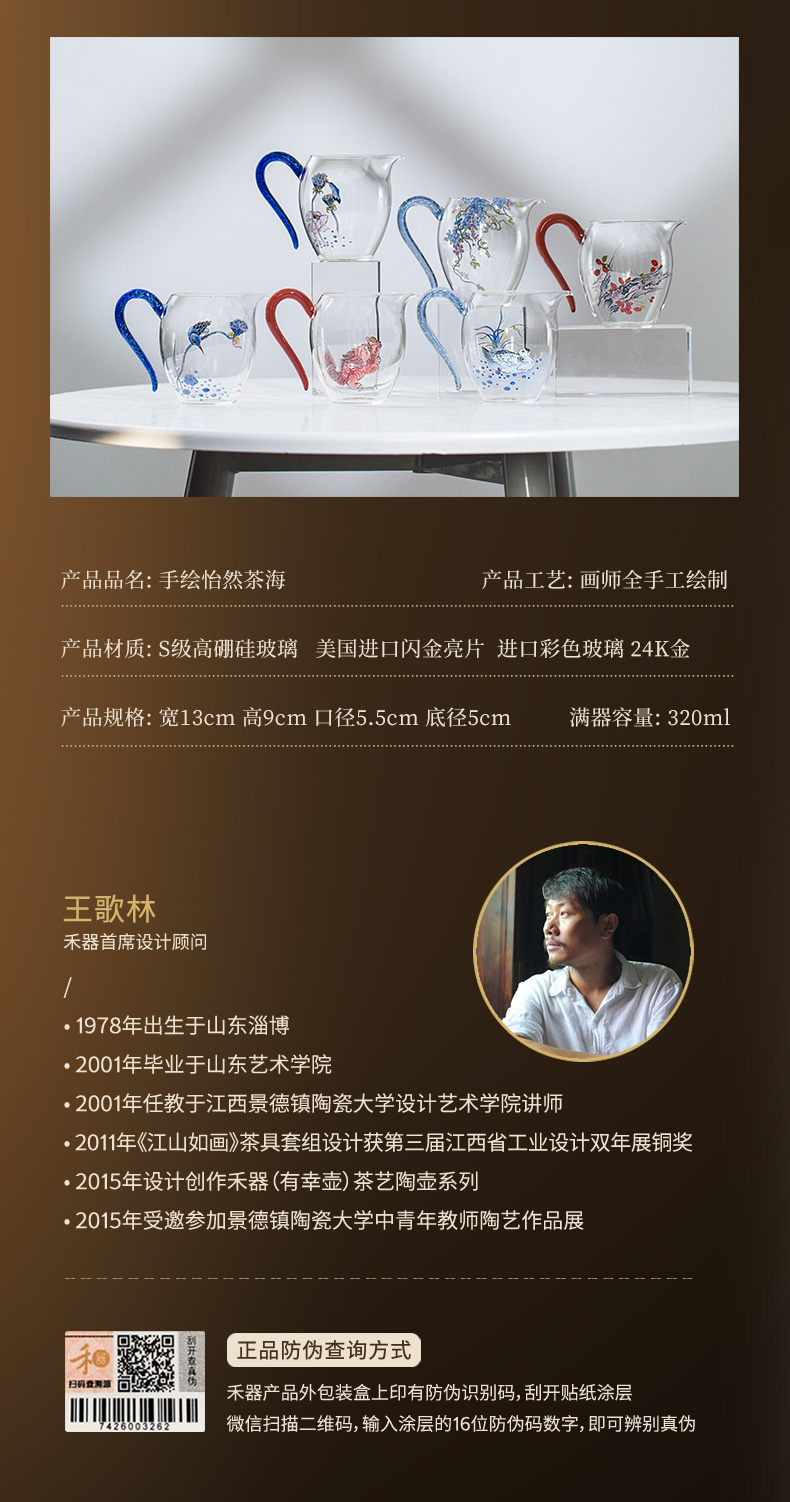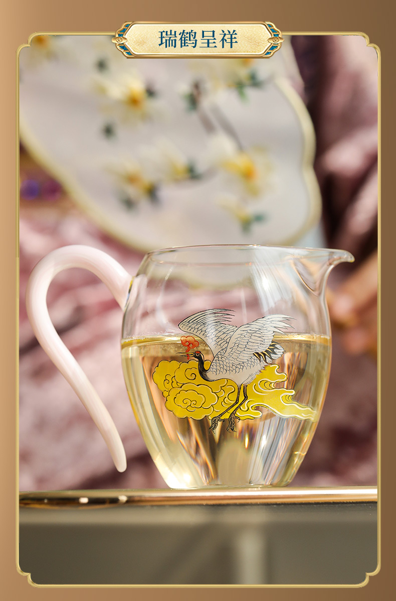 禾器御景·手绘怡然茶海 耐热高硼硅玻璃公杯茶室送礼高颜值茶具【手绘,每款图案会有差别】