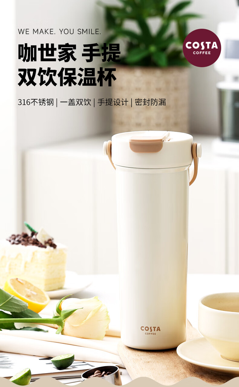 【分仓直发包邮】Costa咖世家手提双饮保温杯—白色COS-2529-600