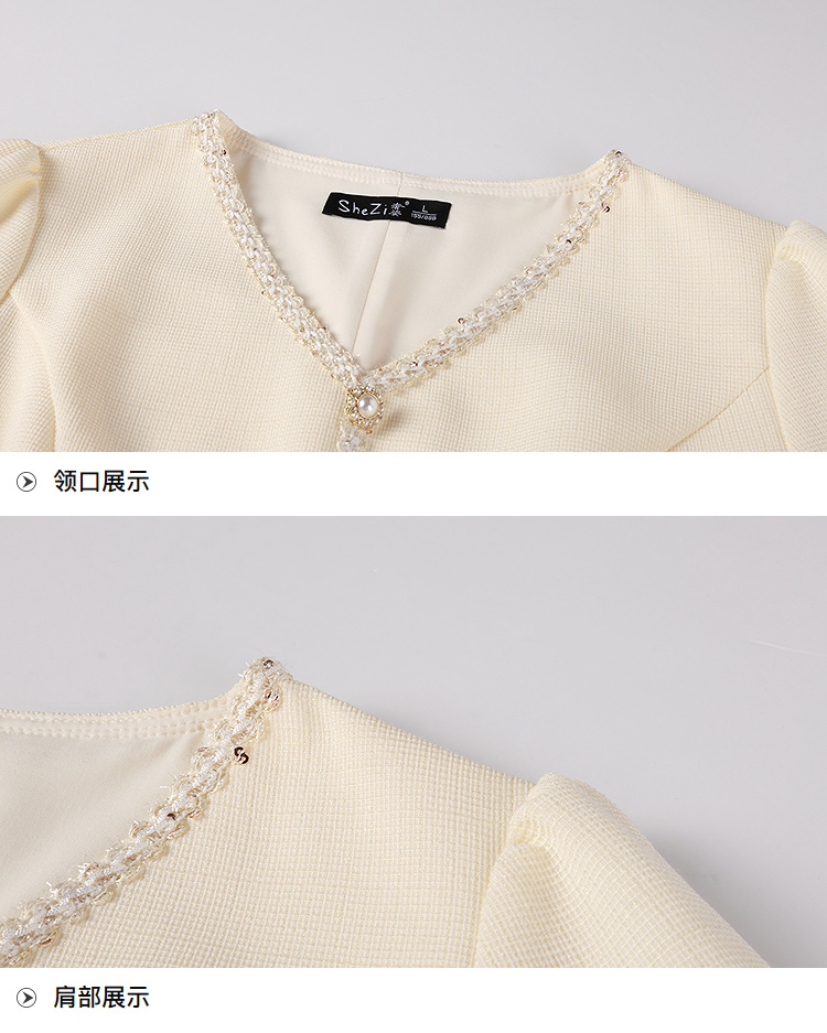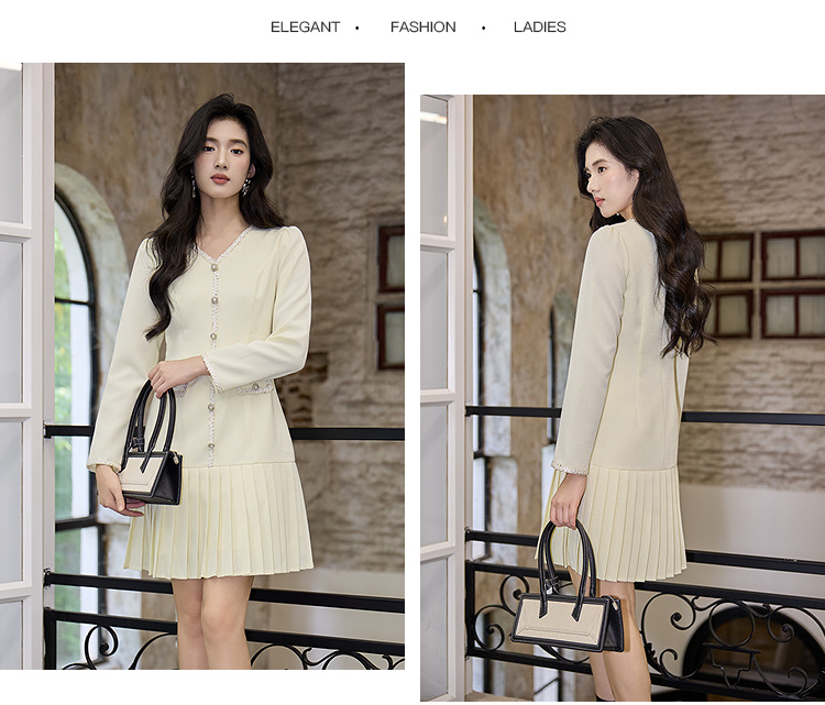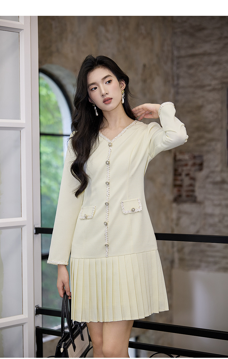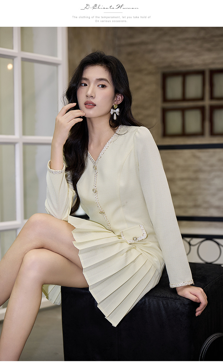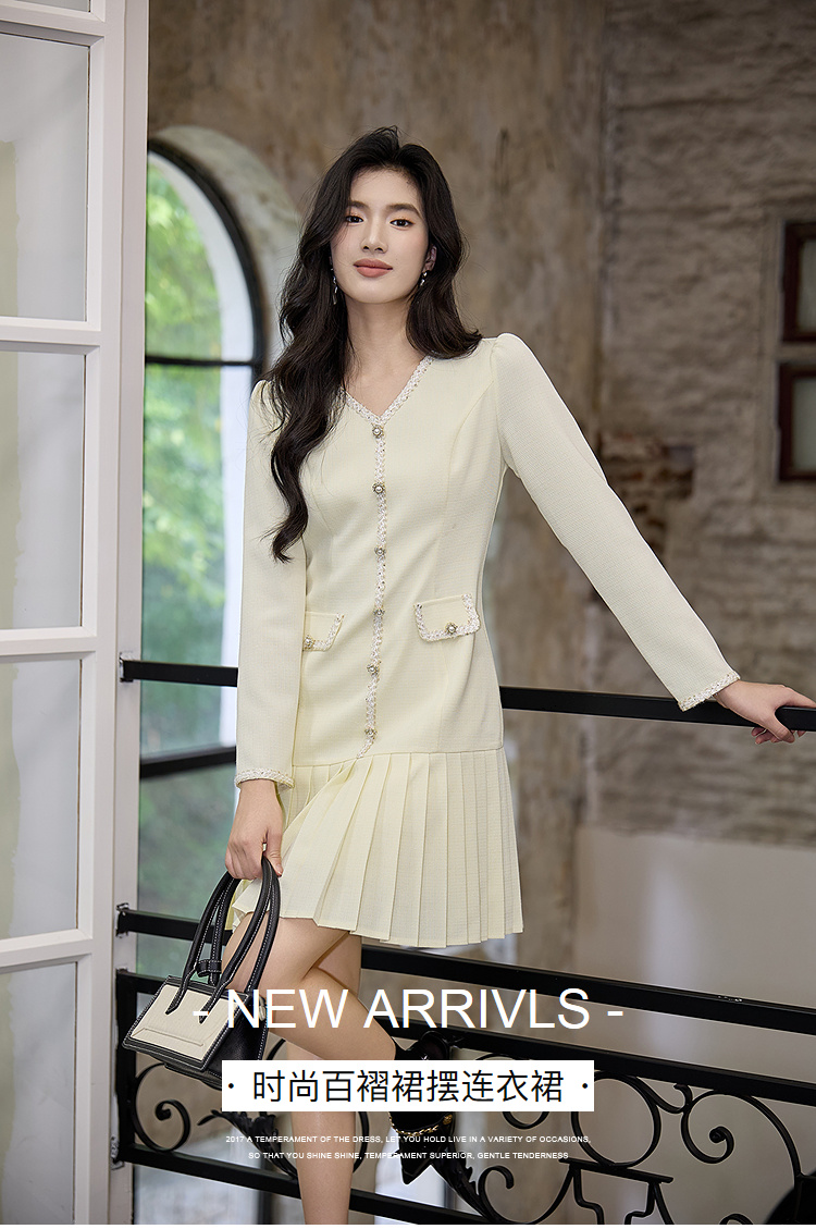 奢姿大码女装2025秋季胖妹妹时尚减龄百褶裙摆设计气质V领连衣裙9953853652
