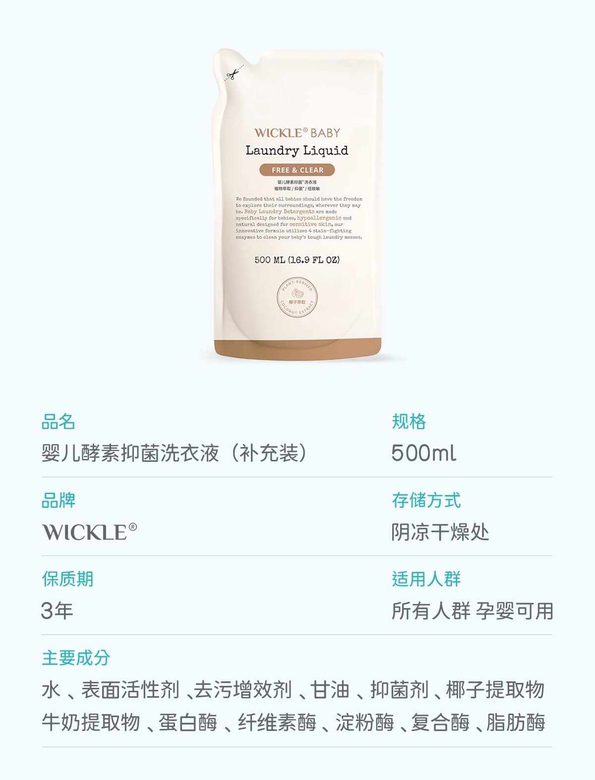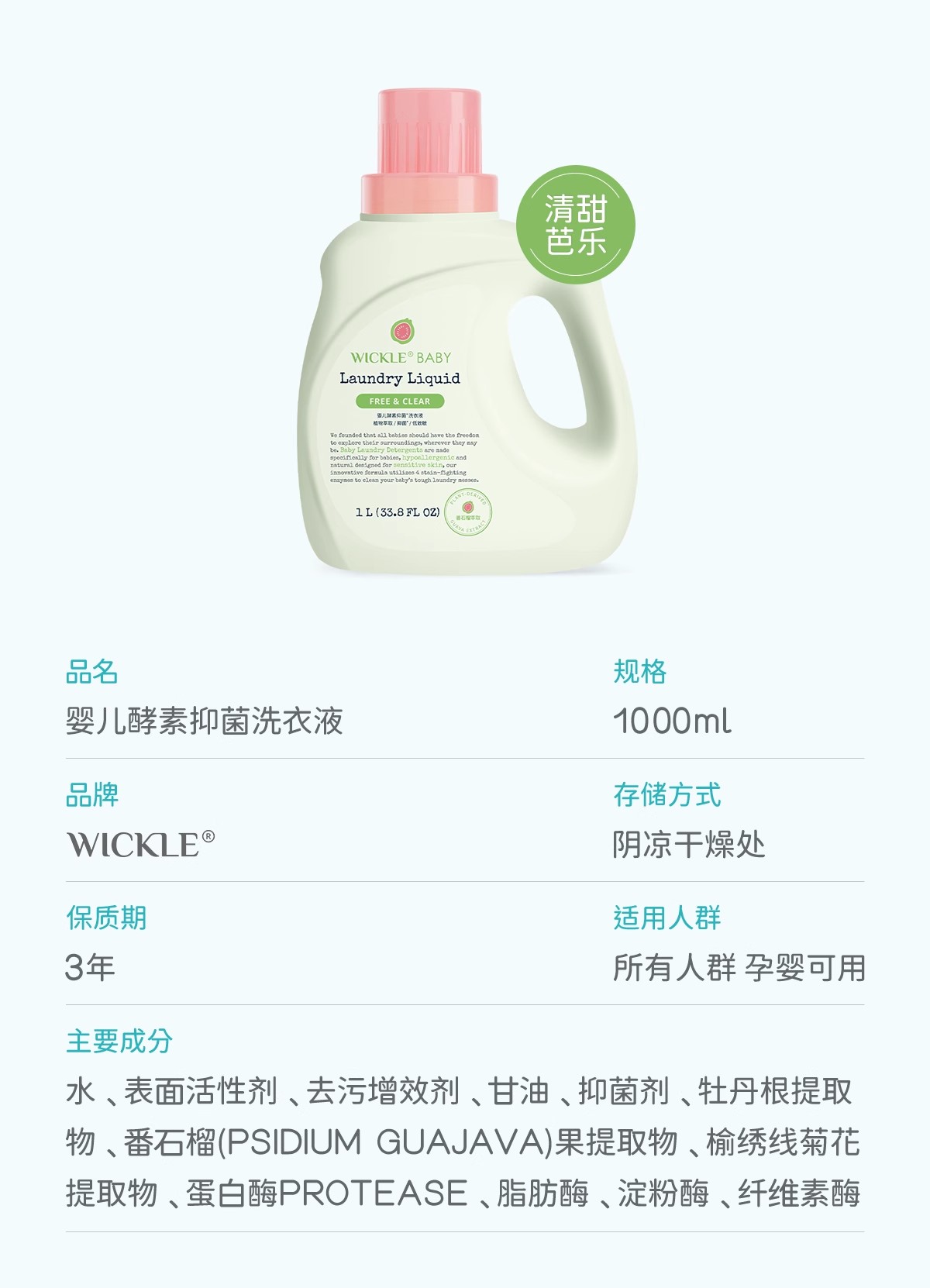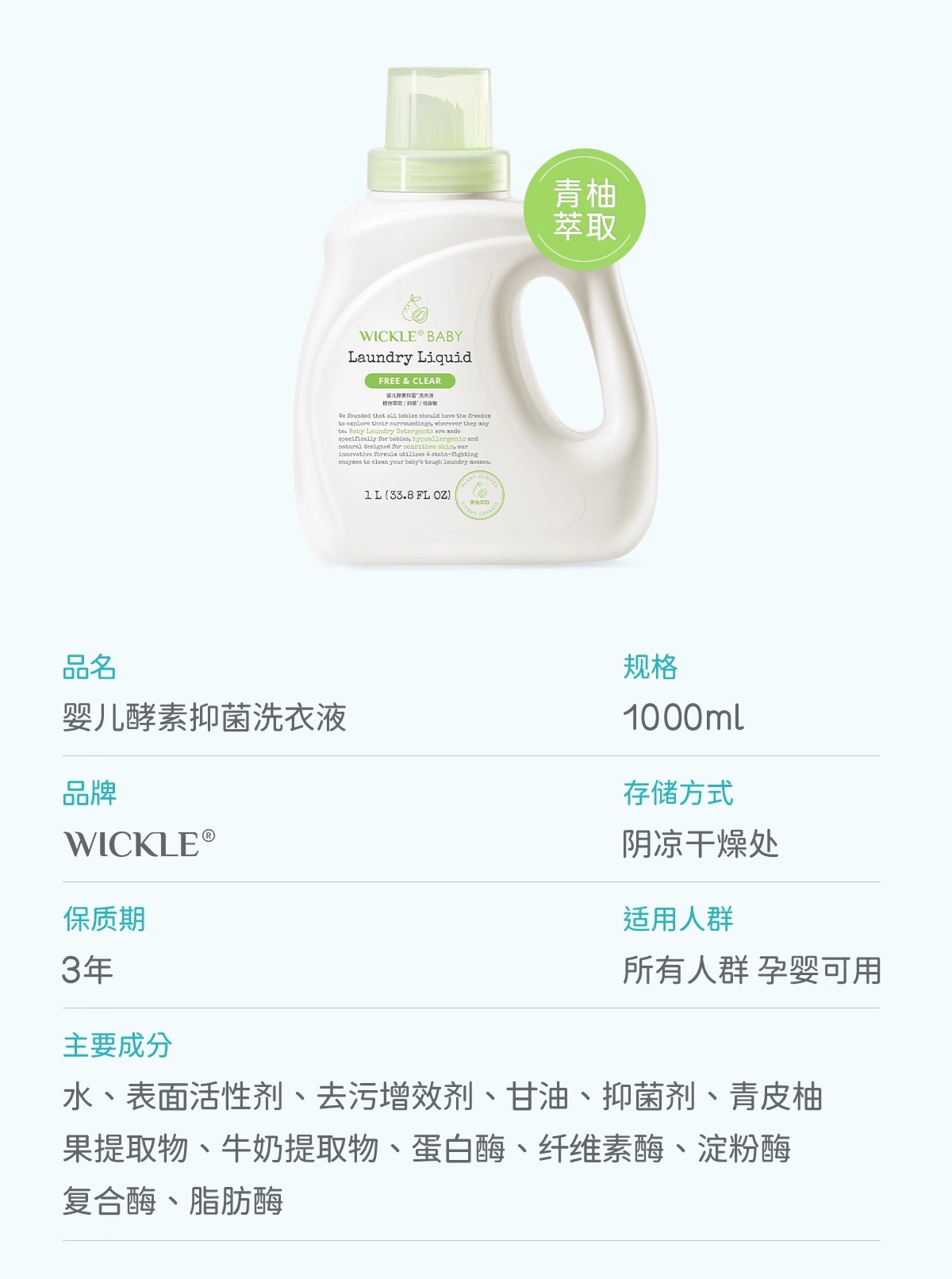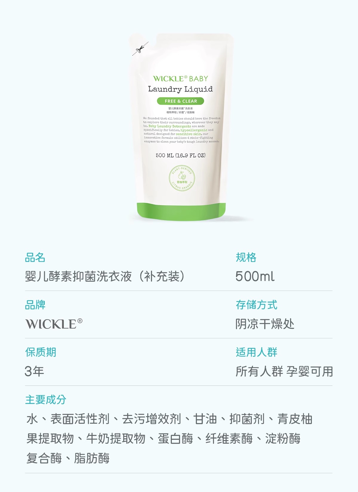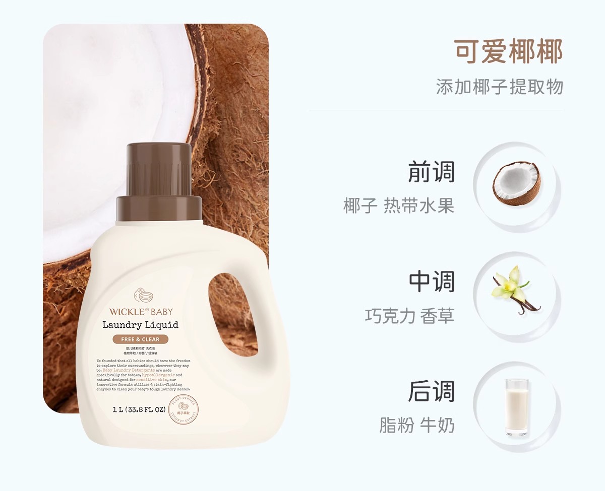 Wickle婴儿酵素洗衣液 除螨抑菌新出生宝宝幼儿洗衣液