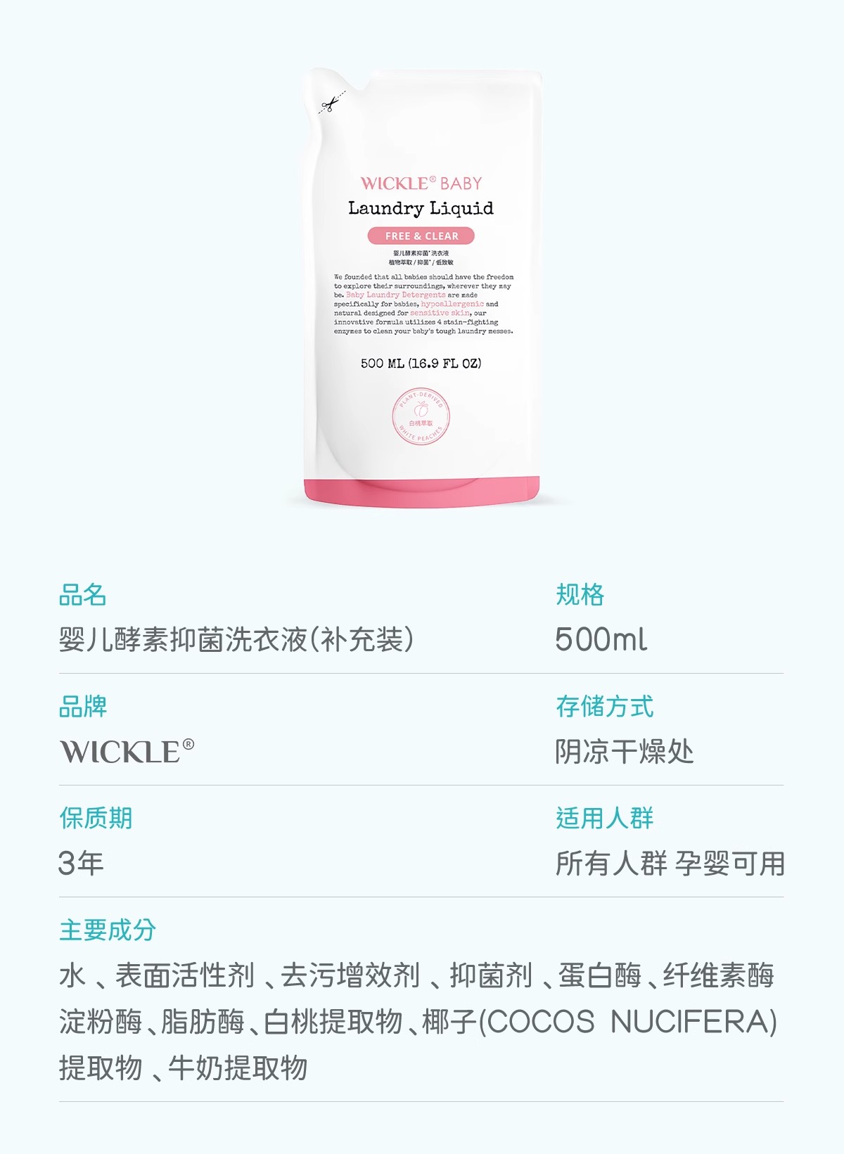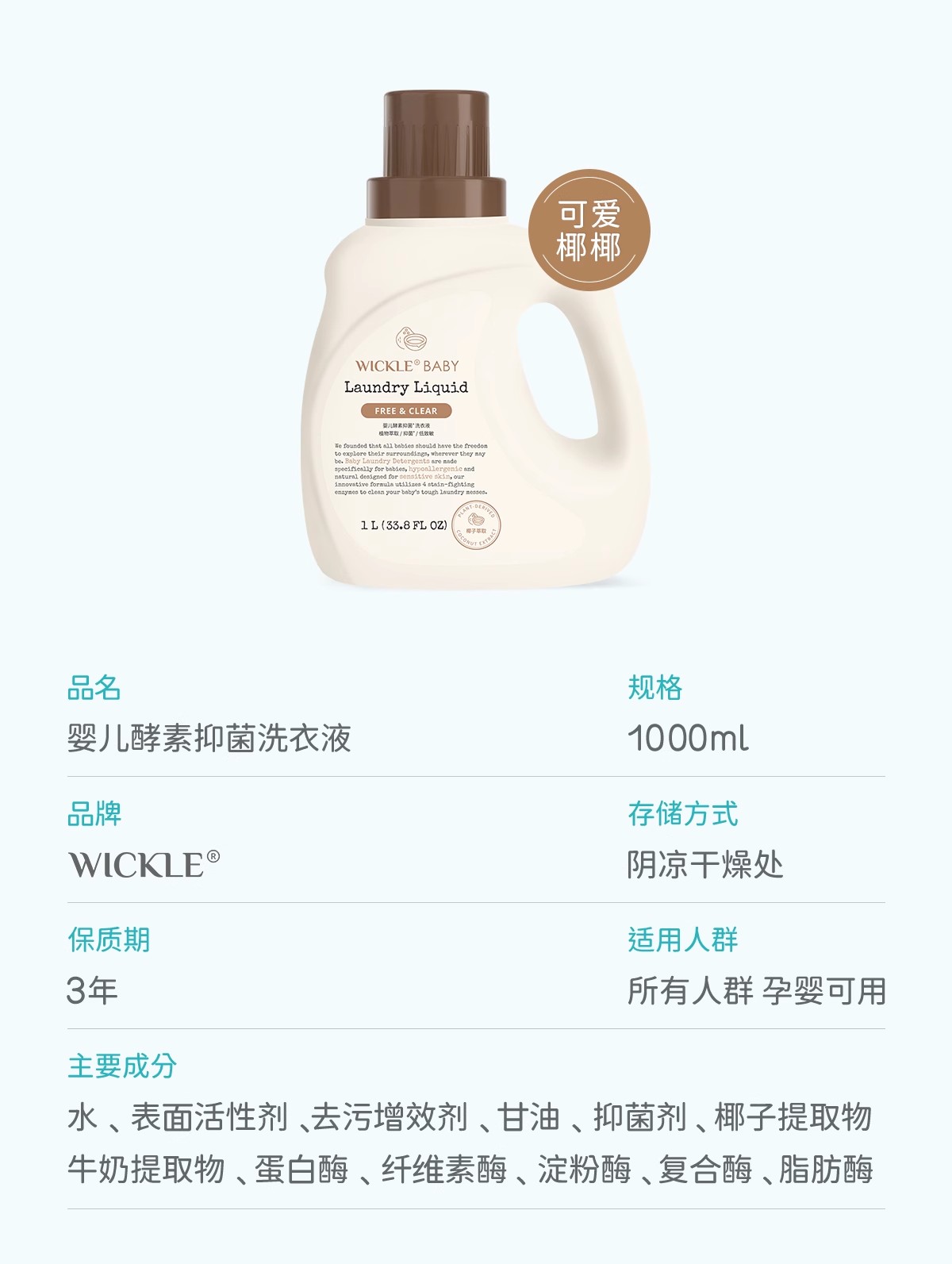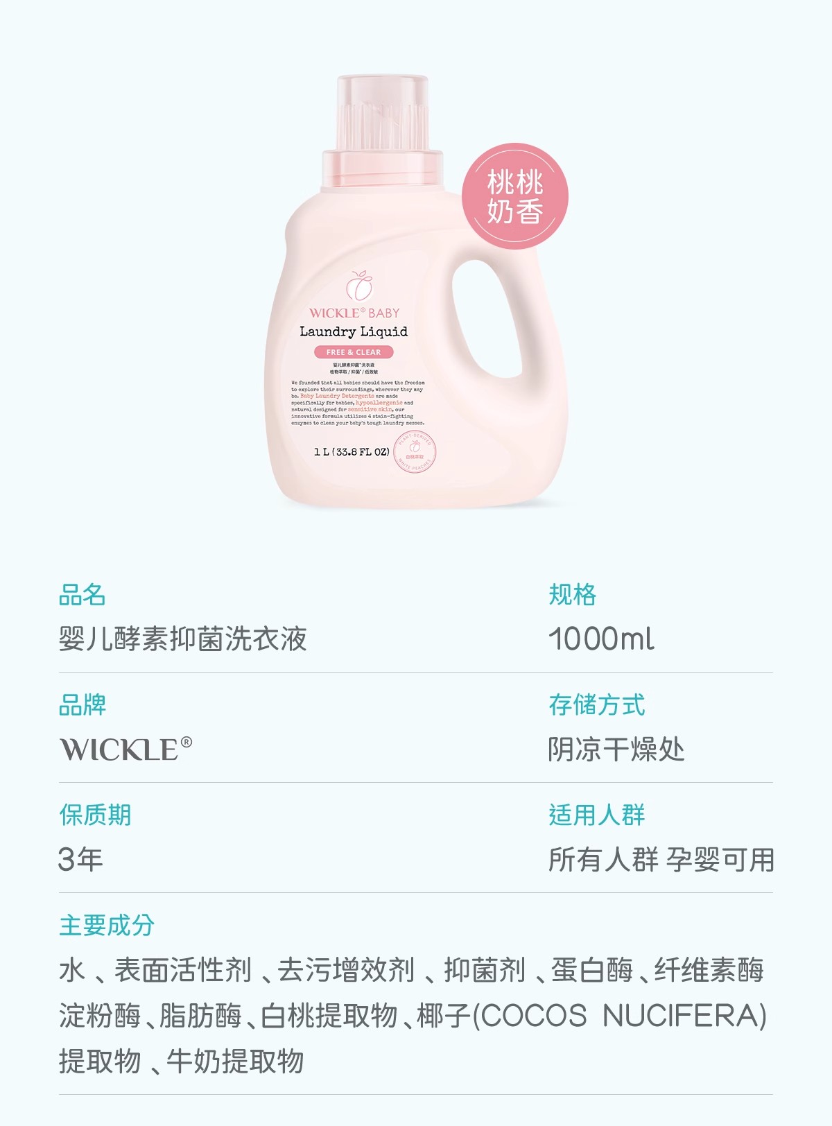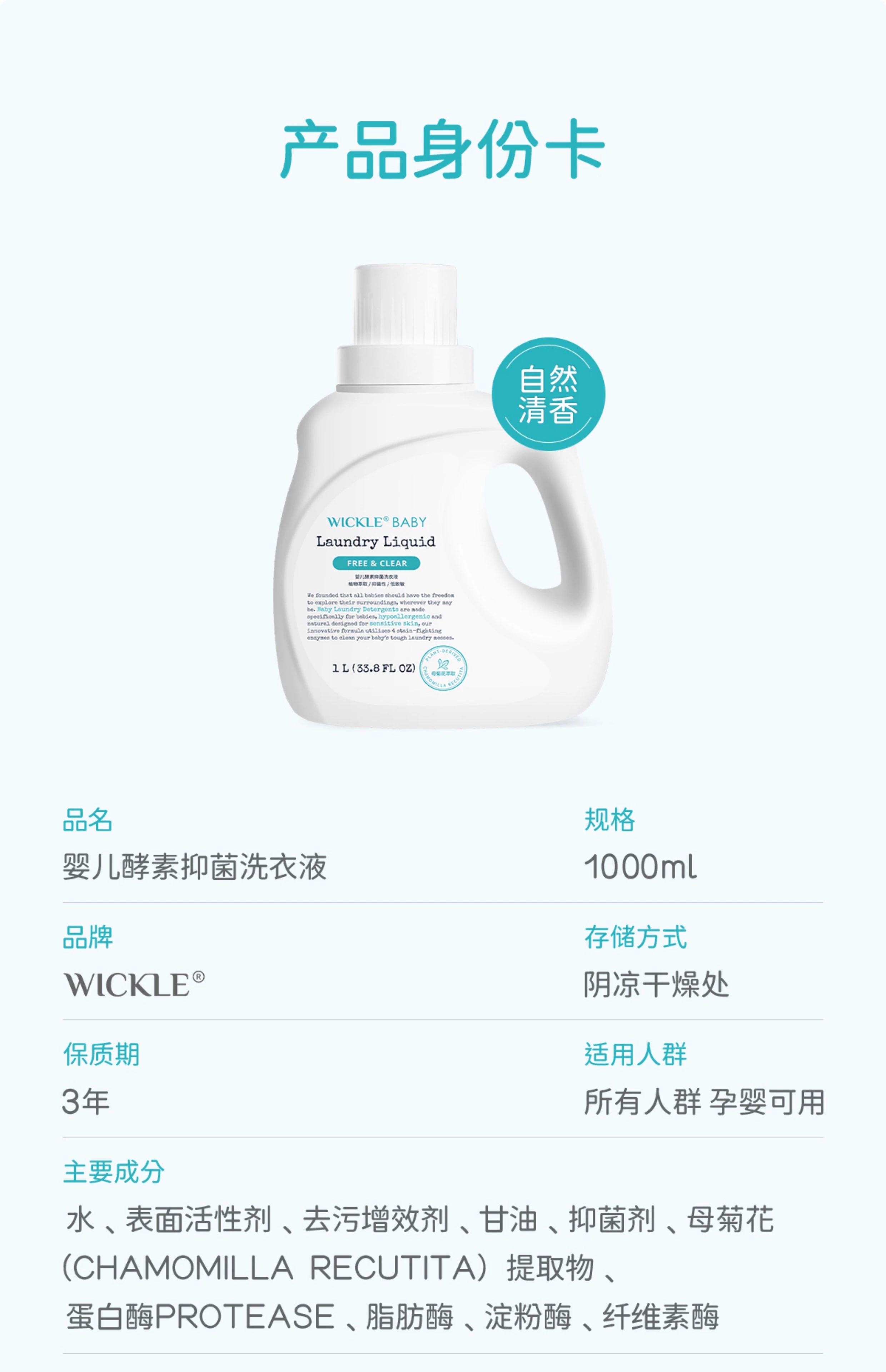 Wickle婴儿酵素洗衣液 除螨抑菌新出生宝宝幼儿洗衣液