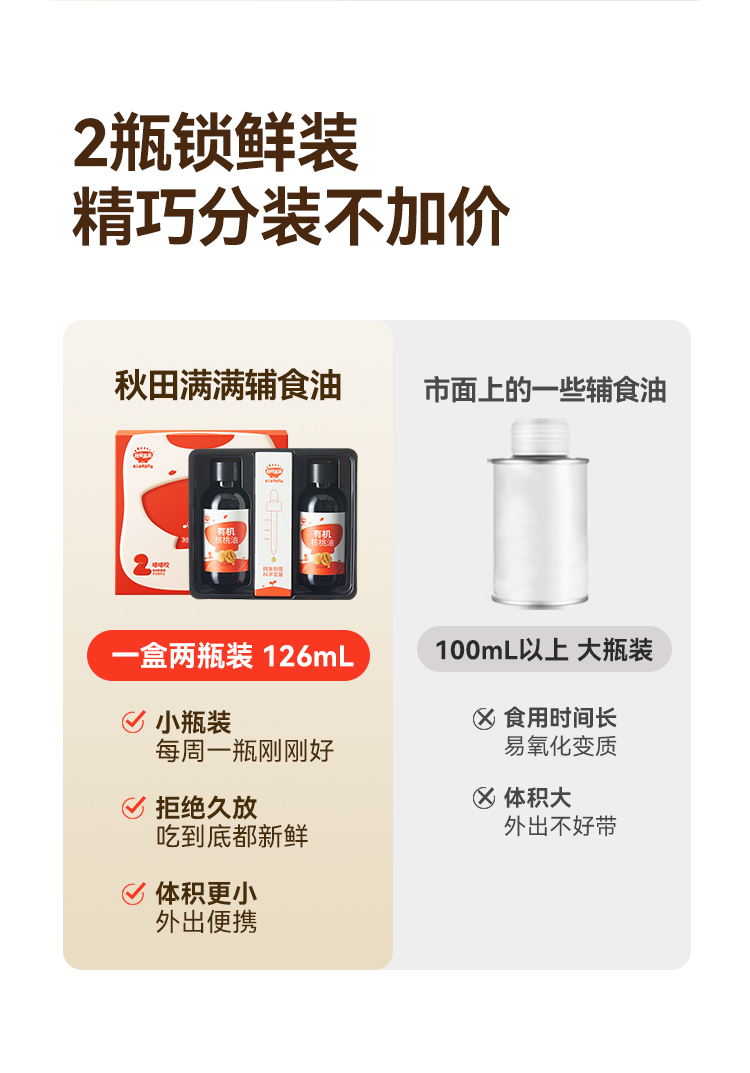DKS 专场【辅食油合集】秋田满满热炒油冷滴核桃油/牛油果油/亚麻籽油238ml/126ml 6个月+【 多种规格可选】