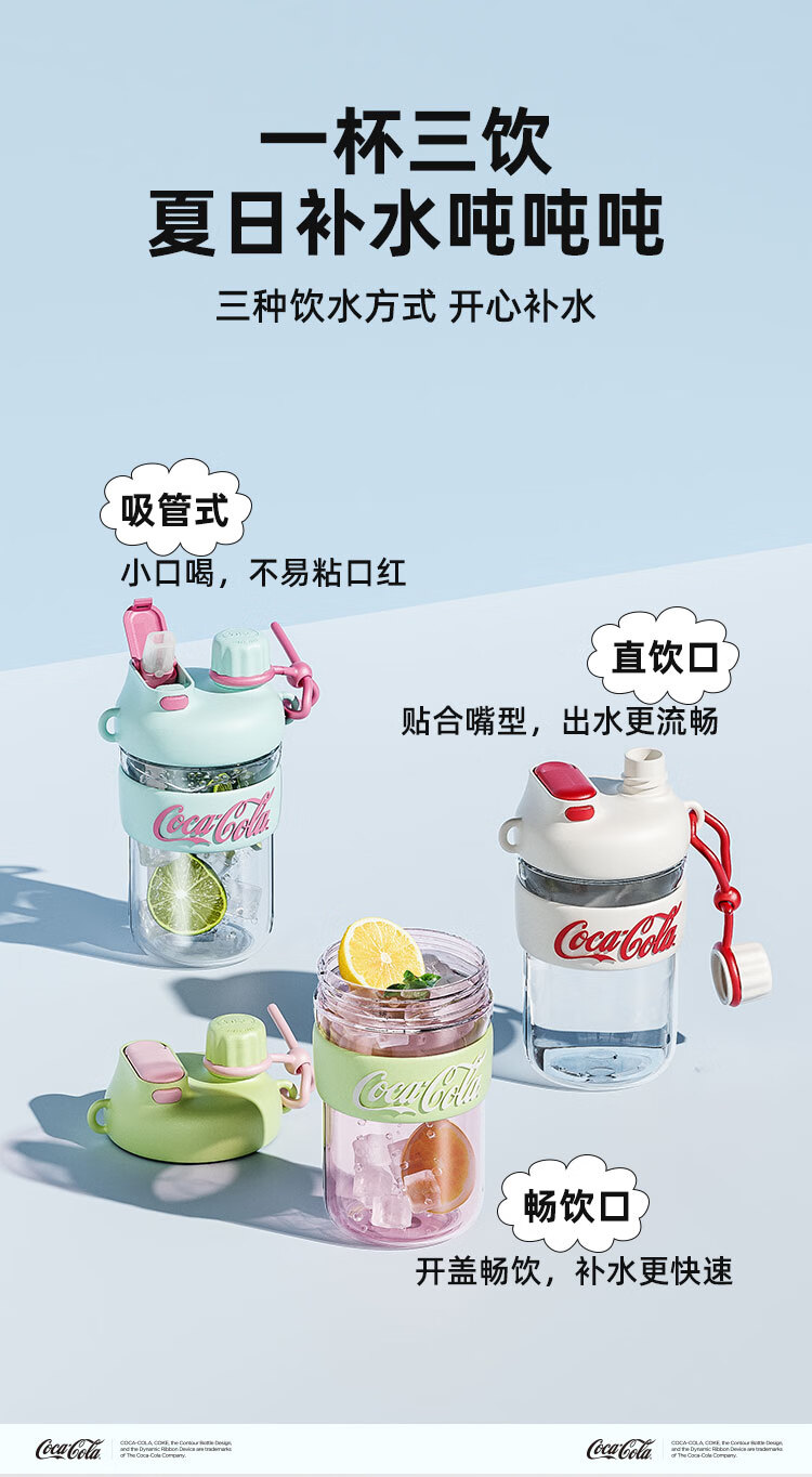 格沵(germ)可口可乐联名款云朵随行杯2024新款女吸管杯大容量便携运动高颜值