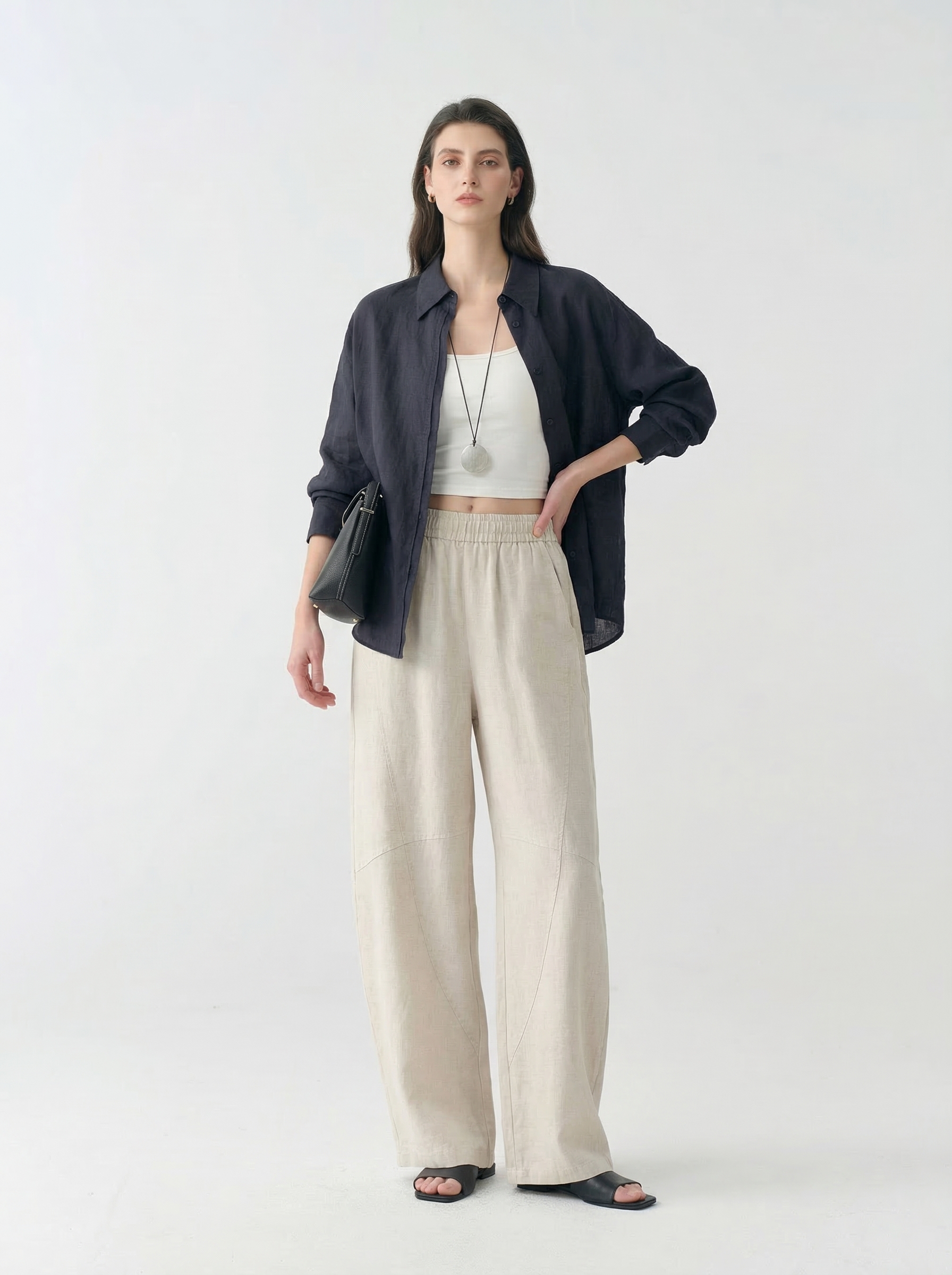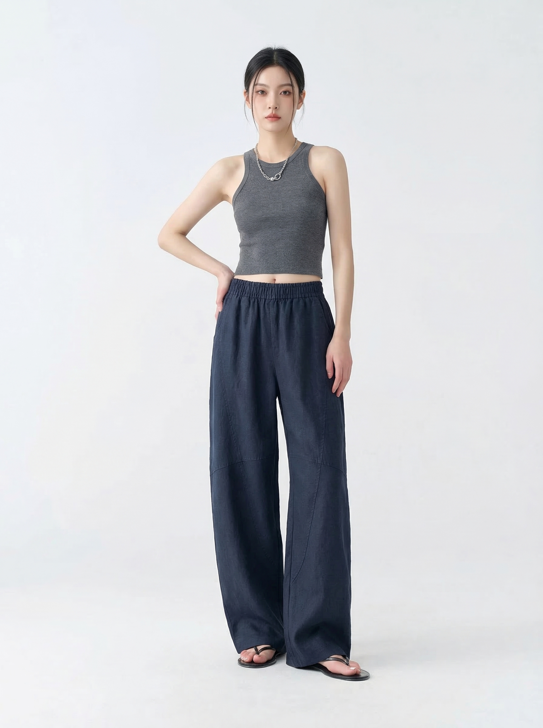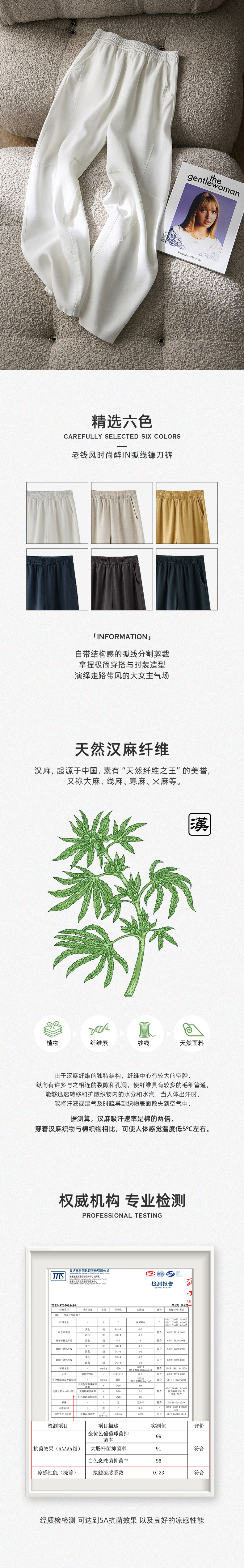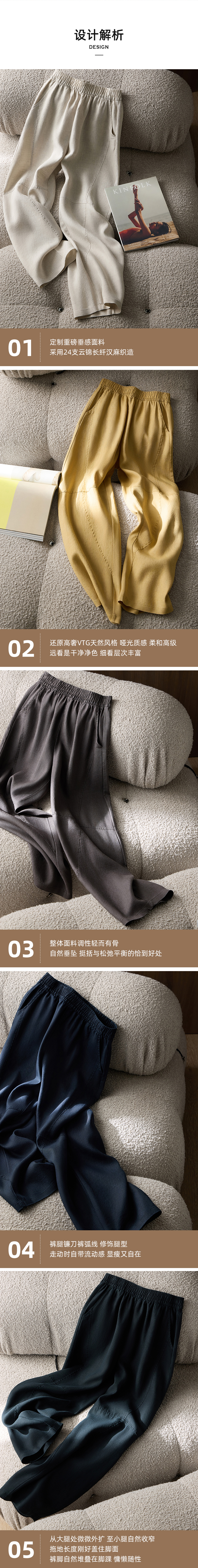 【走路带风】重磅100汗麻裤 会呼吸天然汗麻轻盈肌理感松弛镰刀裤拖拖裤 9912