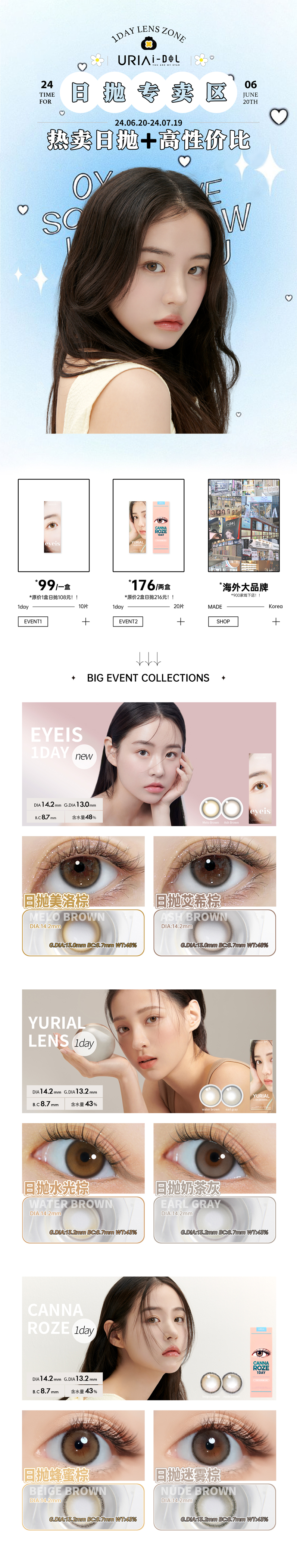 【活动】URIA i-dol 日抛 99/盒 176/2盒 推荐蜂蜜棕 美洛棕 韩国国民品牌 中小直径多