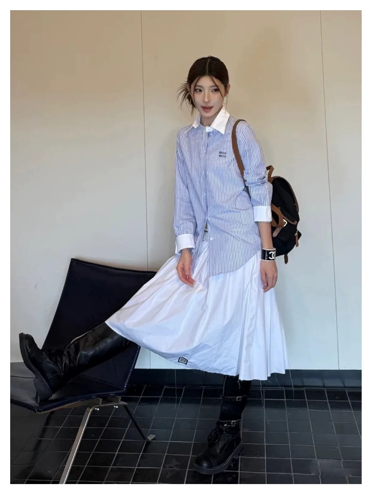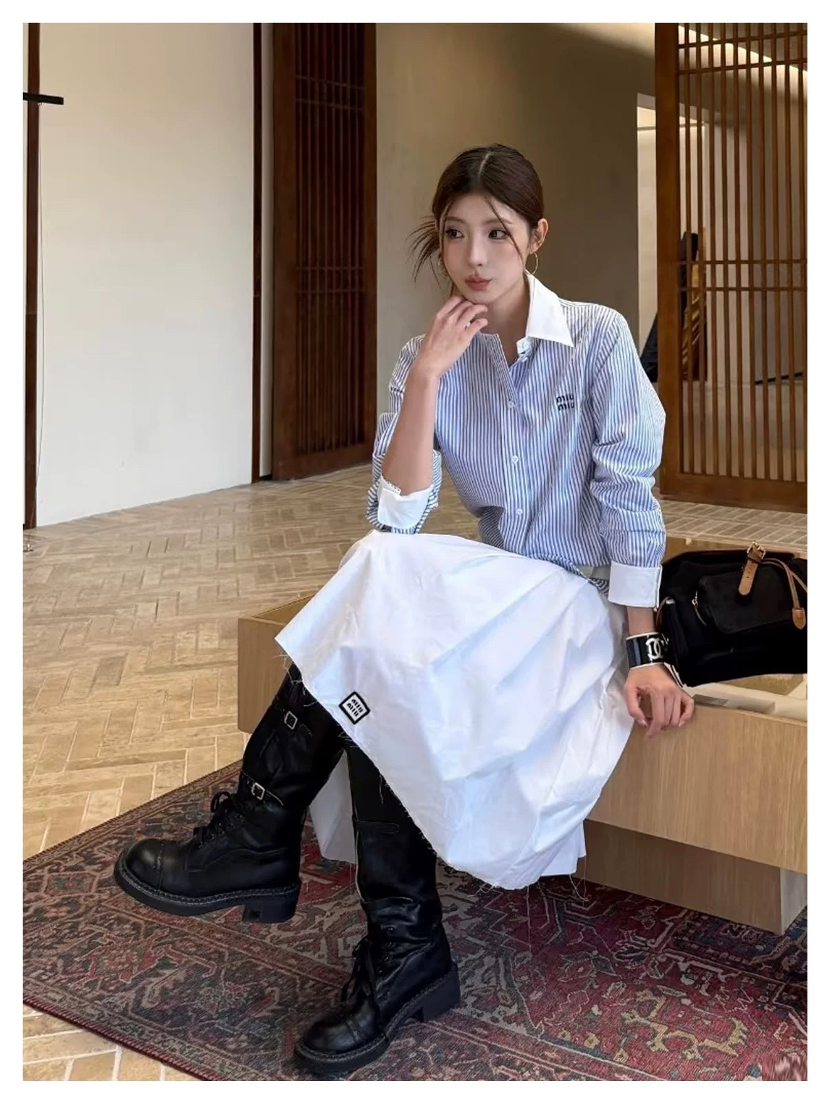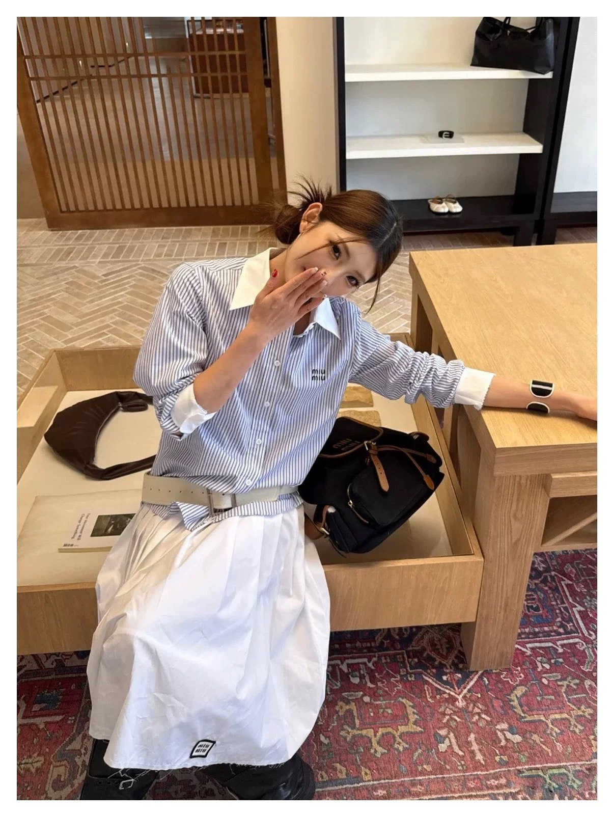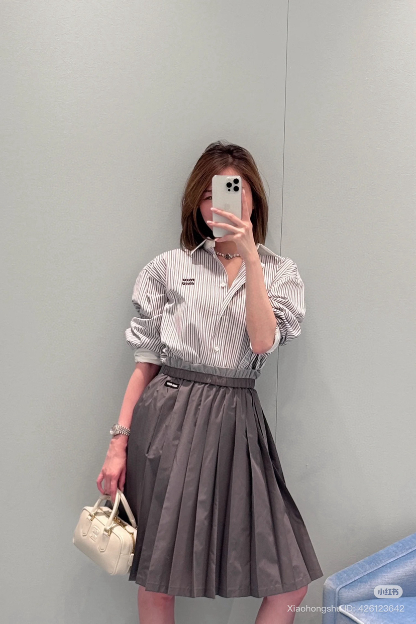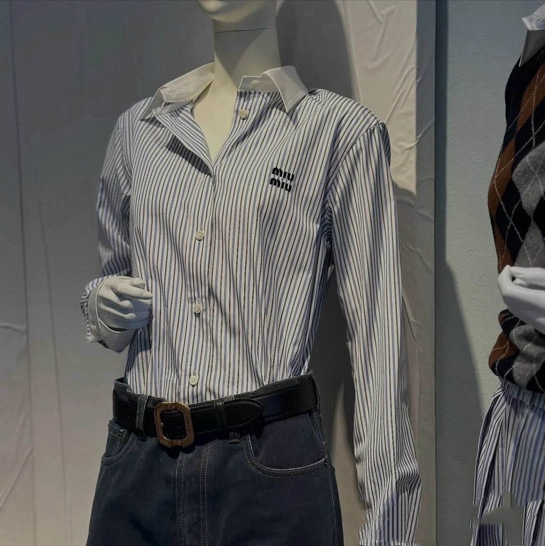 88-3 独家圆正 大爆款 miu府绸棉 可拆领口袖口 设计感两穿 廓形条纹衬衫 我穿42